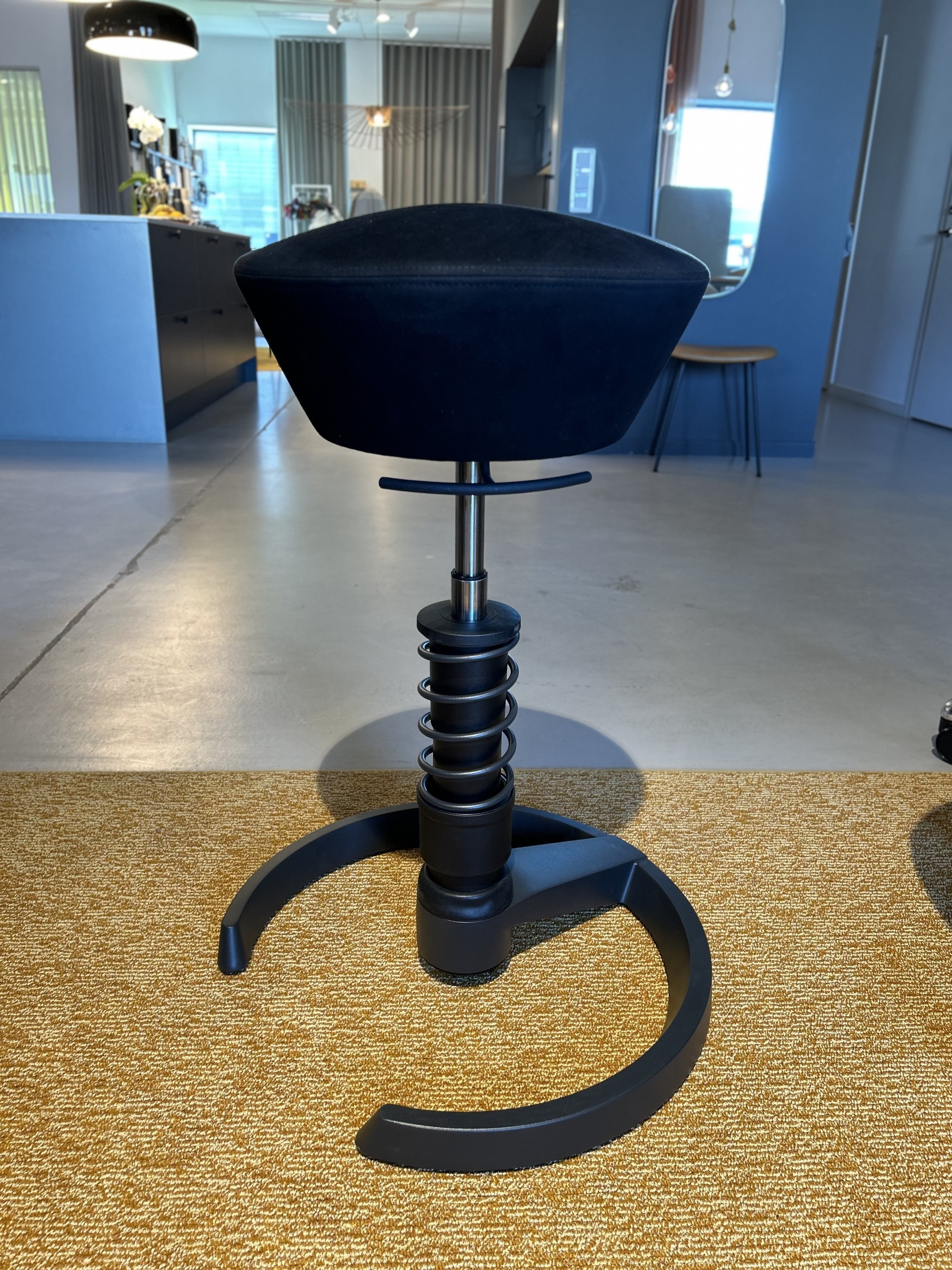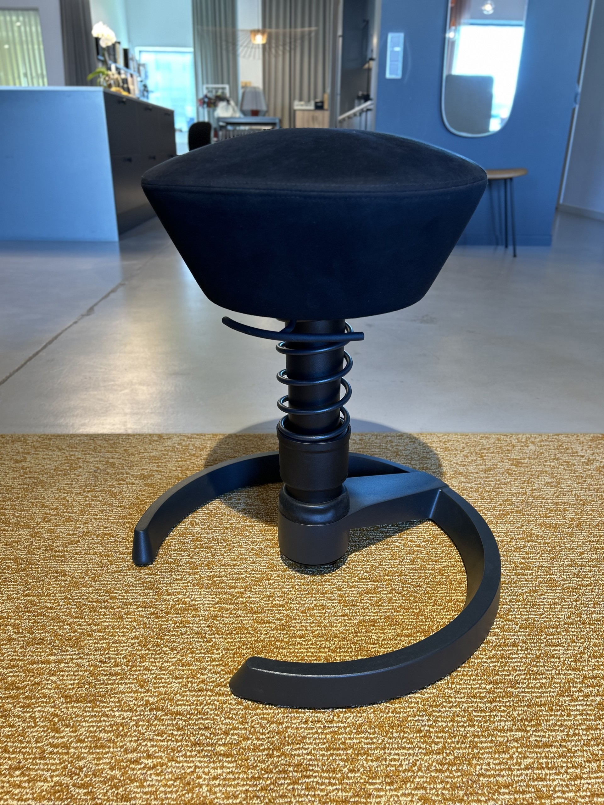 Sits i tyg (svart). Pelarfot i metall (svart). Höj- och sänkbar.