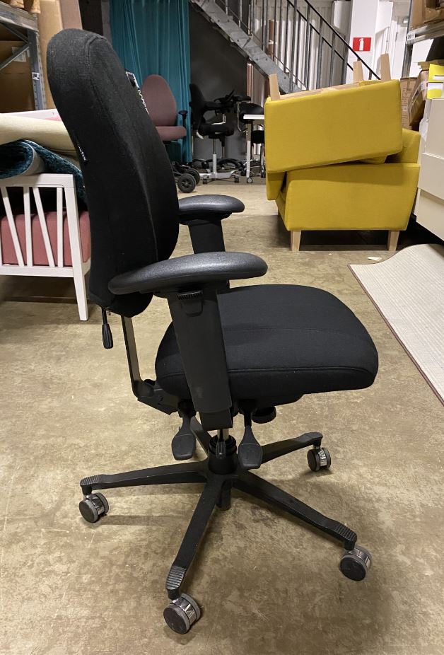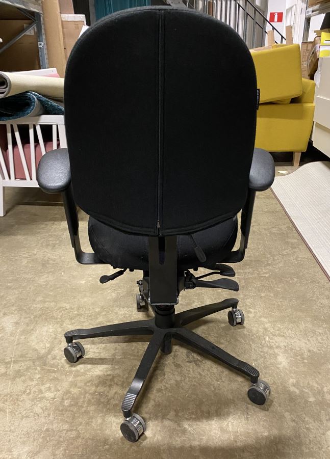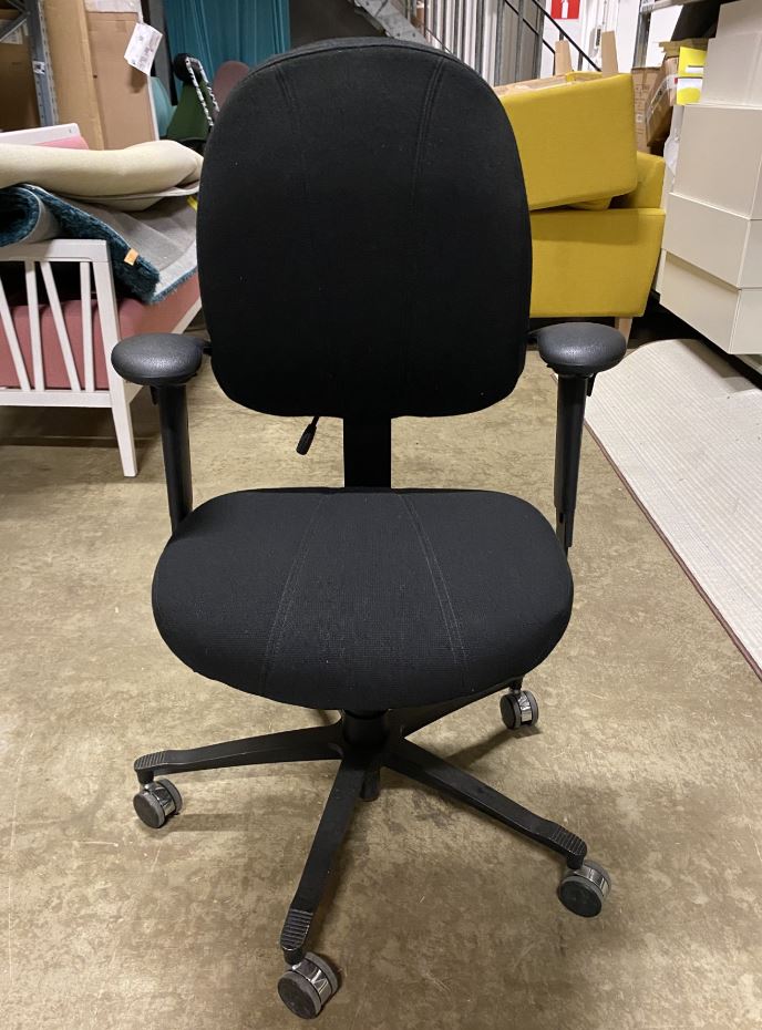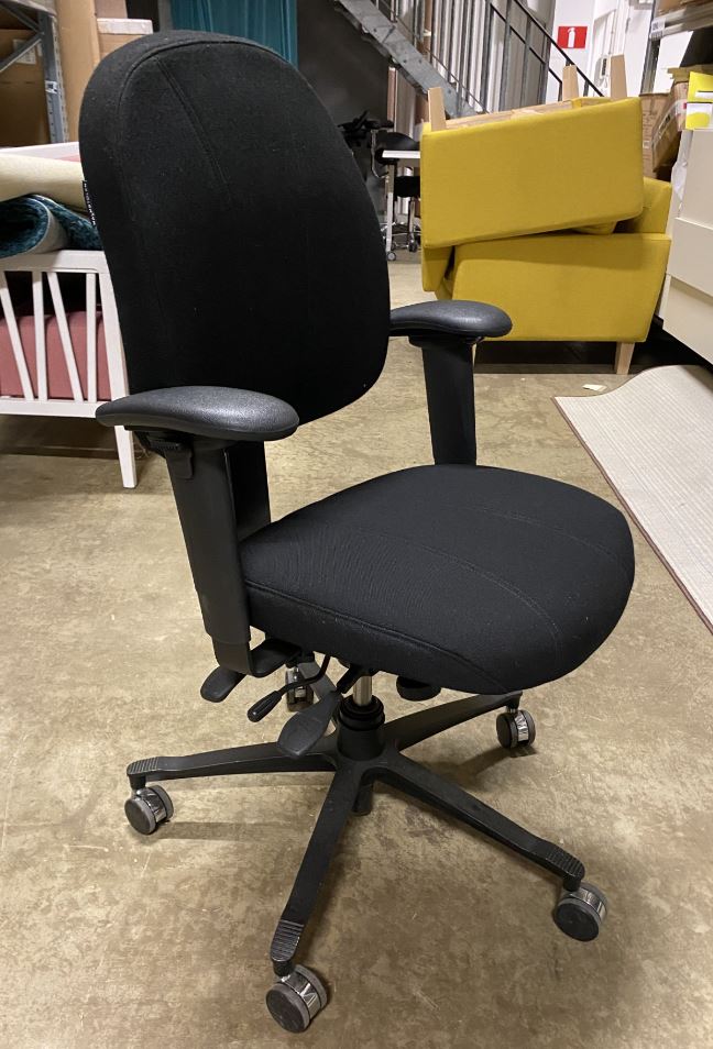 Sits och rygg i tyg (svart). Kryssfot i metall (svart). Höj- och sänkbar.