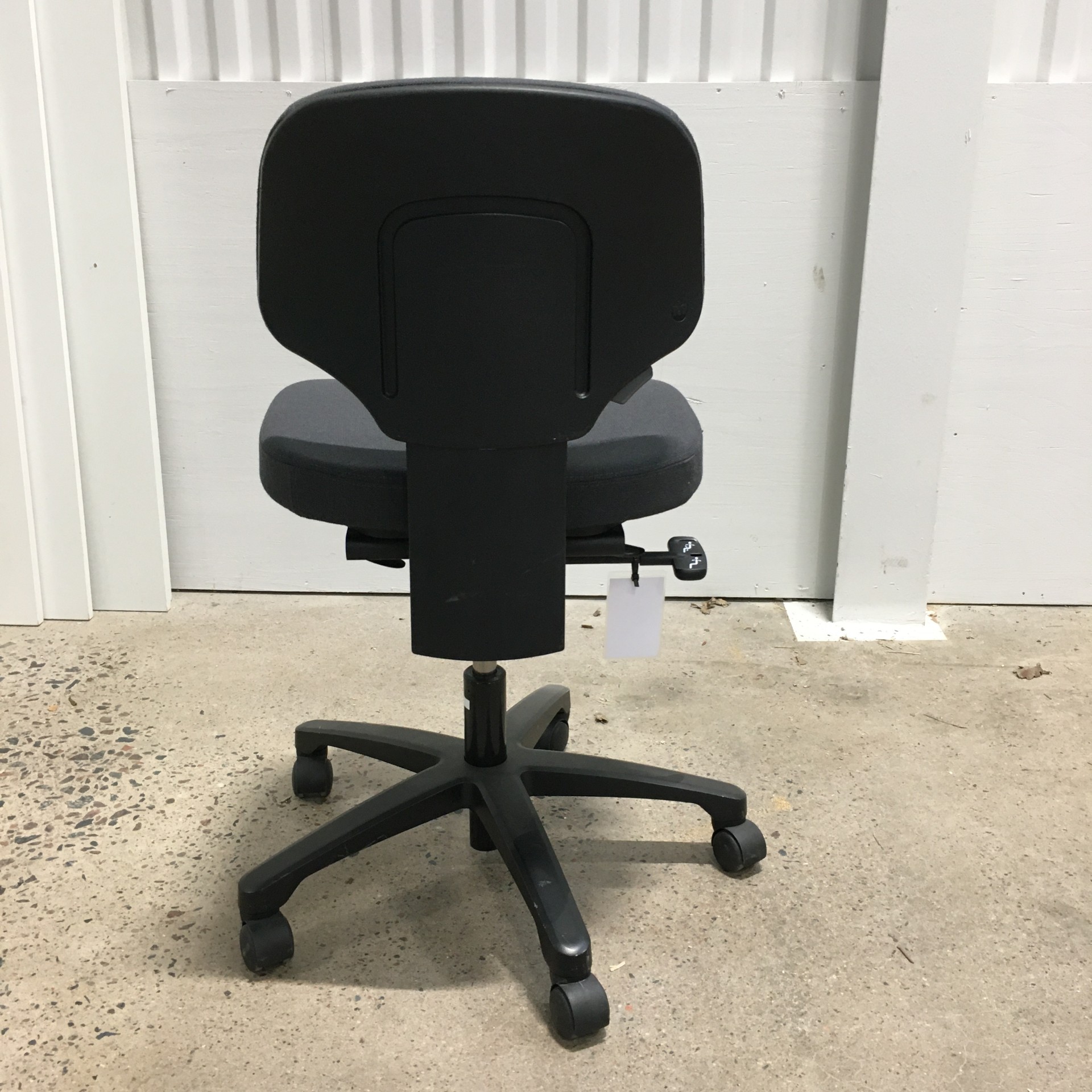 Sits och rygg i tyg (grå). Kryssfot i plast (svart). Höj- och sänkbar.