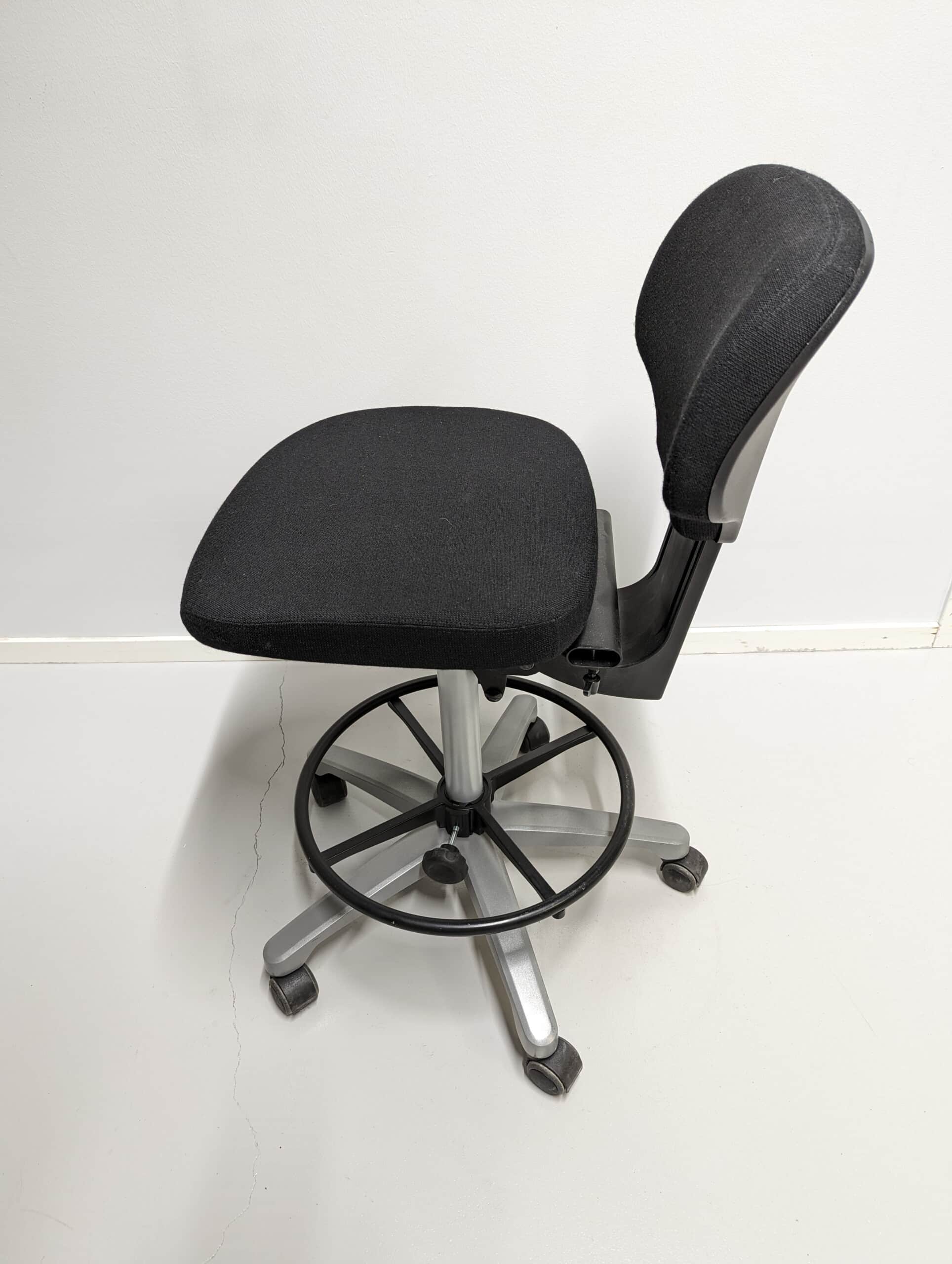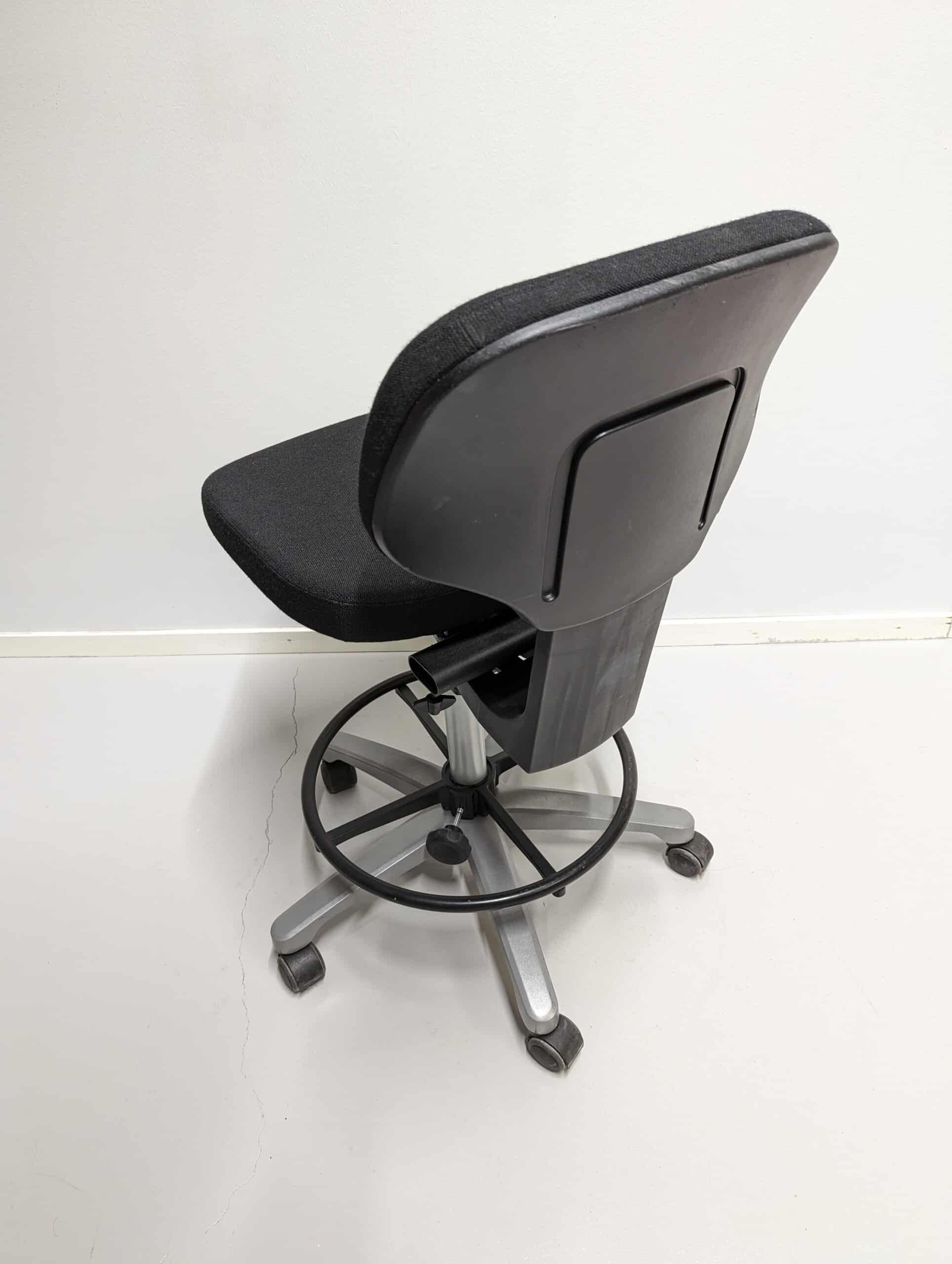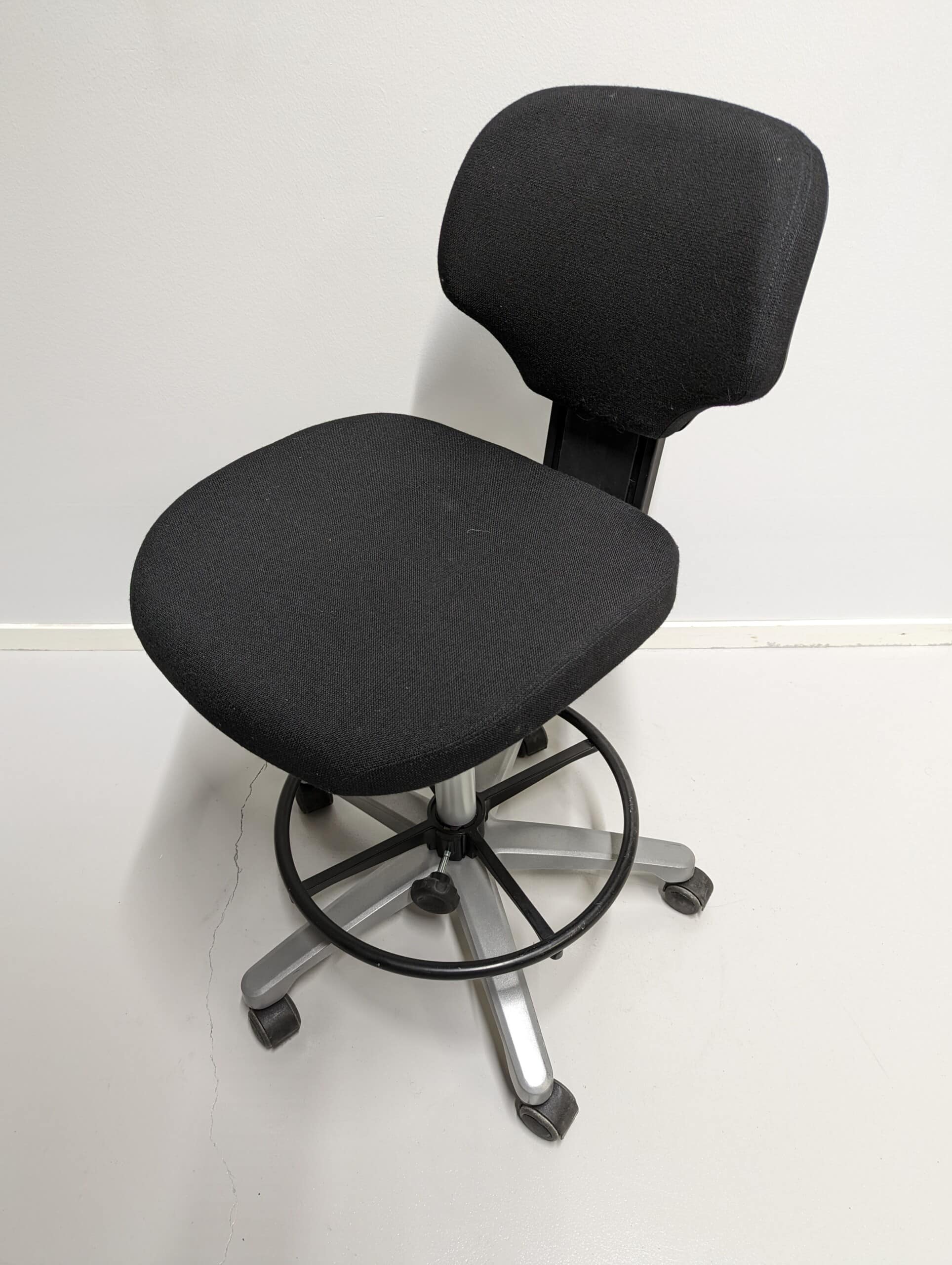 Sits och rygg i tyg (svart). Kryssfot i metall (grå). Höj- och sänkbar.