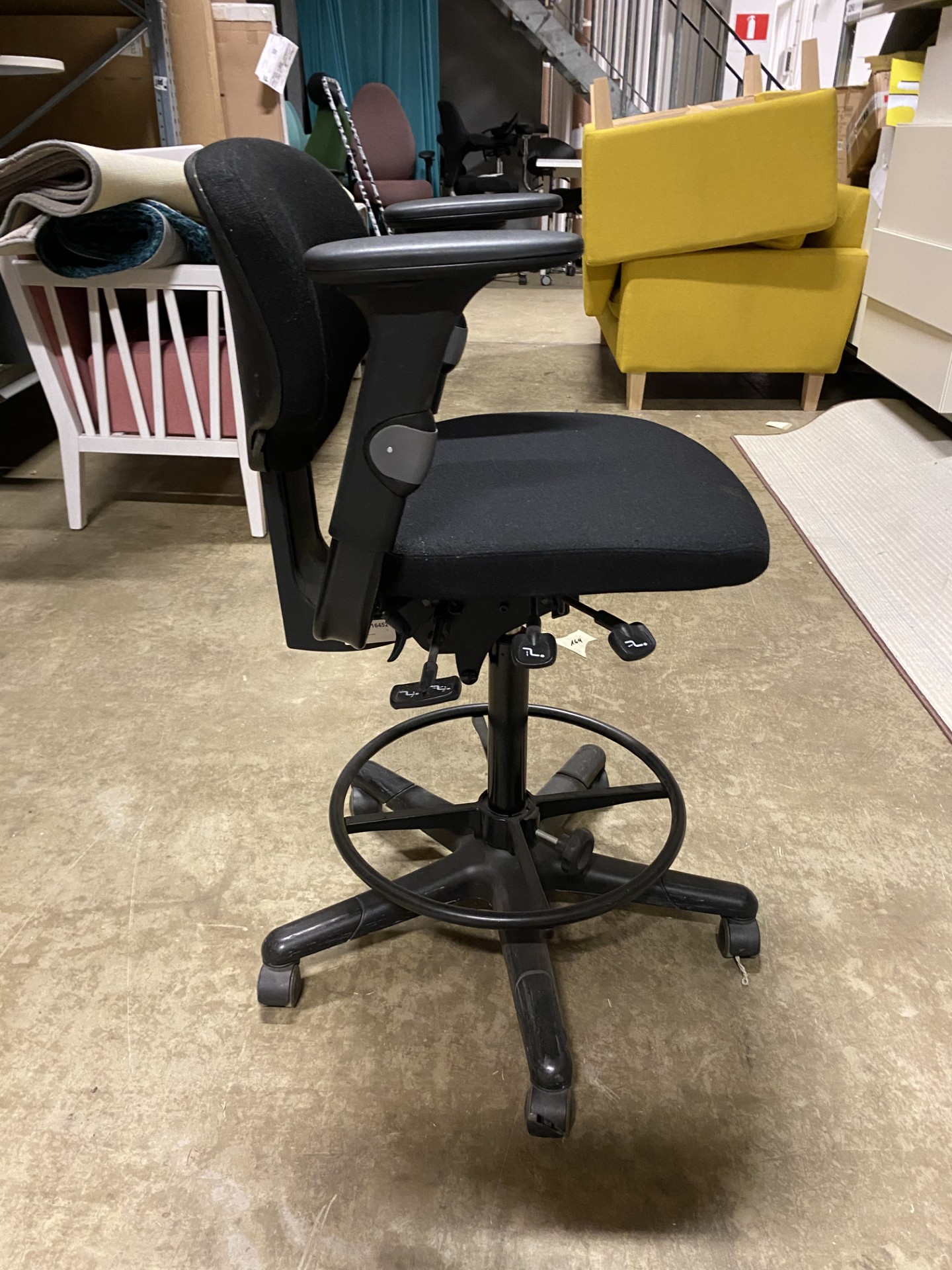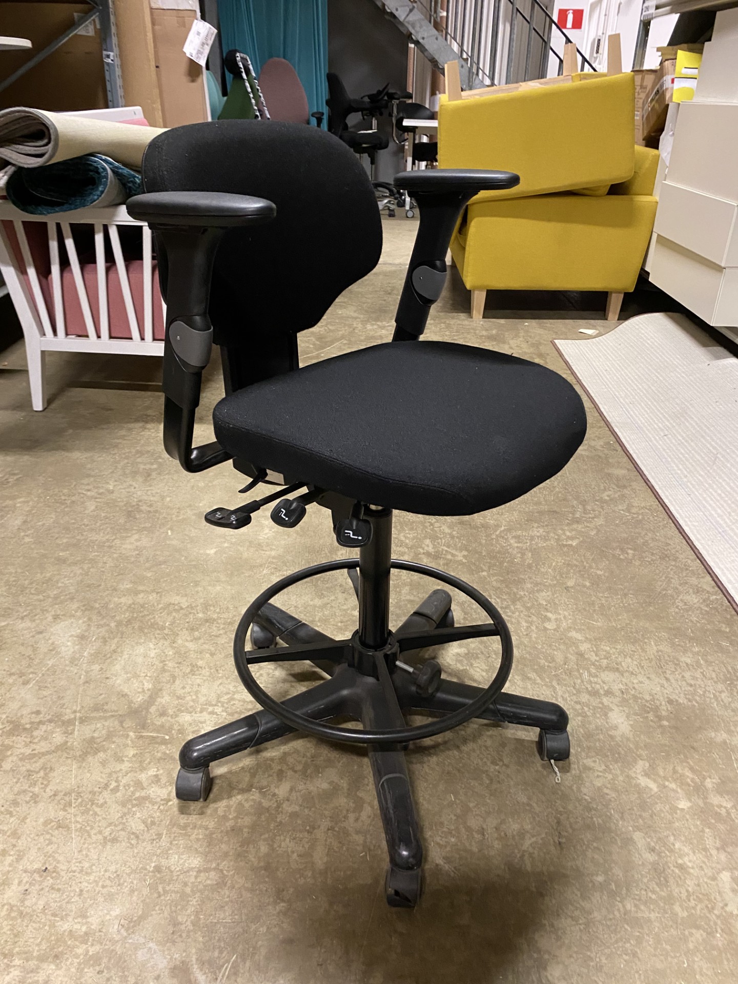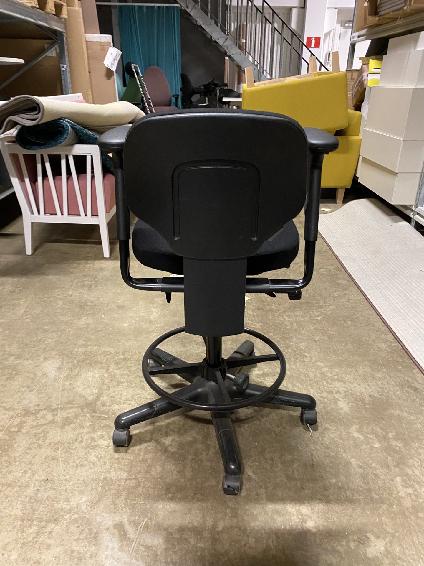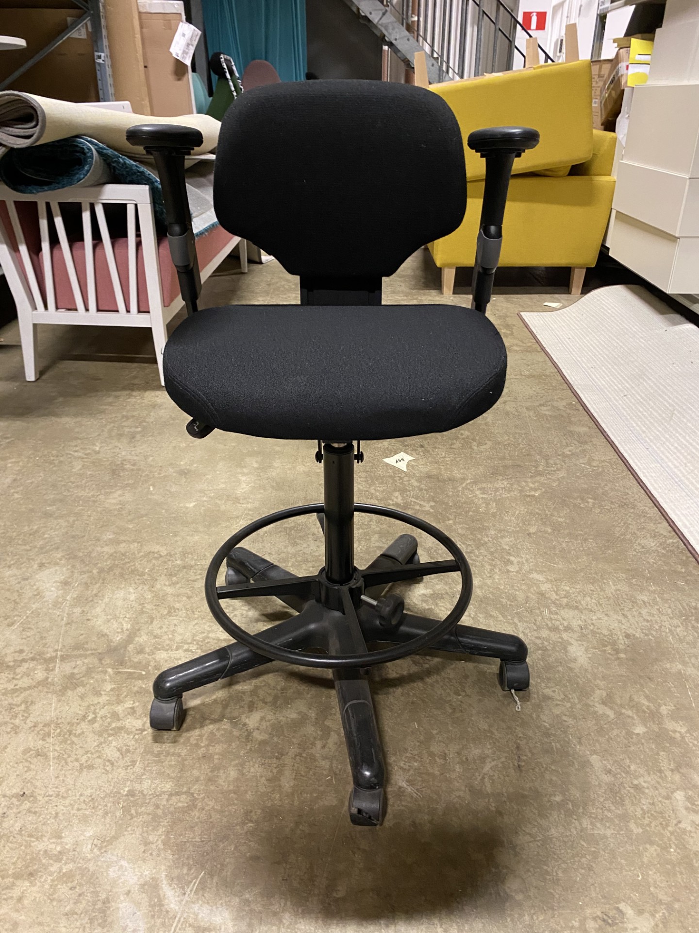 Sits och rygg i tyg (svart). Kryssfot i metall (silver). Höj- och sänkbar.