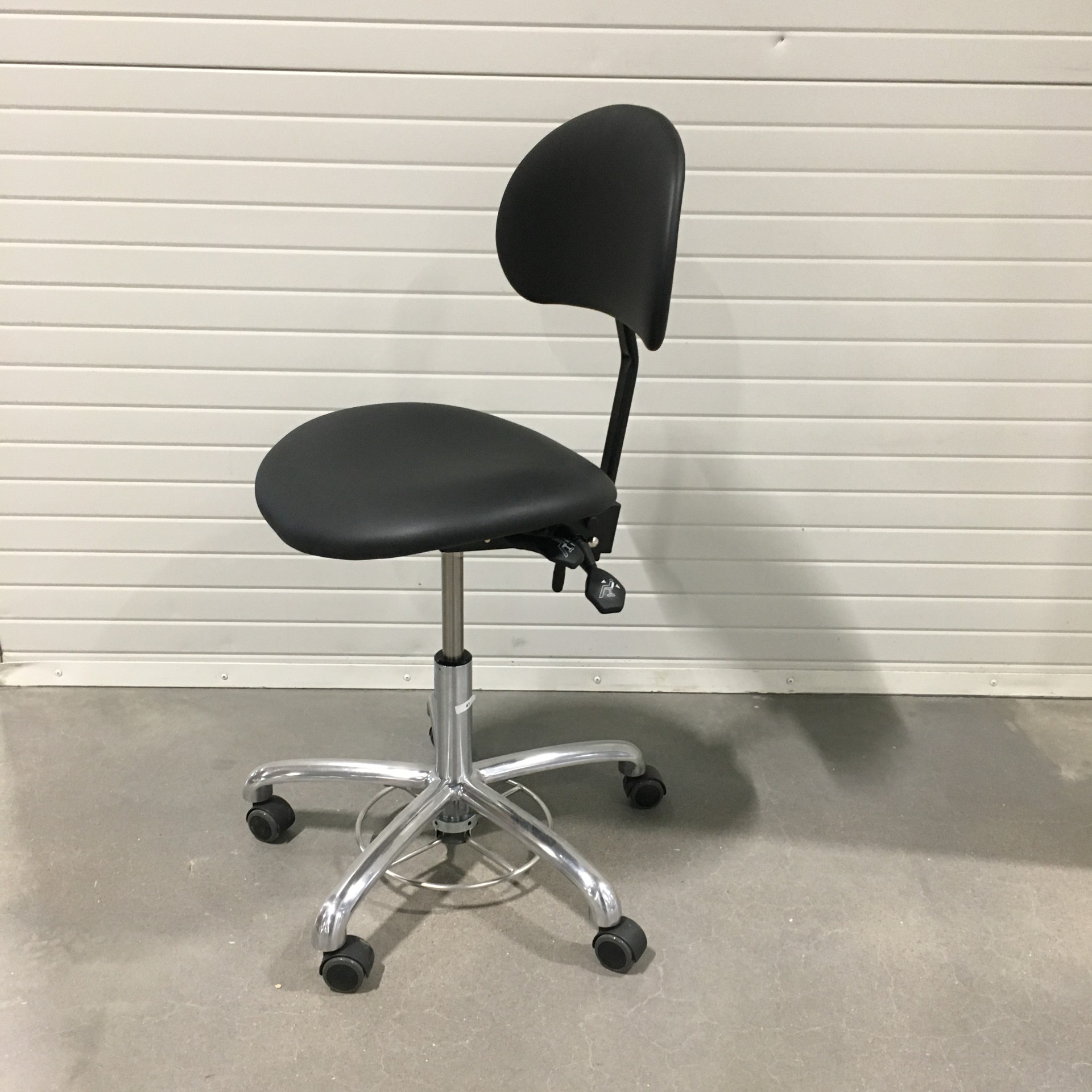 Sits och rygg i konstläder (svart). Kryssfot i metall (aluminium). Höj- och sänkbar.