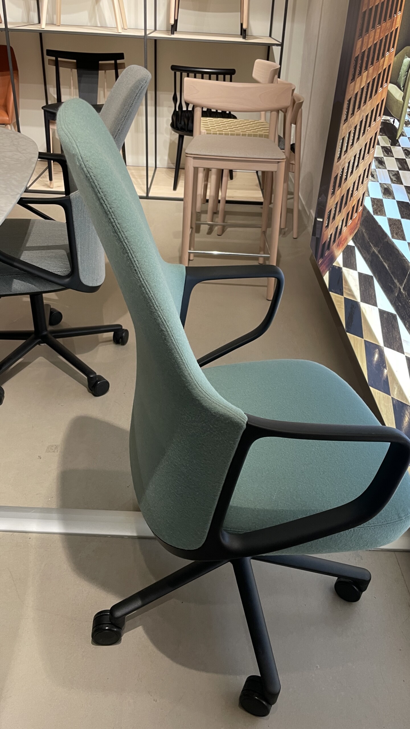 | Material sits | Färg | Klädsel | Underrede | Material underrede | Plast | Är stolen höj- och sänkbar? | Inklusive | ||
