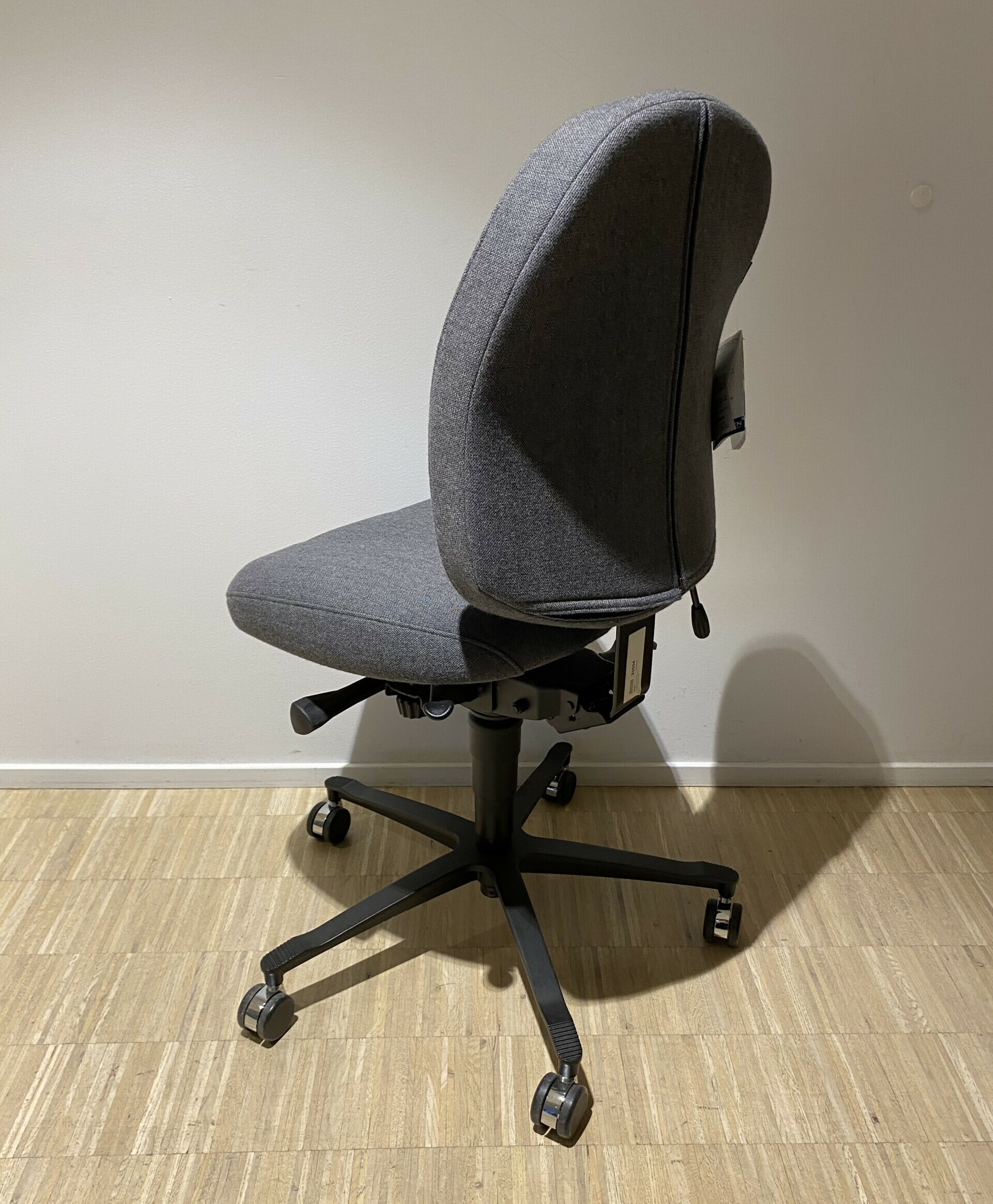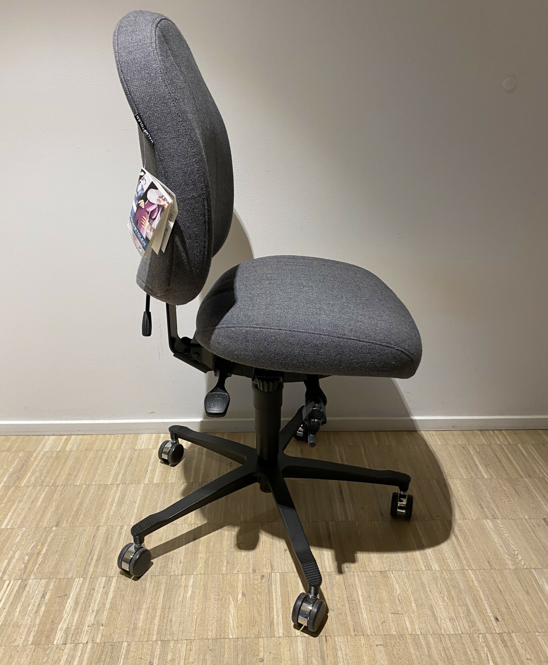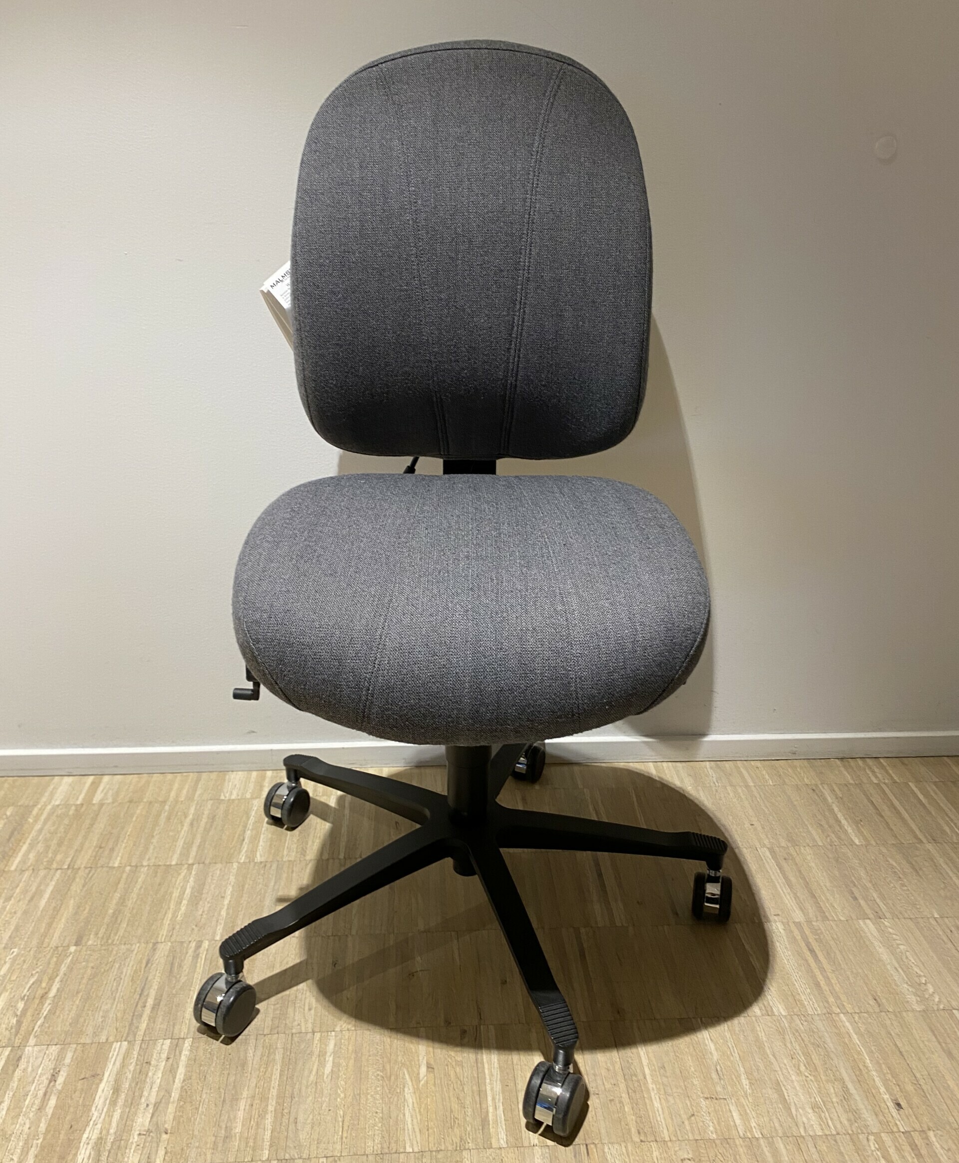 Sits och rygg i tyg (grå). Kryssfot i metall (svart). Höj- och sänkbar.