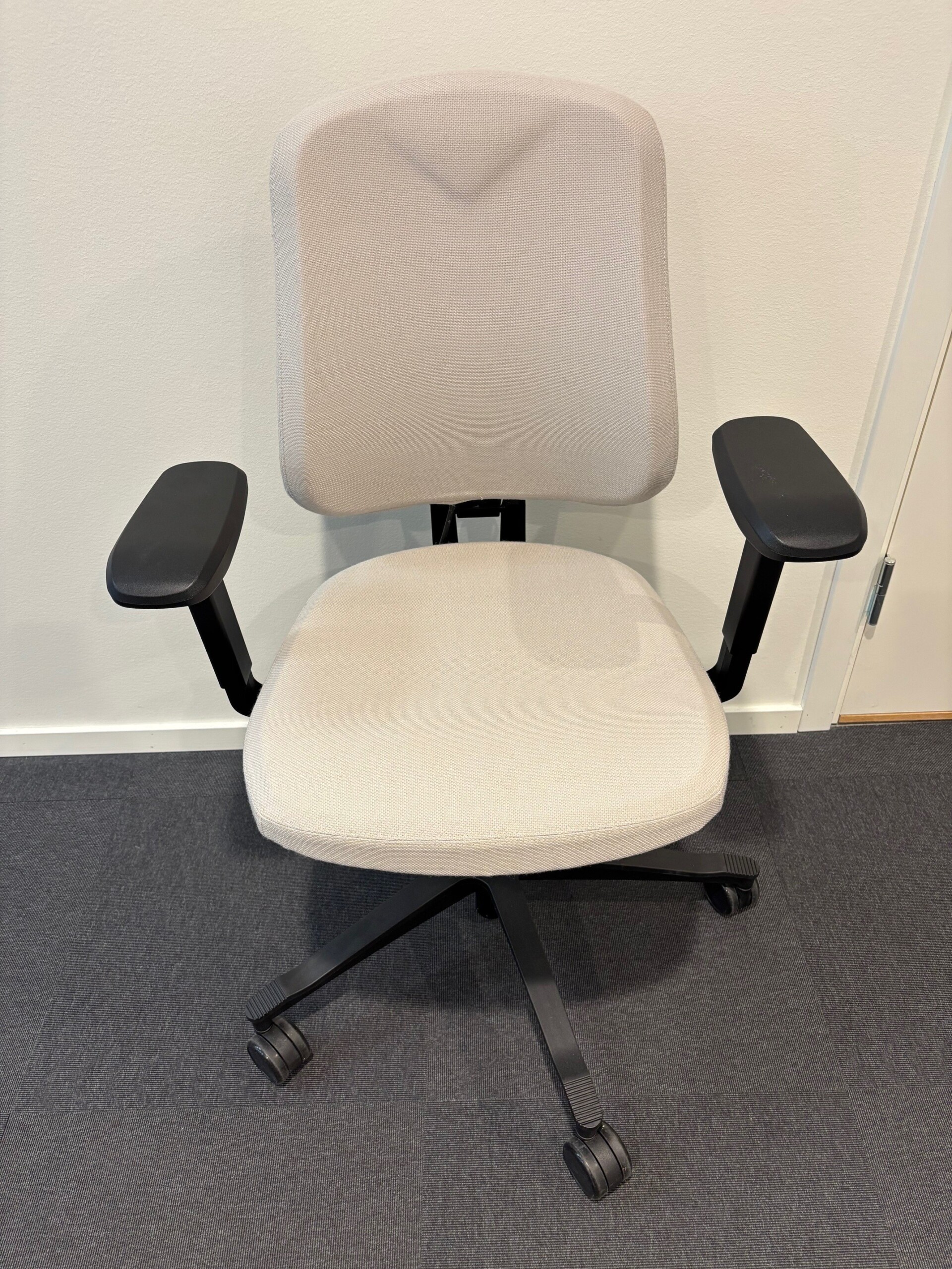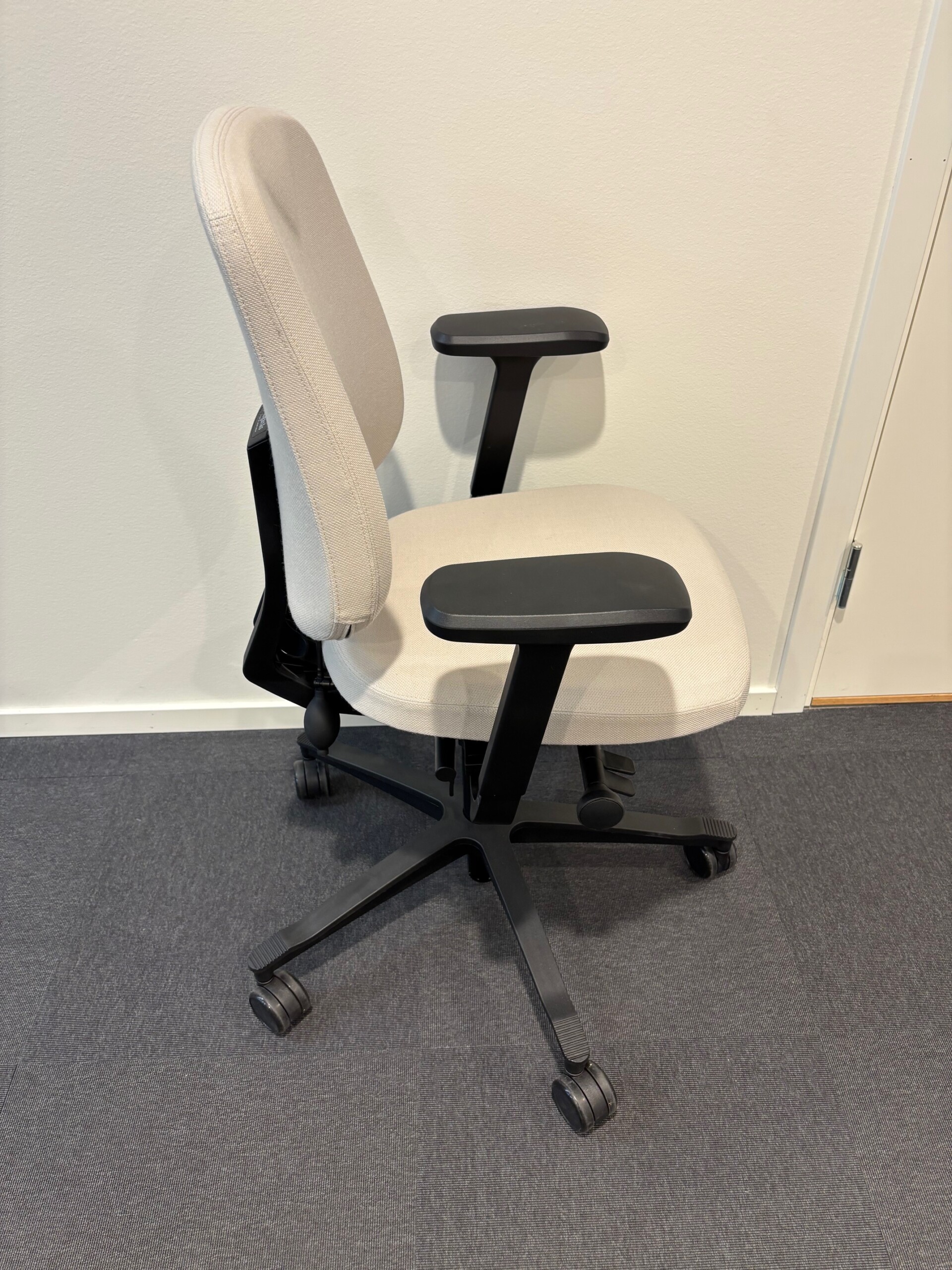 Sits och rygg i tyg. Kryssfot i plast (svart). Höj- och sänkbar.
