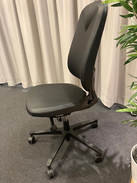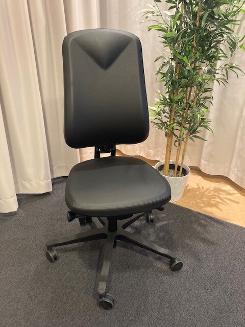 Sits och rygg i konstläder (svart). Kryssfot i plast (svart). Höj- och sänkbar.