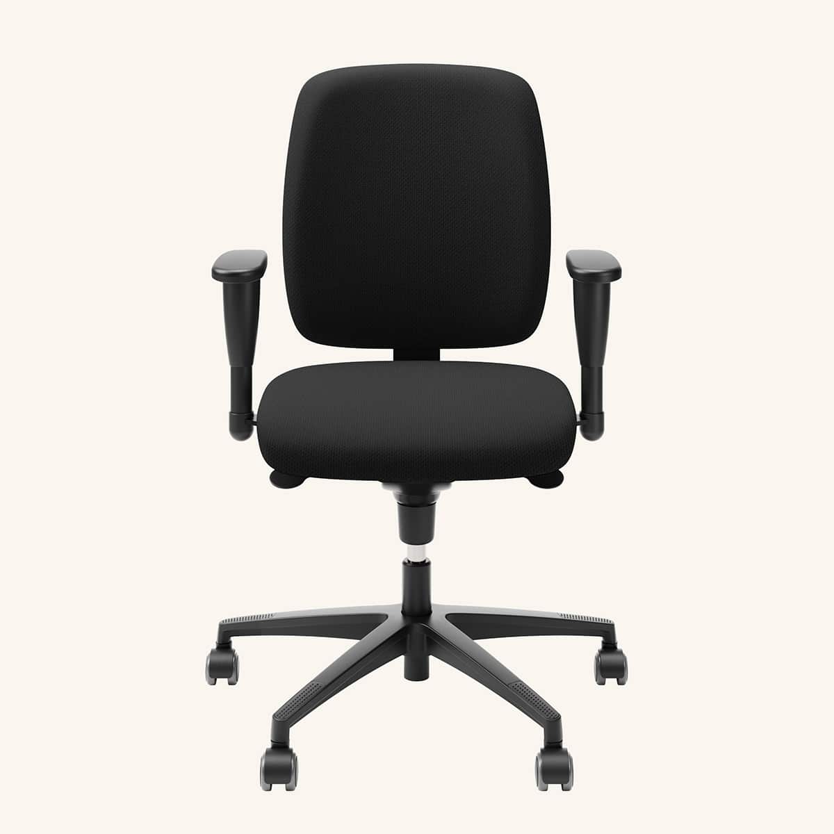 Sits och rygg i tyg. Kryssfot i plast (svart). Höj- och sänkbar.
