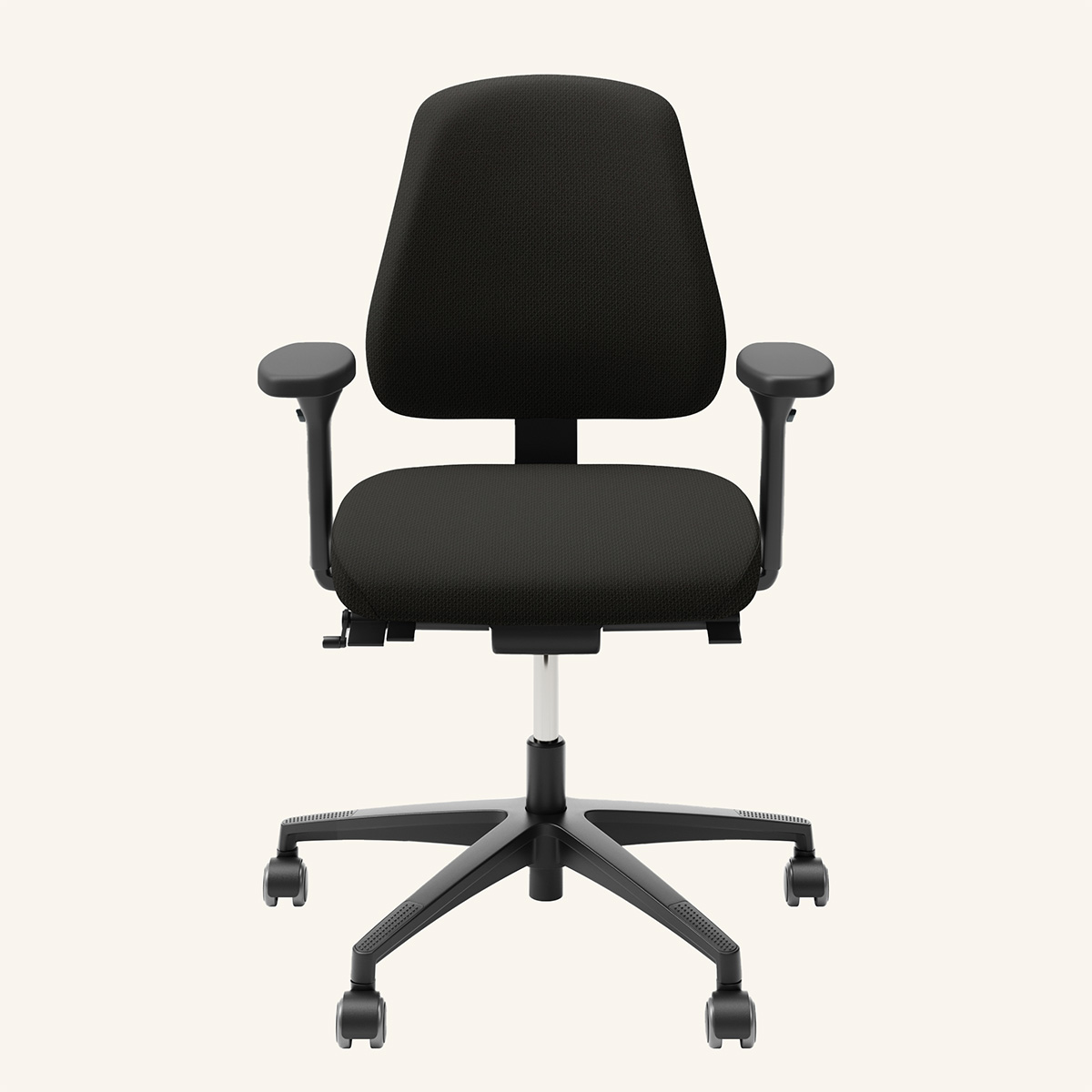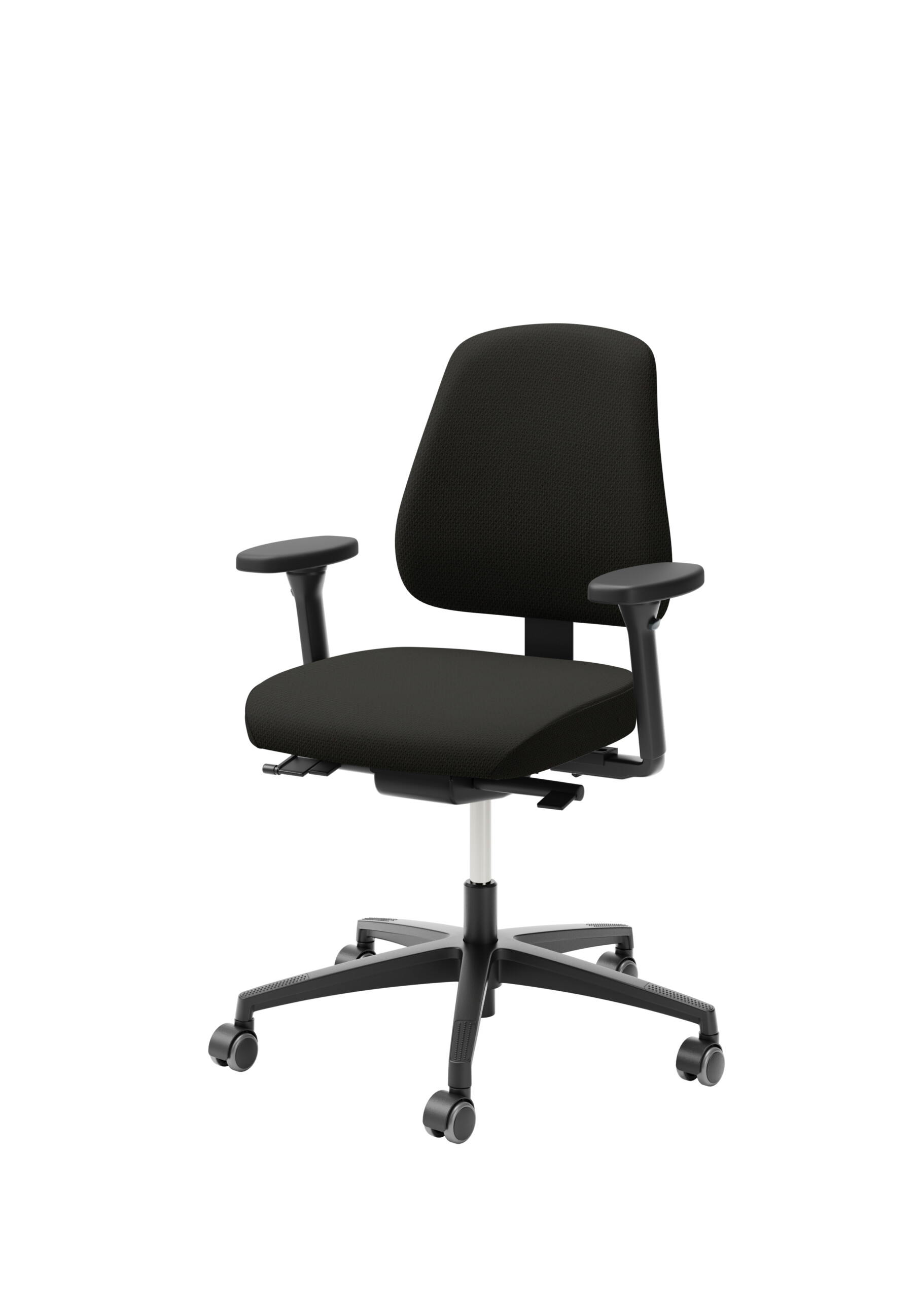Sits och rygg i tyg (svart). Kryssfot i plast (svart). Höj- och sänkbar.