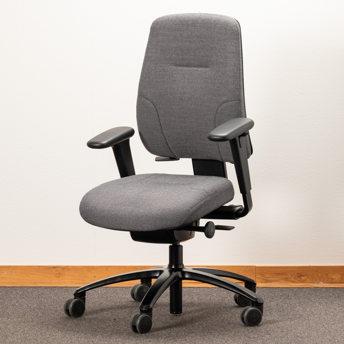 Sits och rygg i tyg (grå). Kryssfot i metall (svart). Höj- och sänkbar.