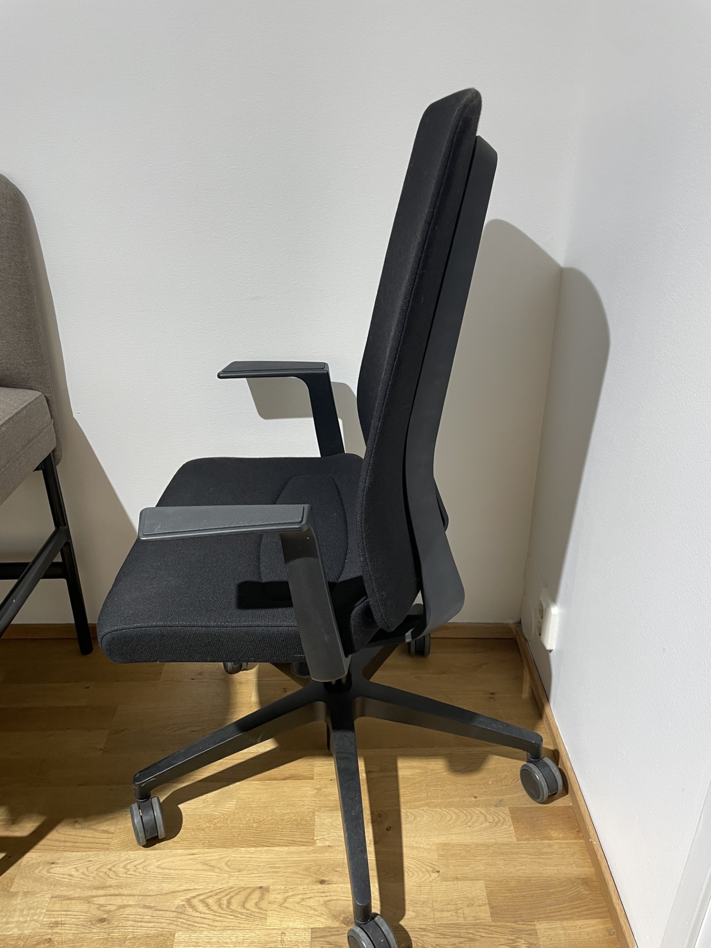Sits och rygg i tyg (svart). Kryssfot i metall (svart).