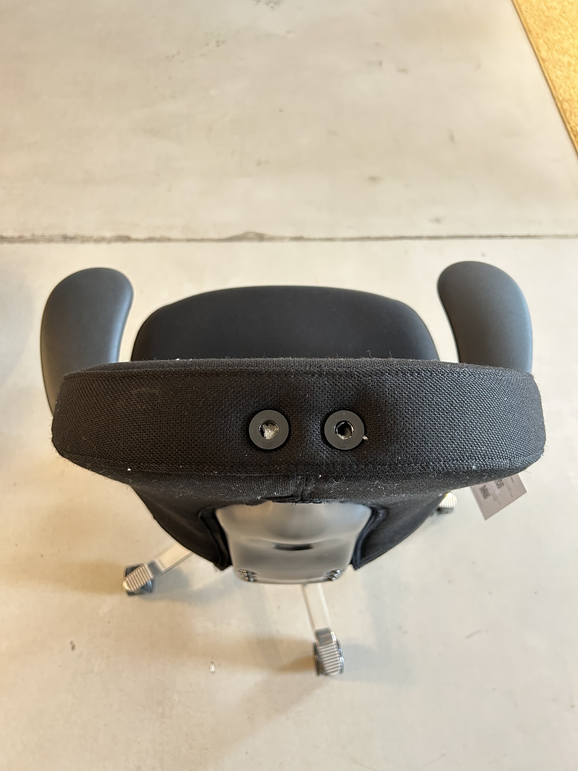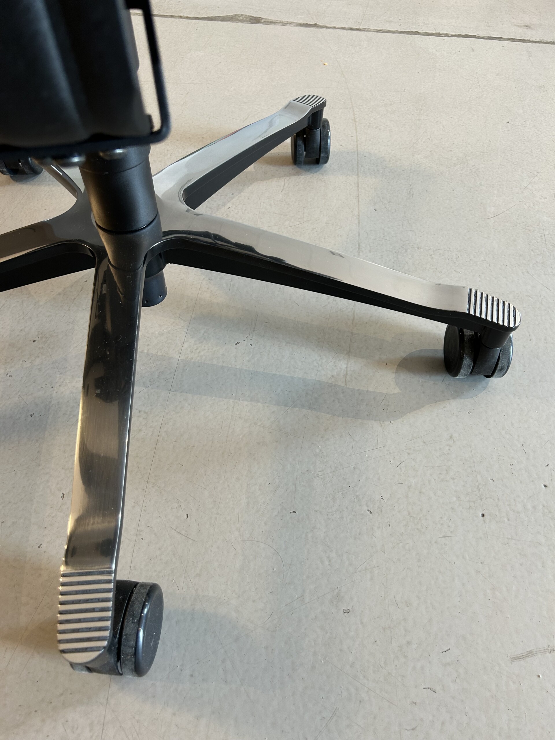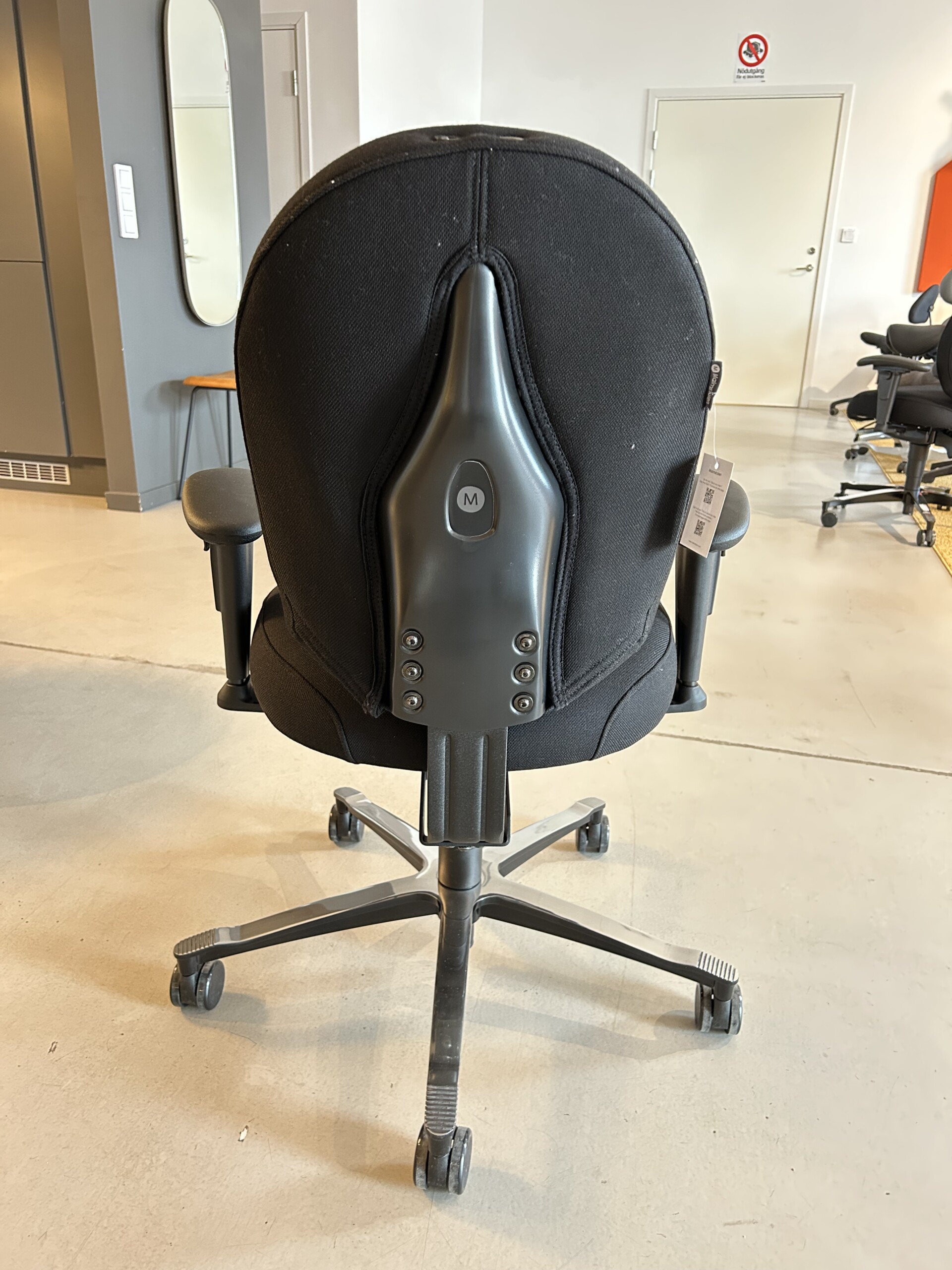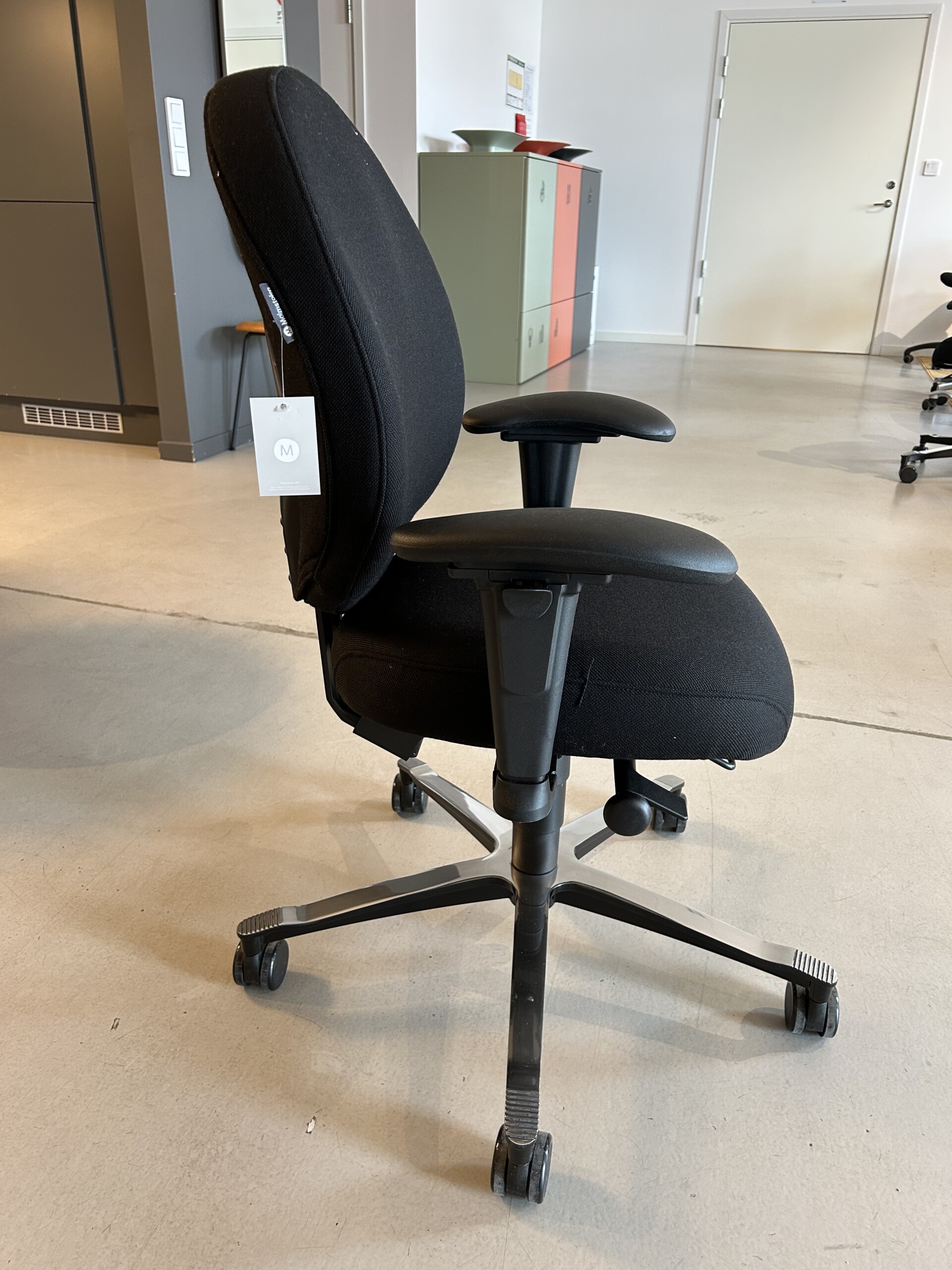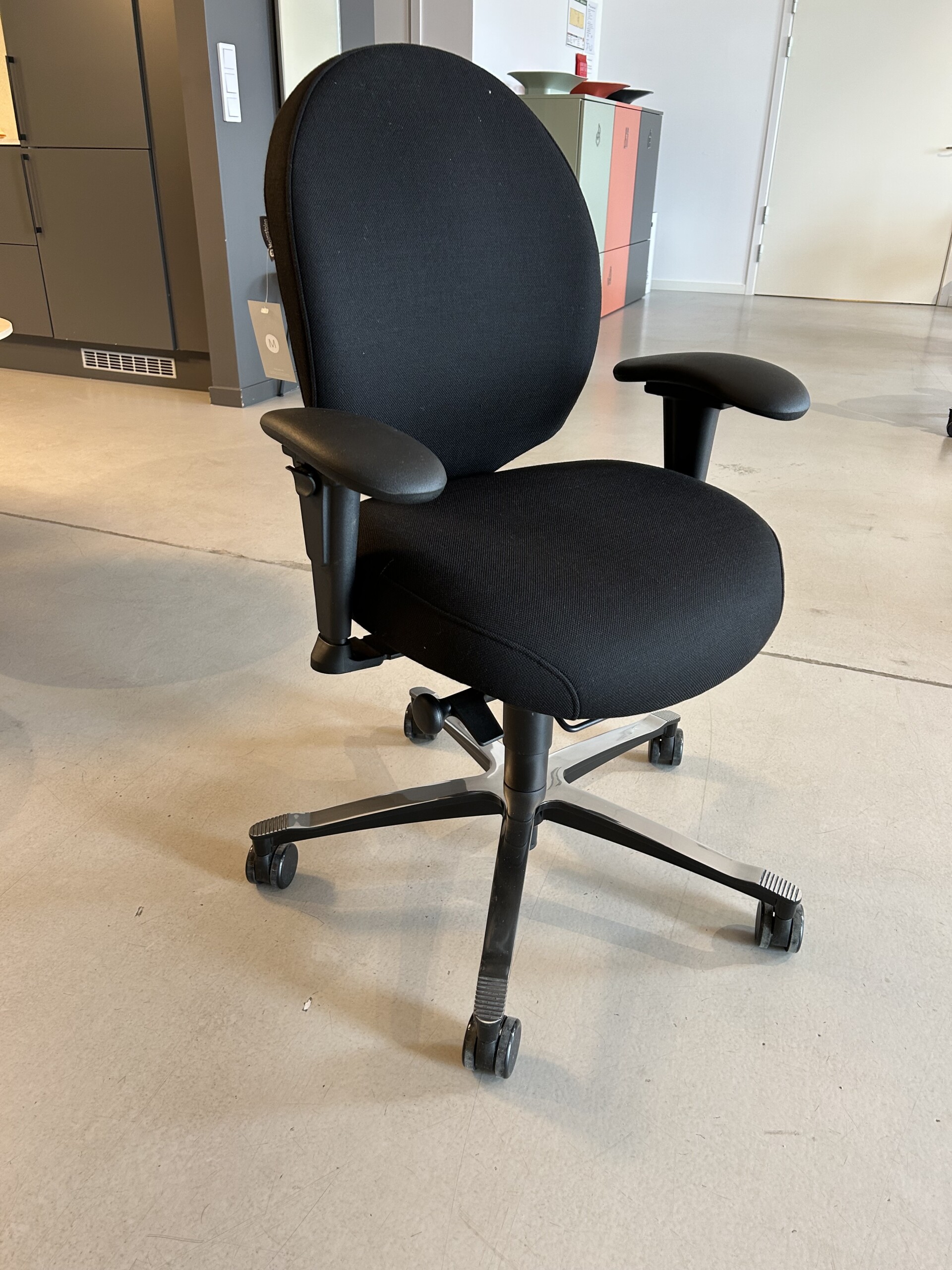 Sits och rygg i tyg (svart). Kryssfot i metall (aluminium). Höj- och sänkbar.
