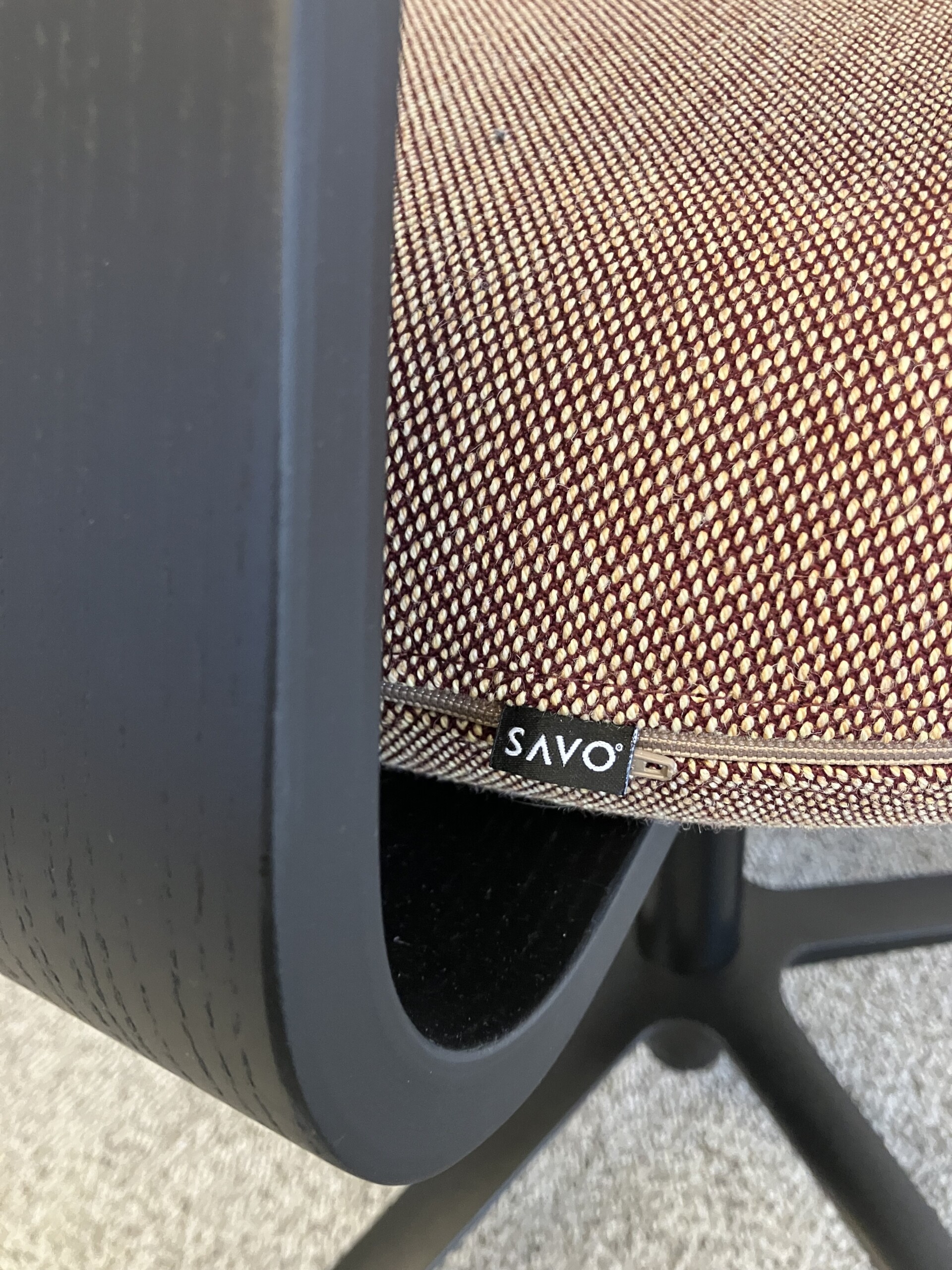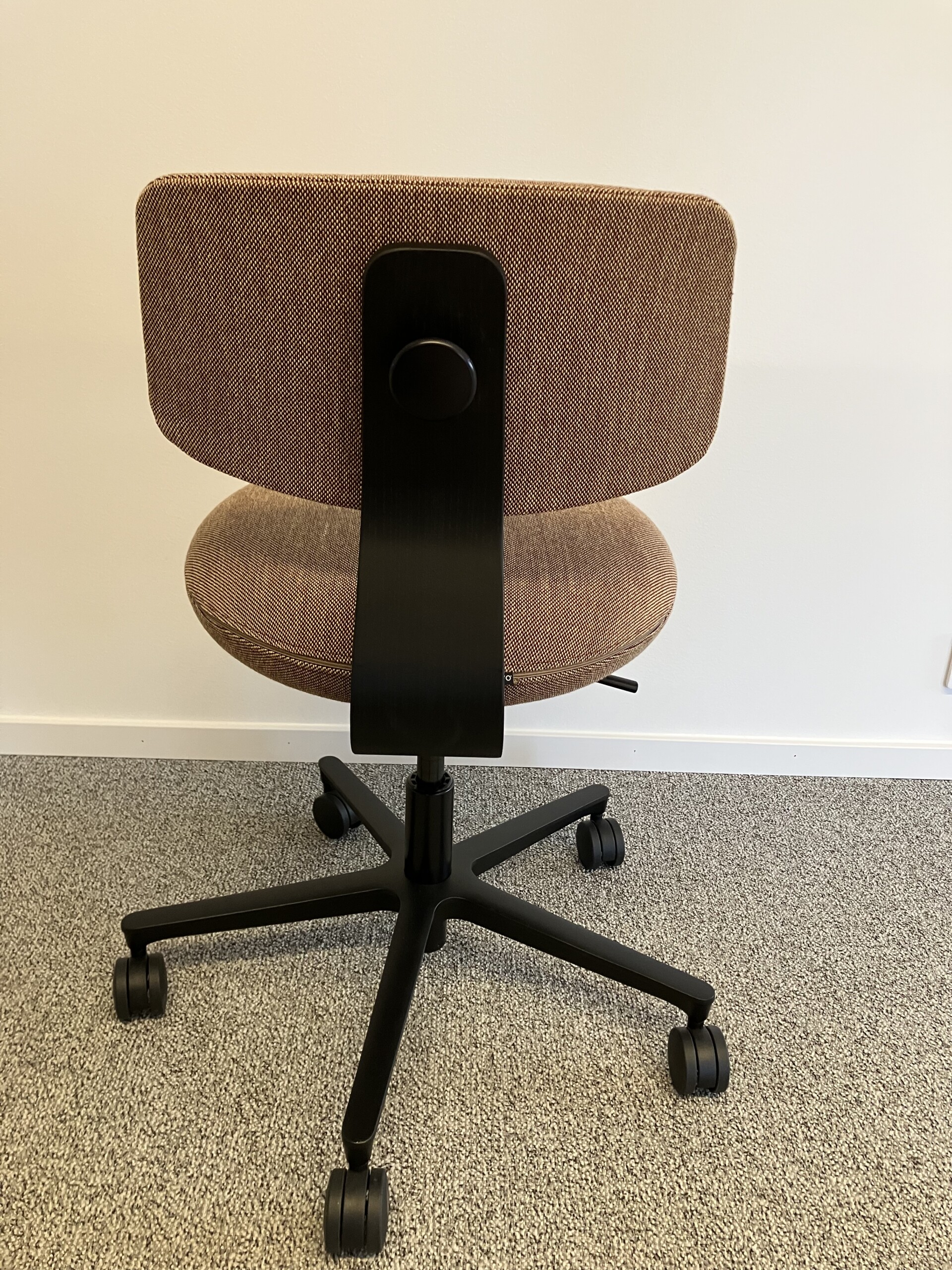 Sits och rygg i tyg. Kryssfot i metall (svart). Höj- och sänkbar.
