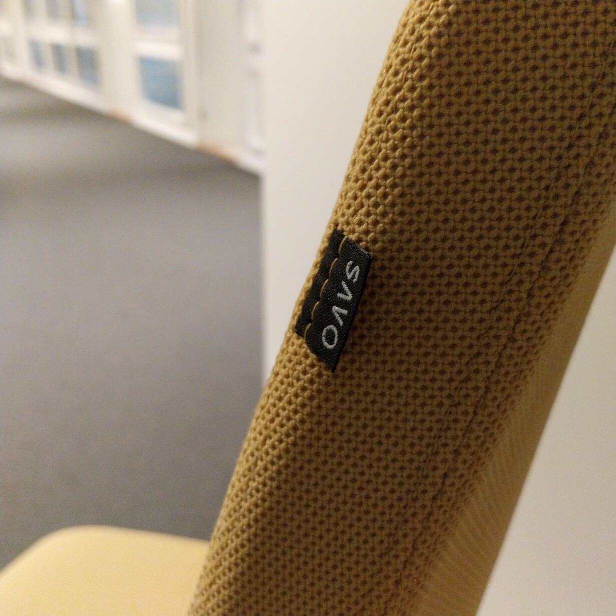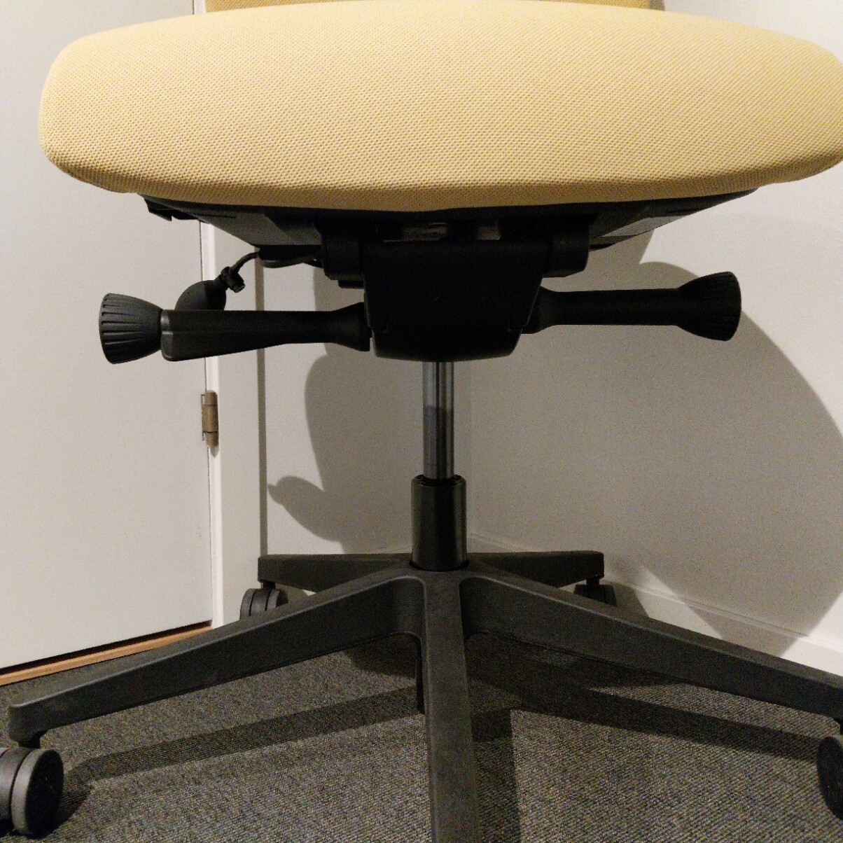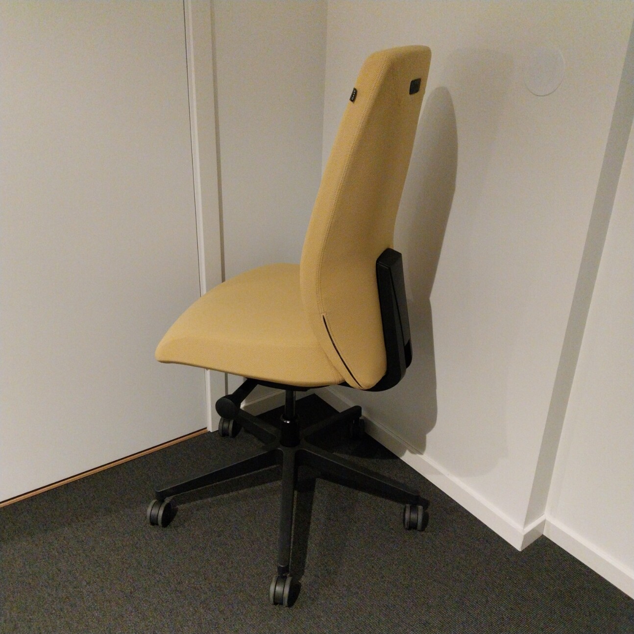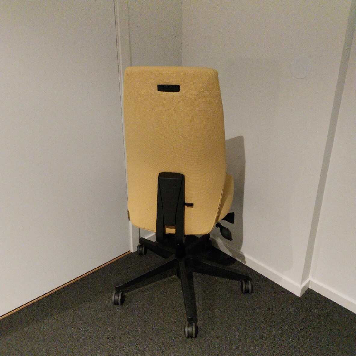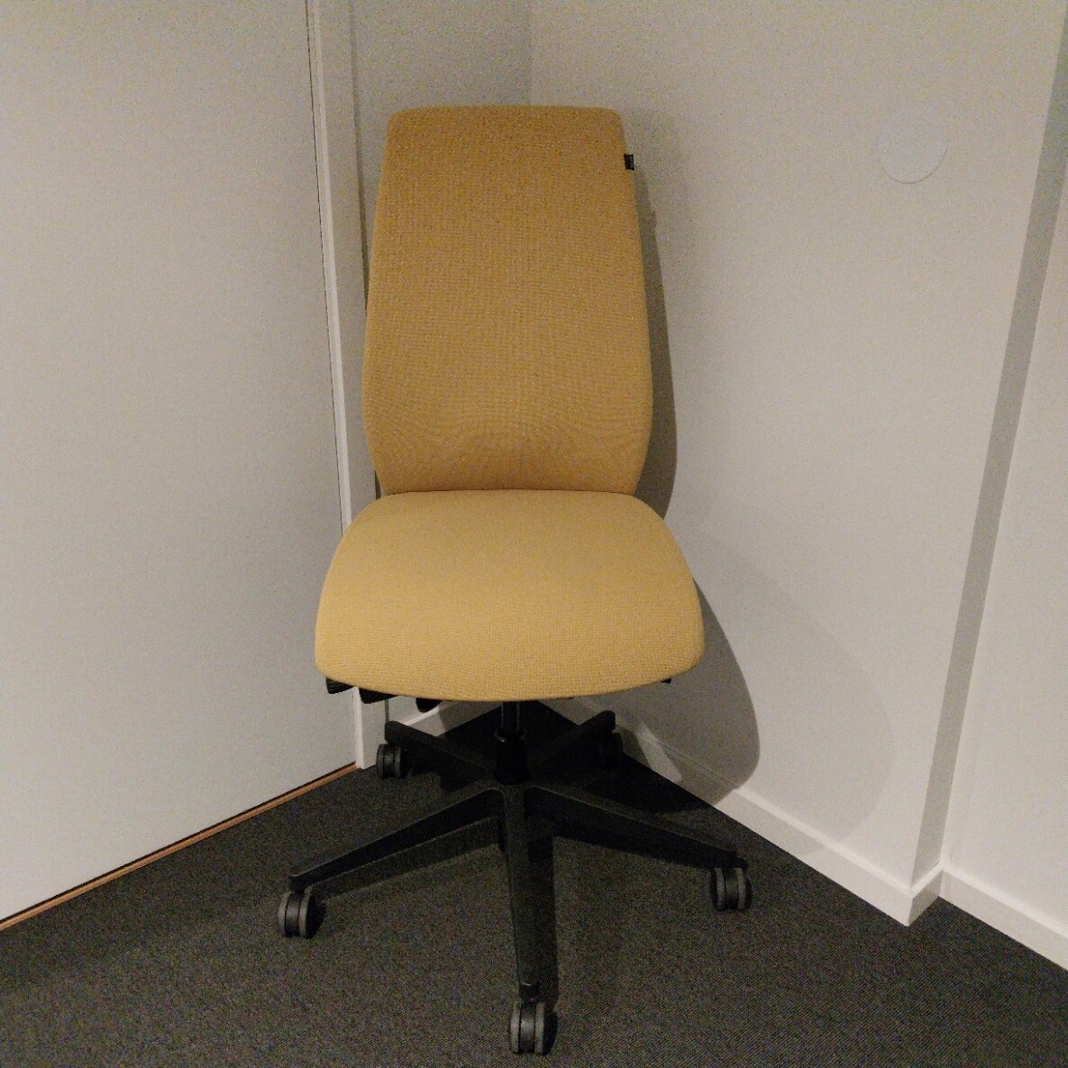 Sits och rygg i tyg (gul). Kryssfot i plast (svart). Höj- och sänkbar.