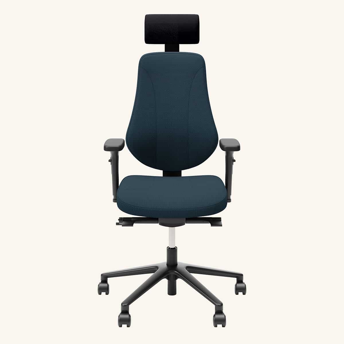 Sits och rygg i tyg (blå). Kryssfot i metall (svart). Höj- och sänkbar.