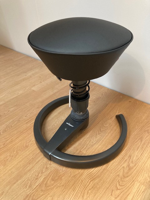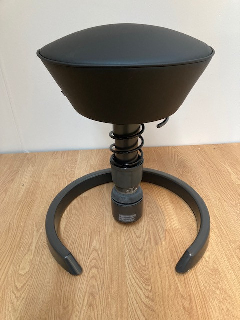 Sits i tyg (svart). Pelarfot i metall (svart). Höj- och sänkbar.