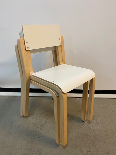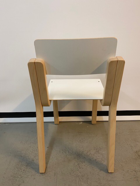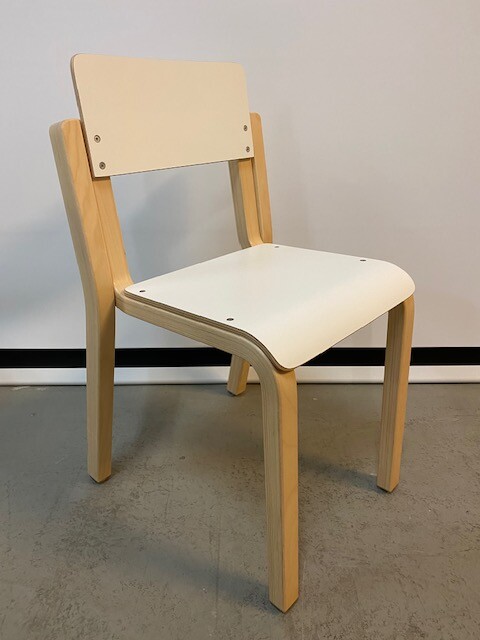 Sits och rygg i laminat (vit). Ben i trä (björk).