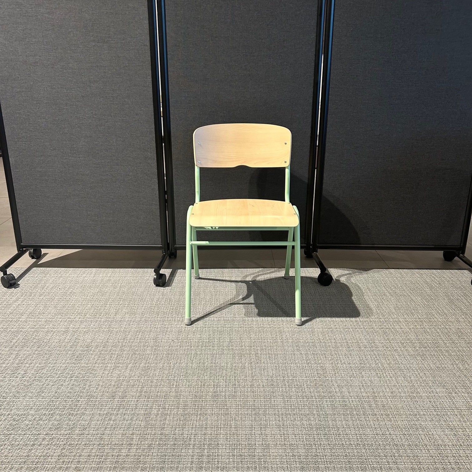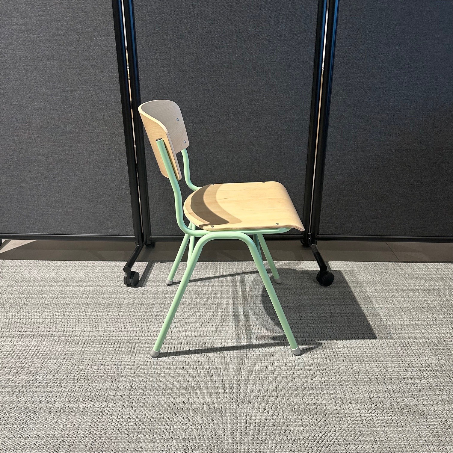 Sits och rygg i laminat (björk). Ben i metall (grön).
