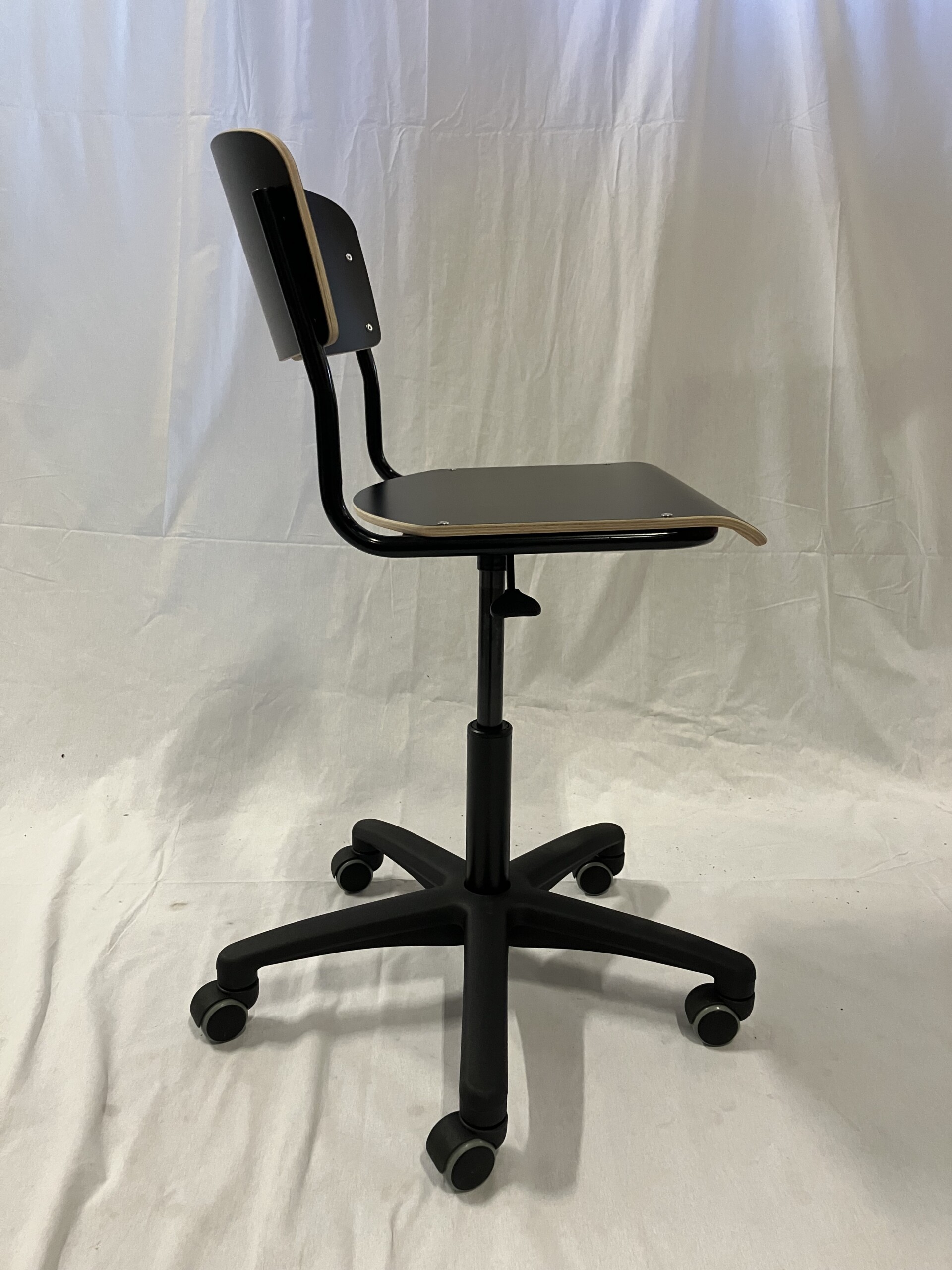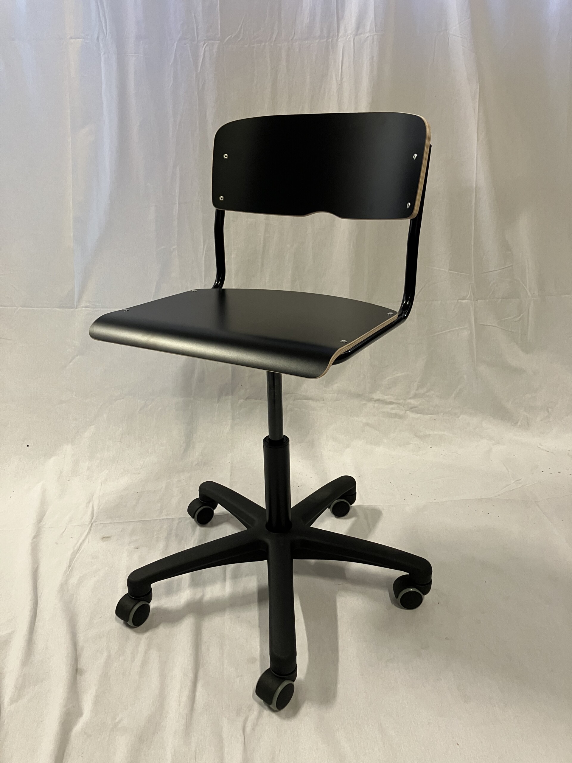 Sits och rygg i trä (svart). Kryssfot i annat.