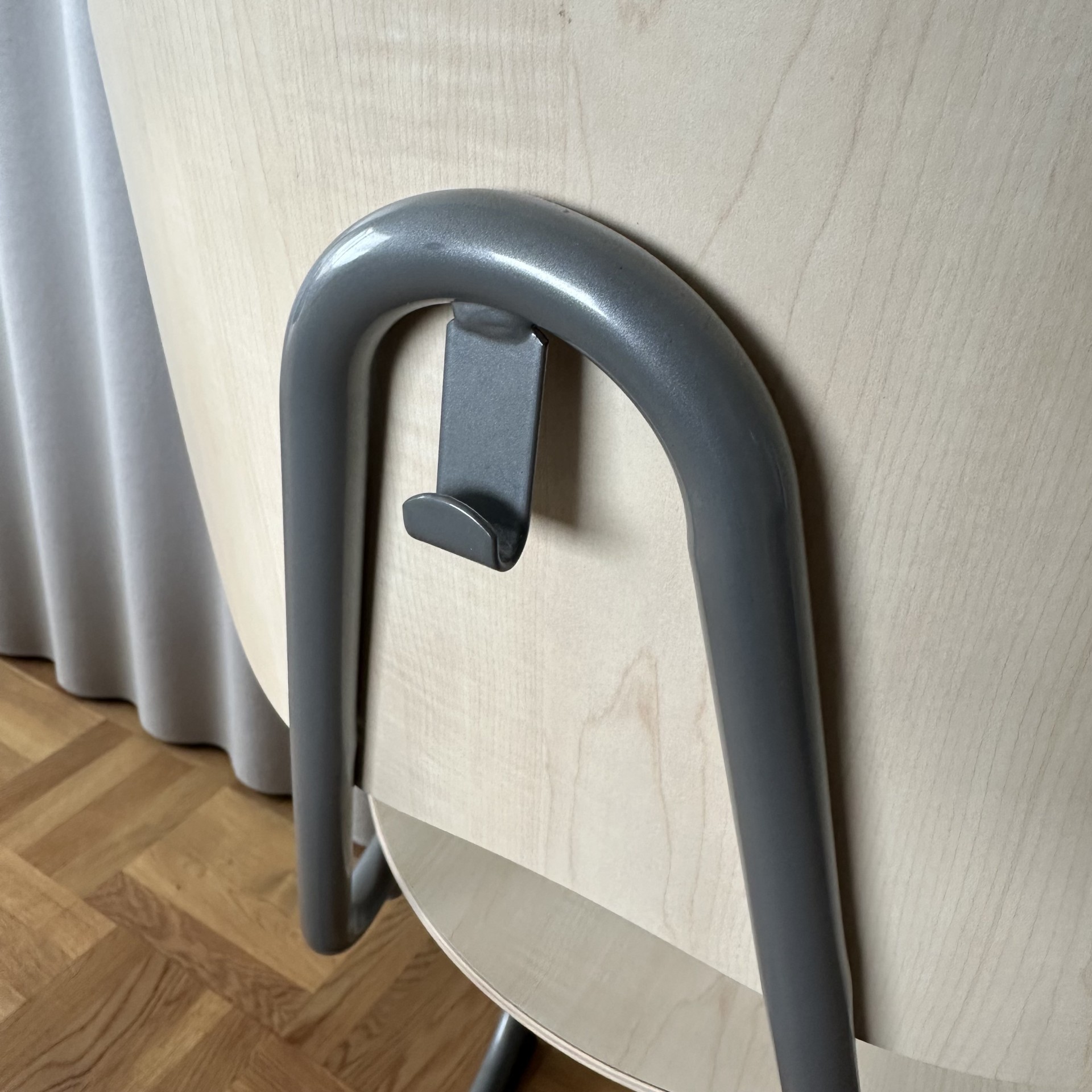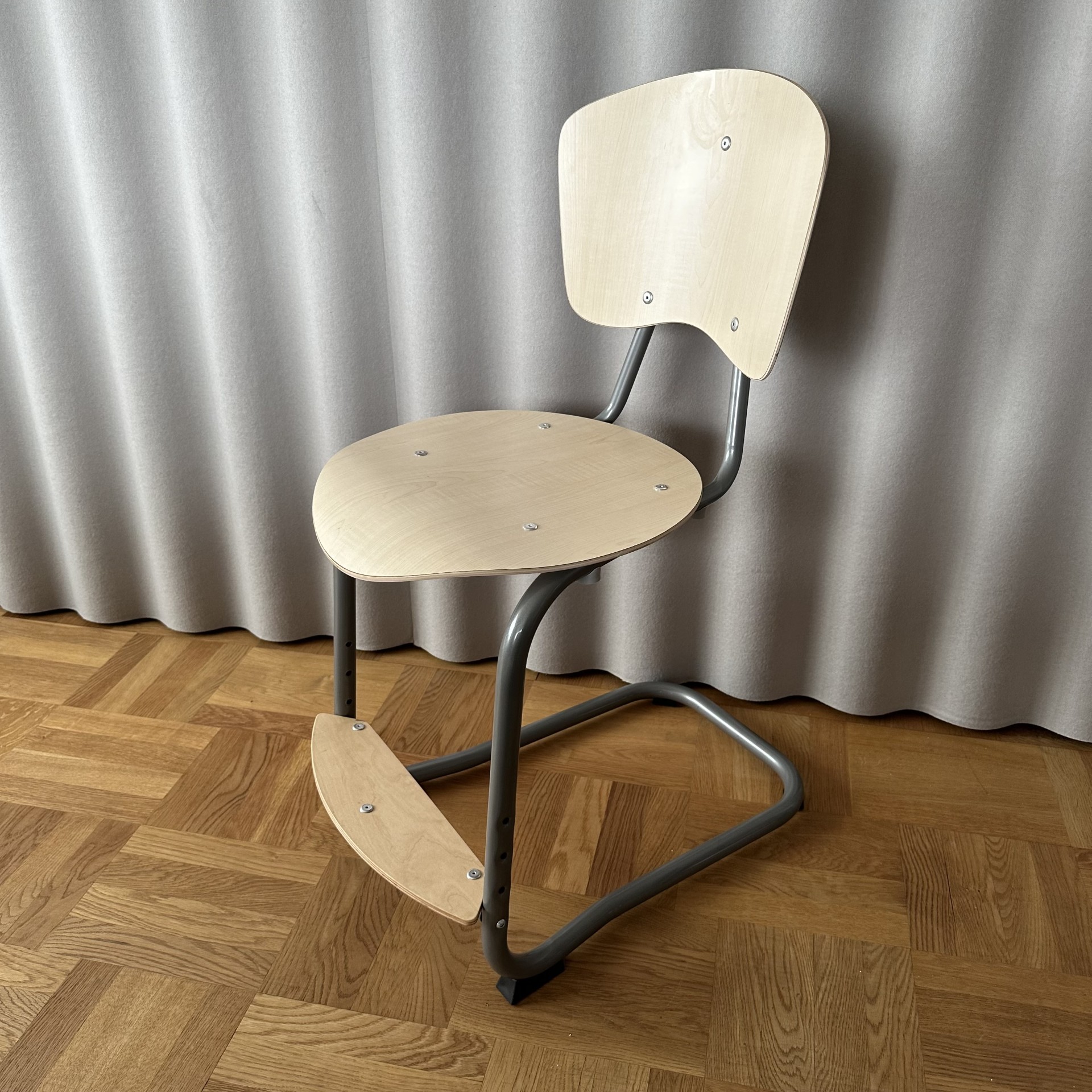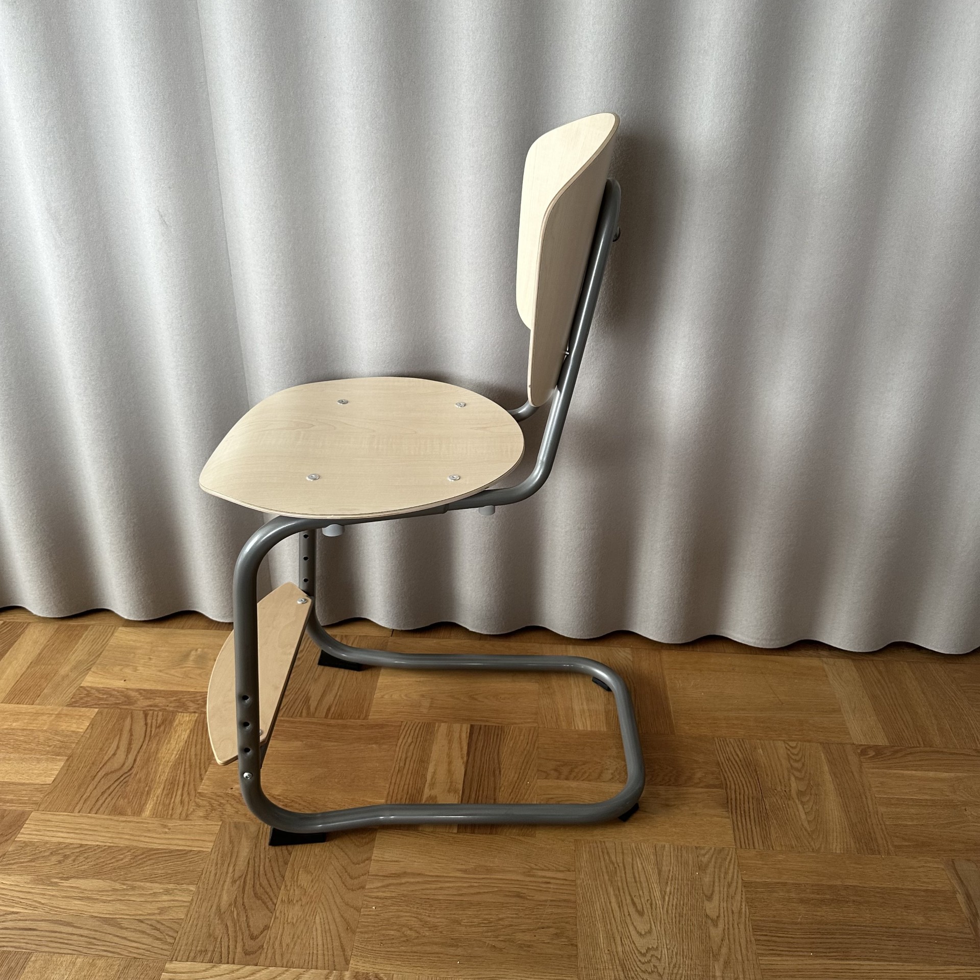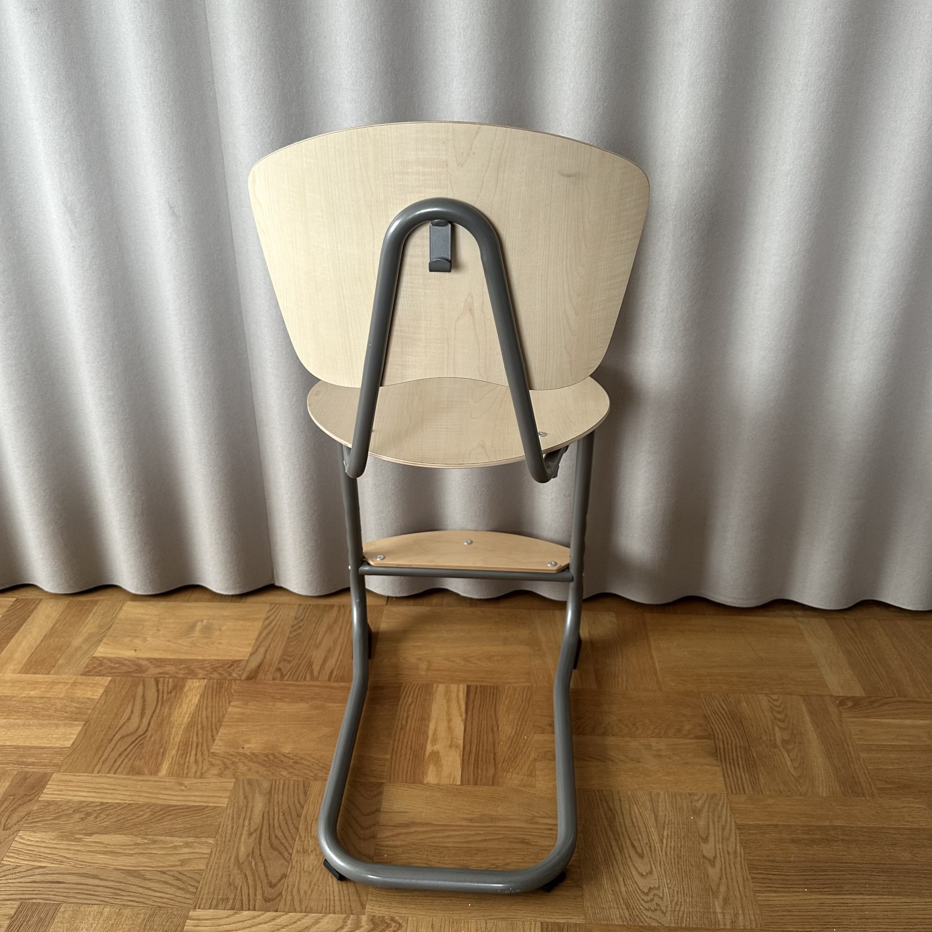 Sits och rygg i laminat (björk). Medstativ i metall (grå).