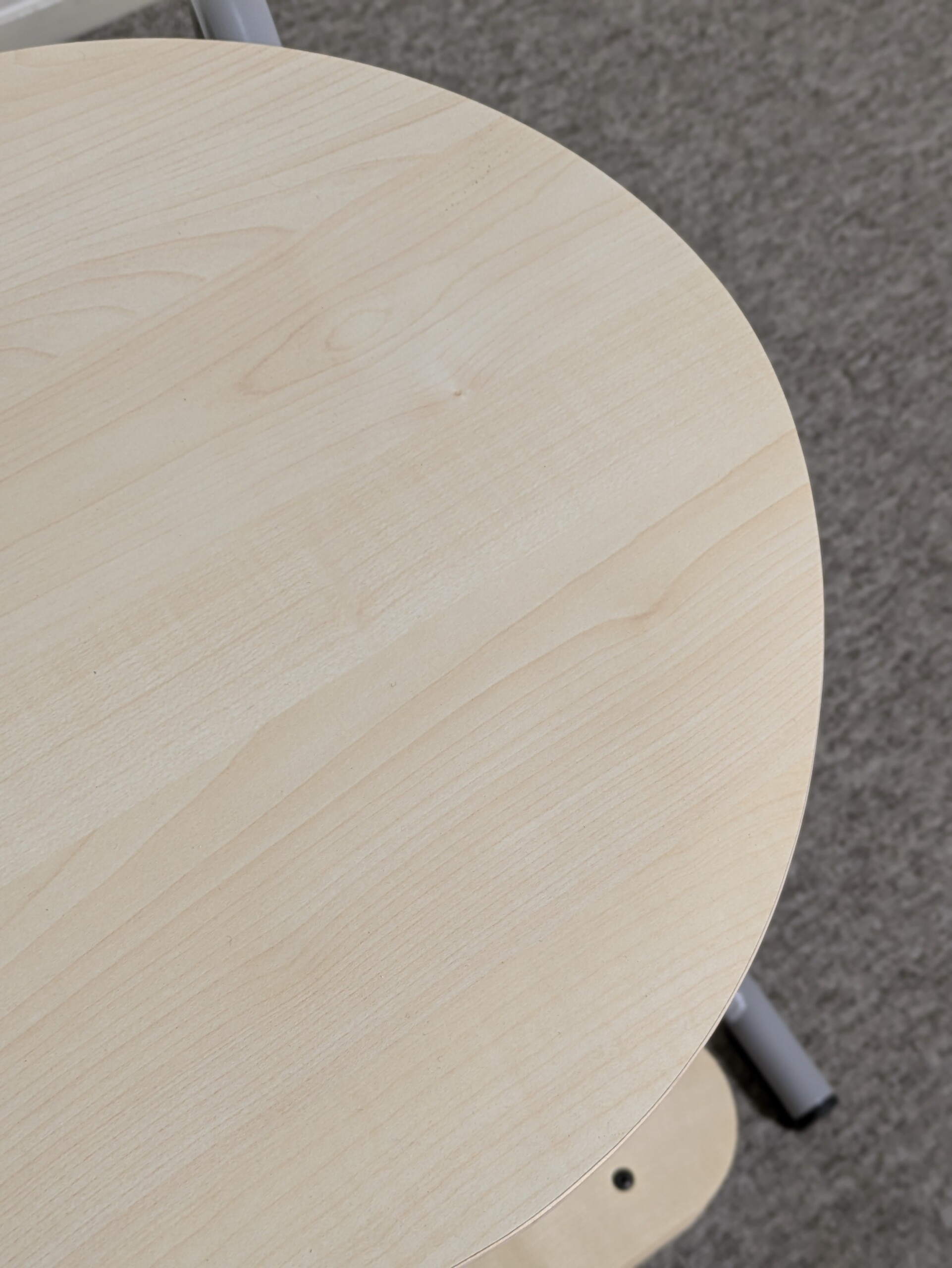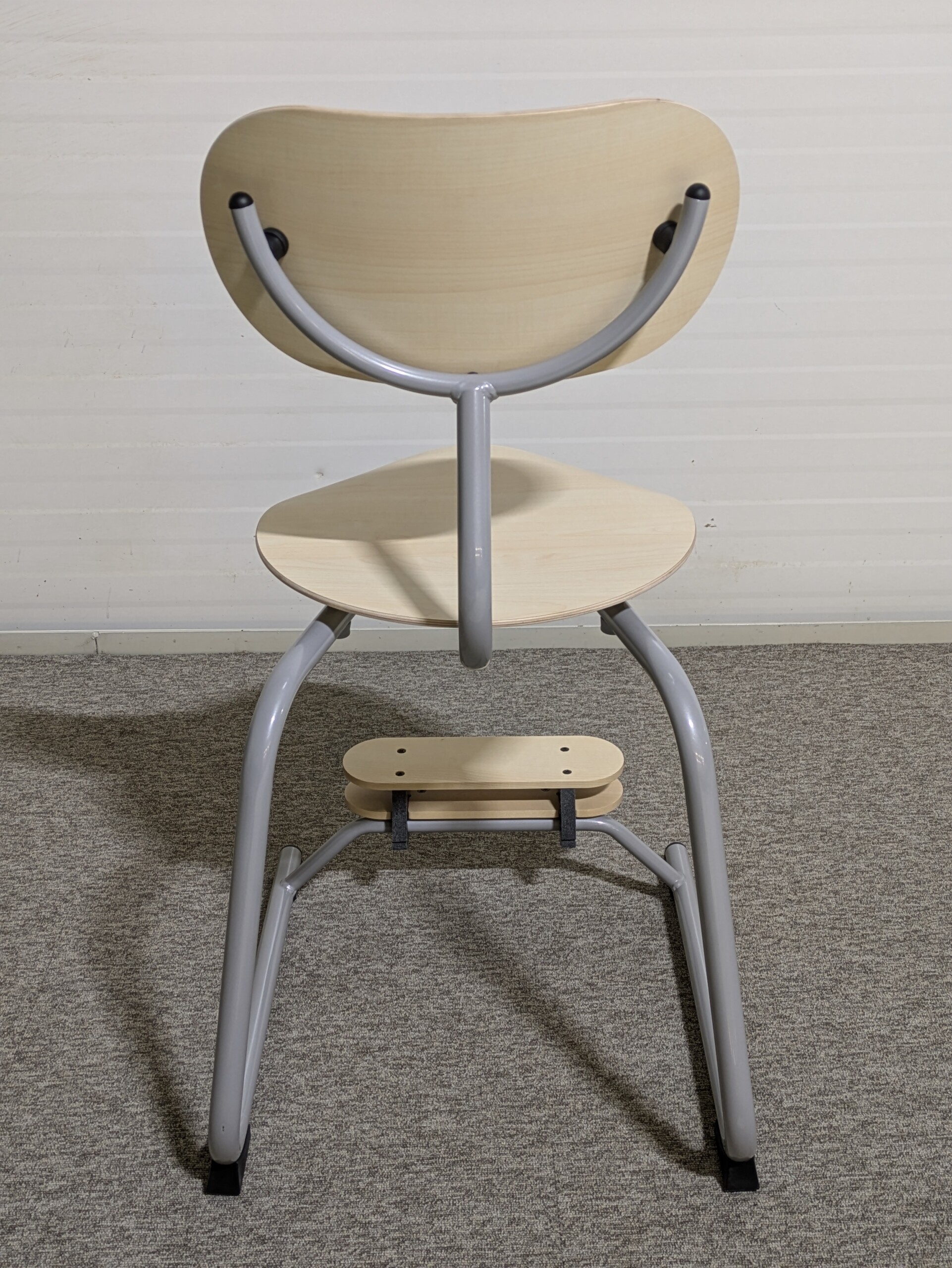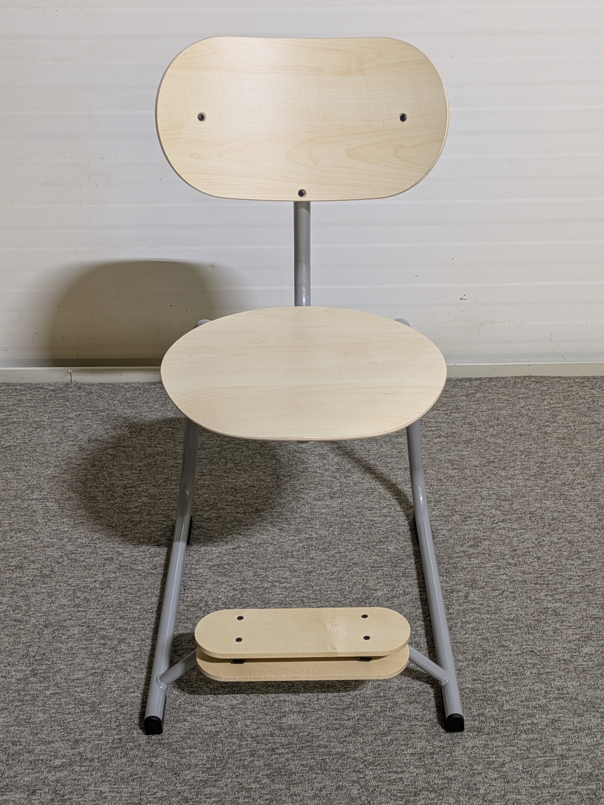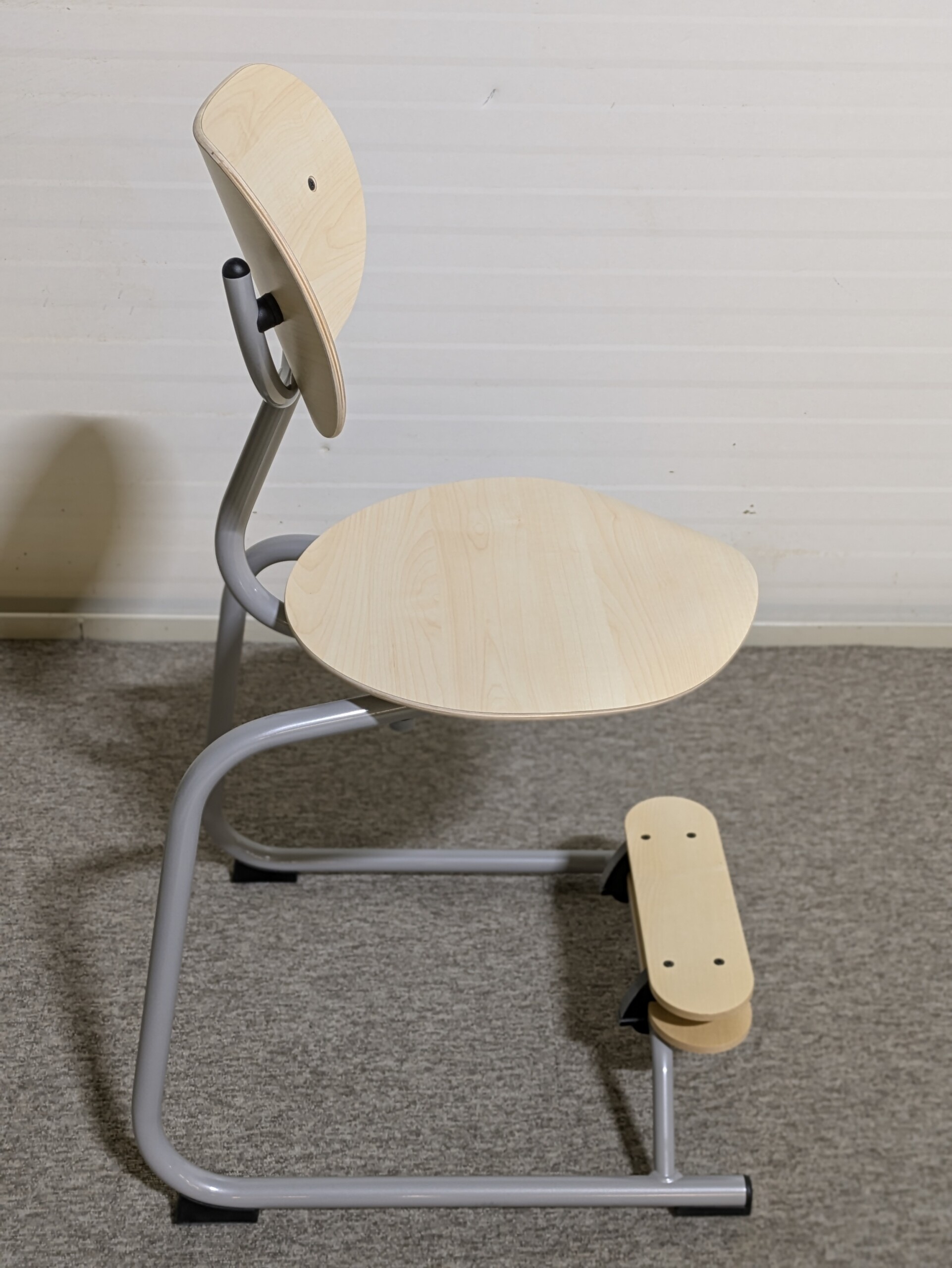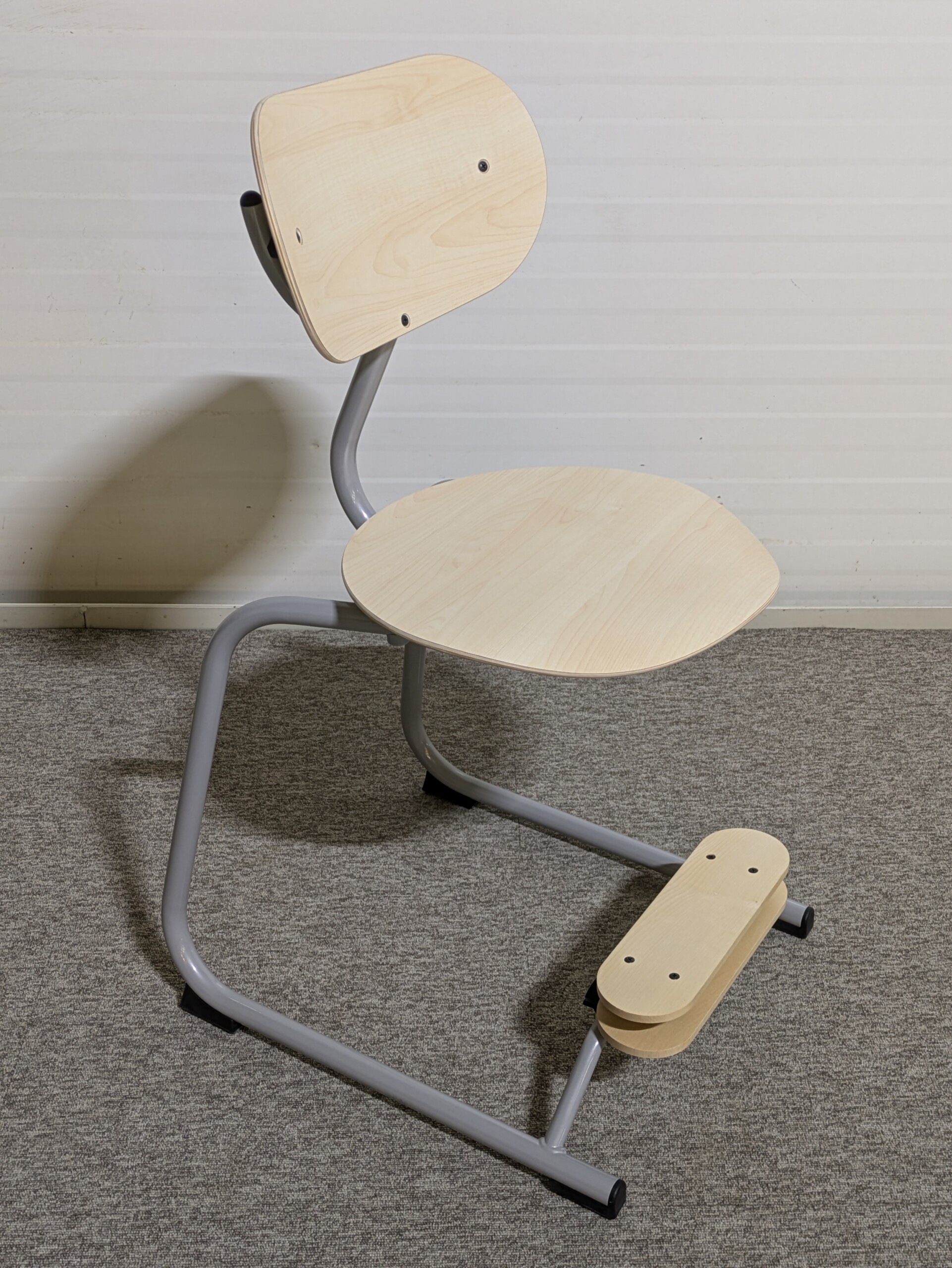 Sits och rygg i trä (bok). Medstativ i metall (grå).
