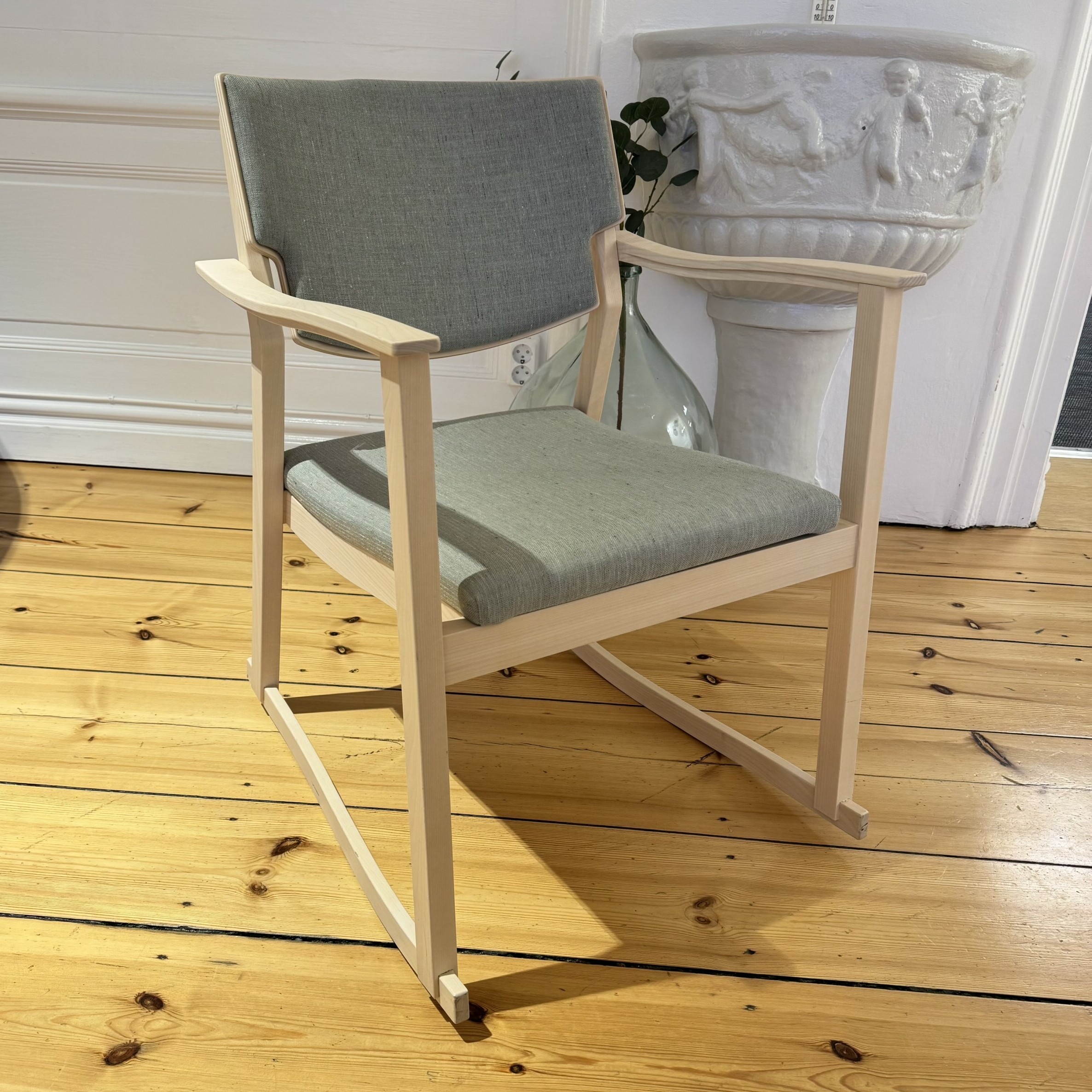 Sits och rygg i tyg (turkos). Medstativ i trä (björk).