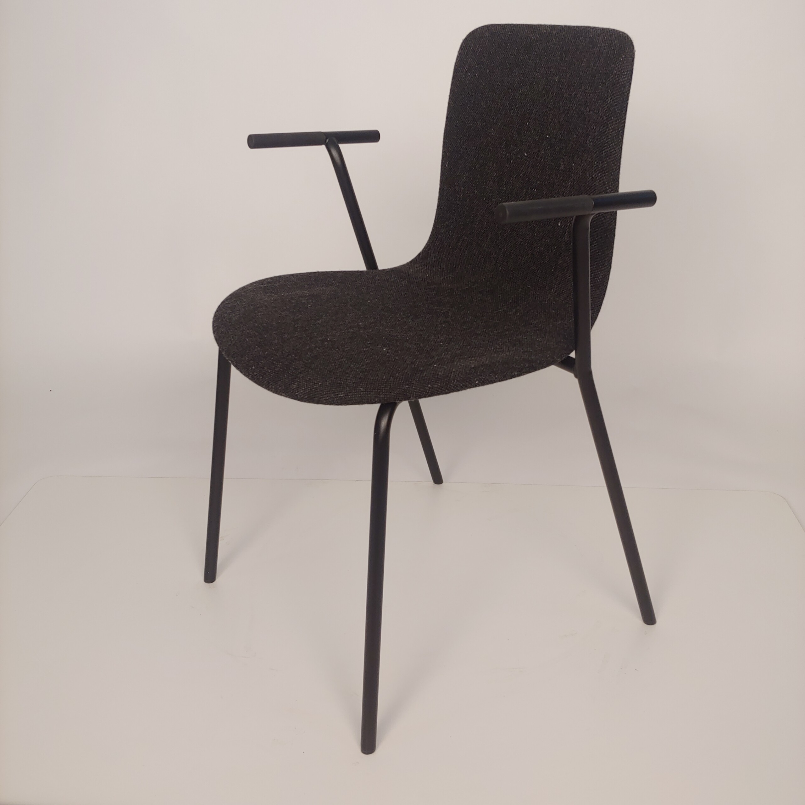 Sits och rygg i tyg (svart). Ben i metall (svart).