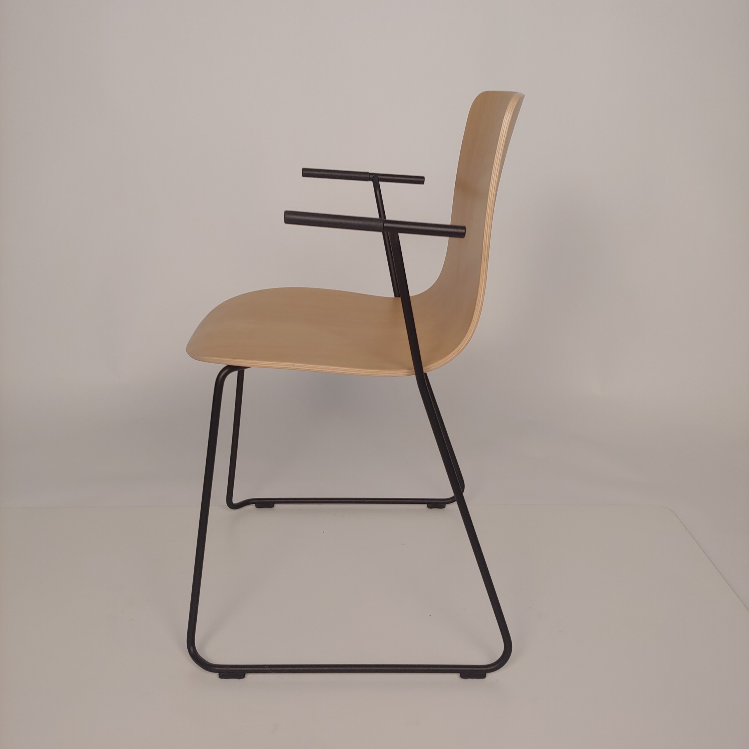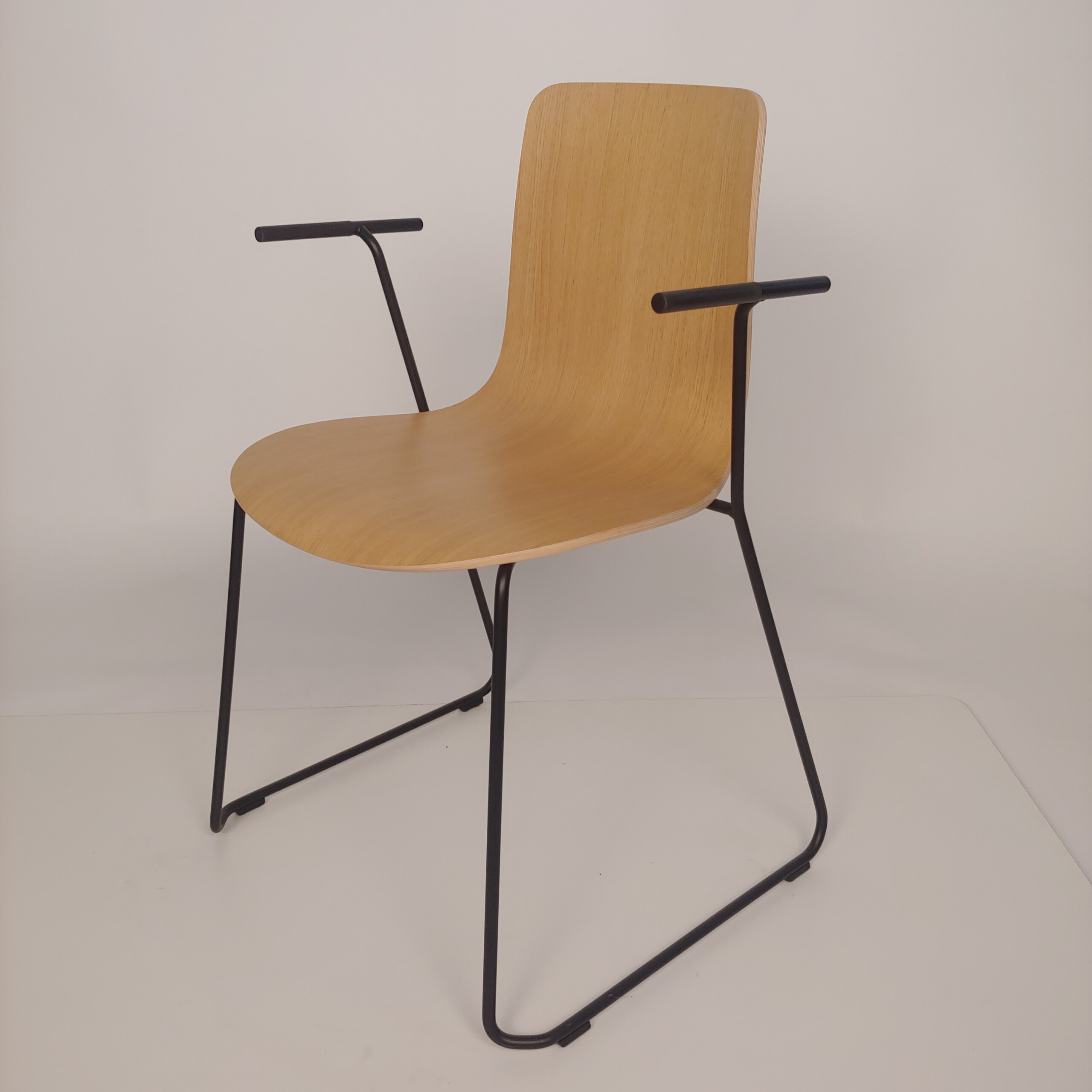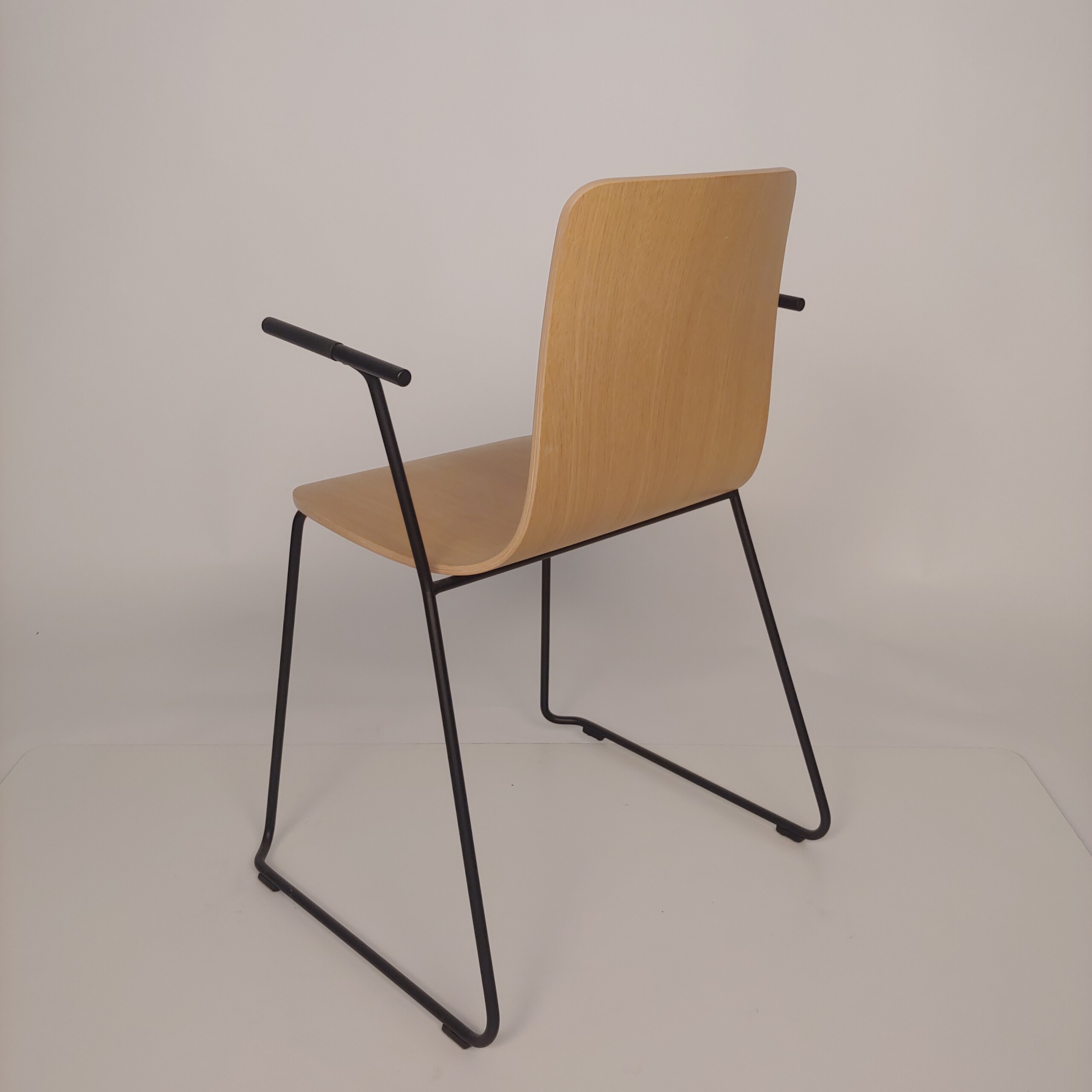 Sits och rygg i trä (ek). Medstativ i metall (svart).