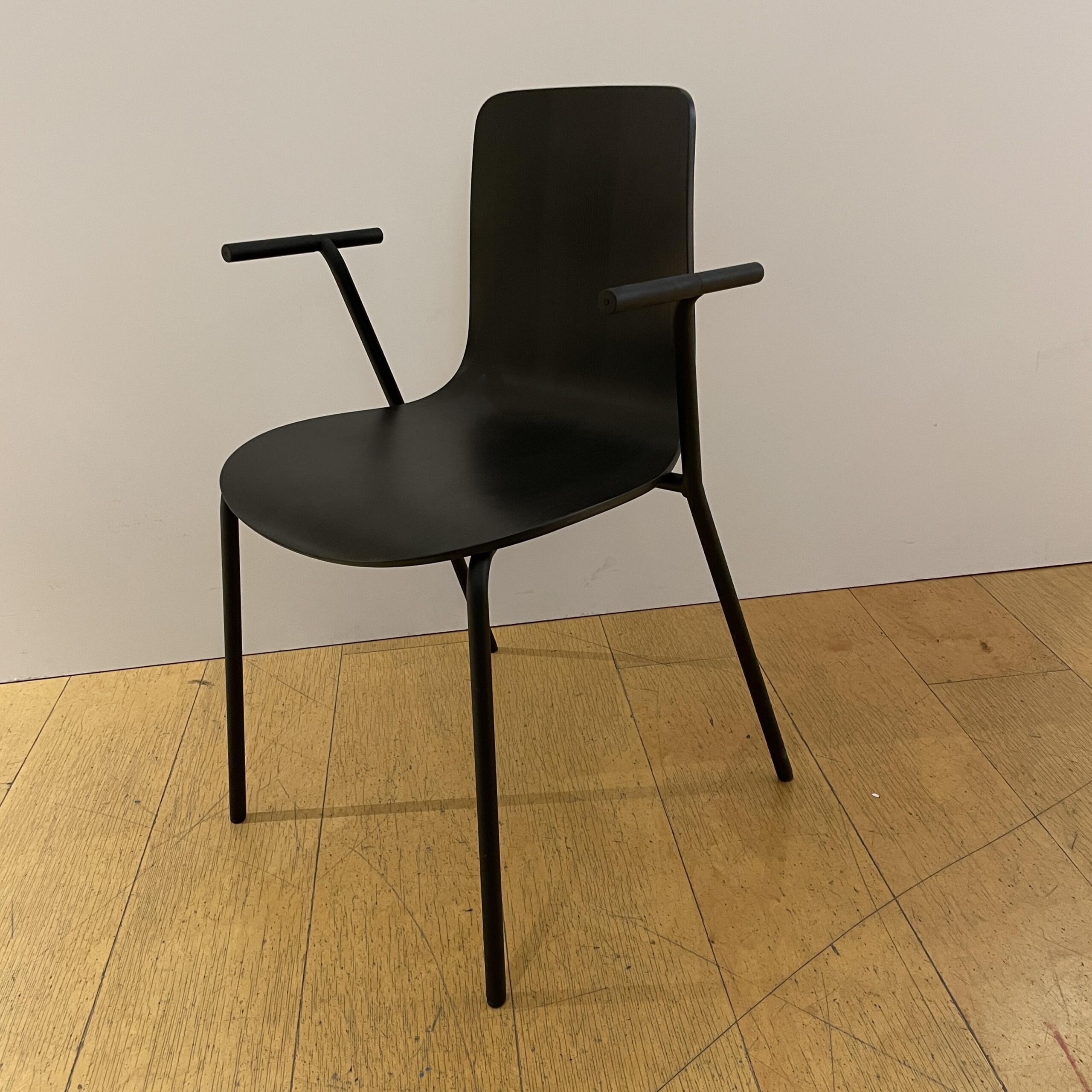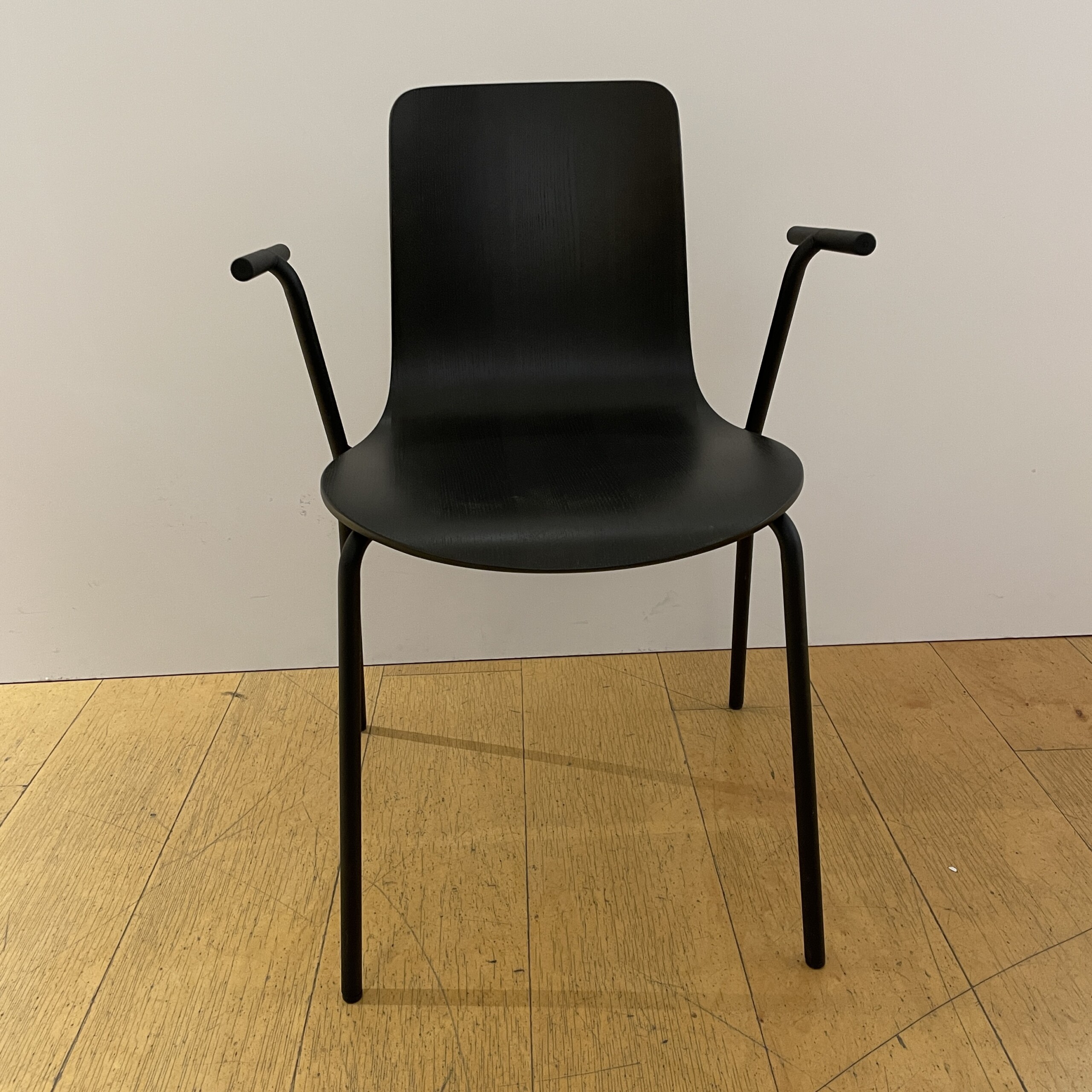 Sits och rygg i trä (svart). Ben i metall (svart).