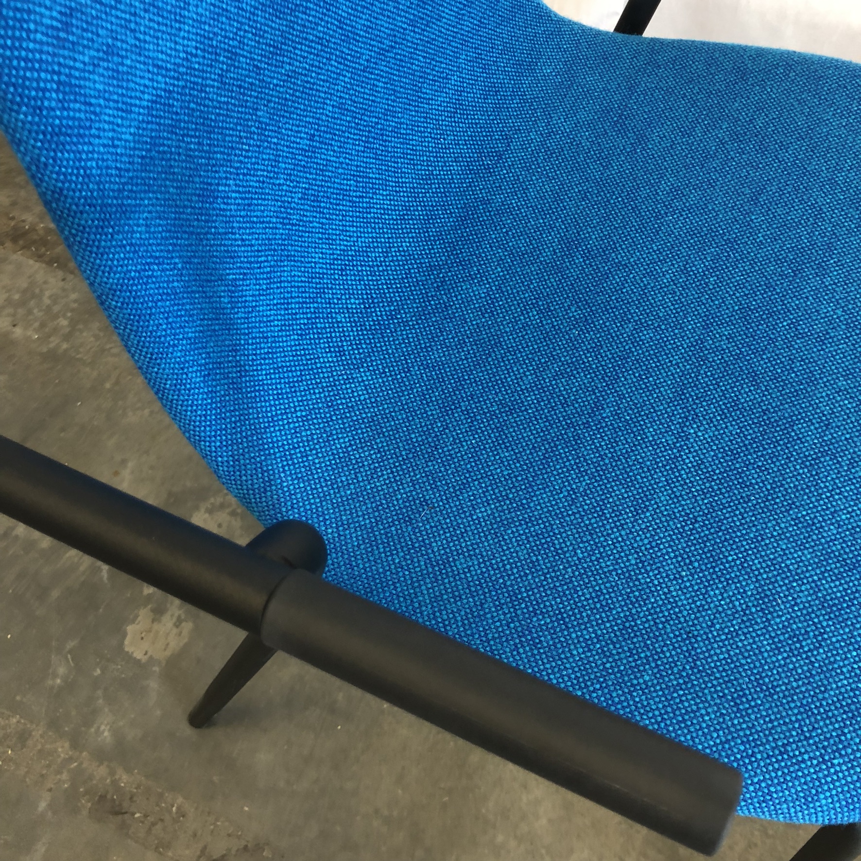 Sits och rygg i tyg (blå). Ben i metall (svart).
