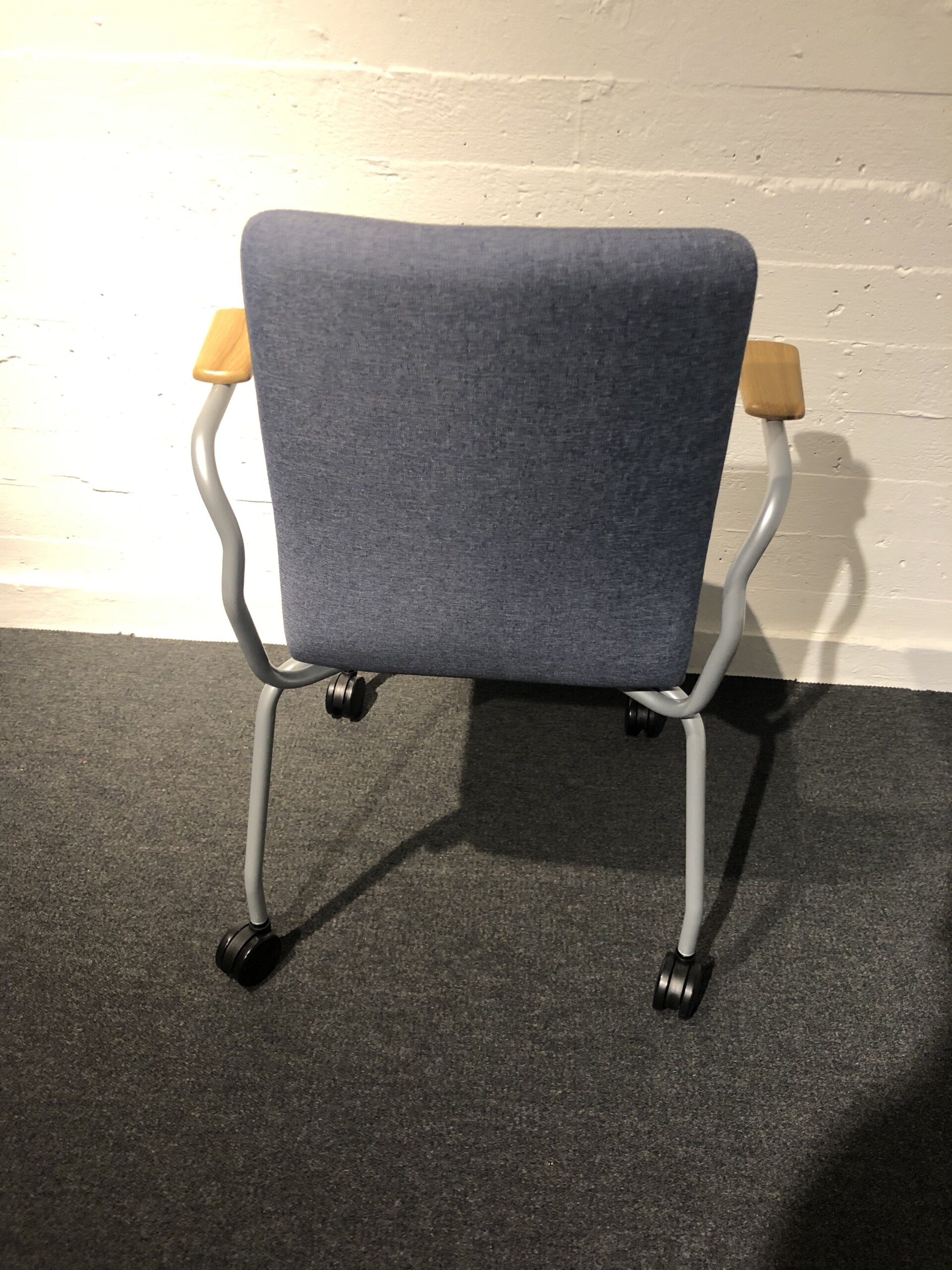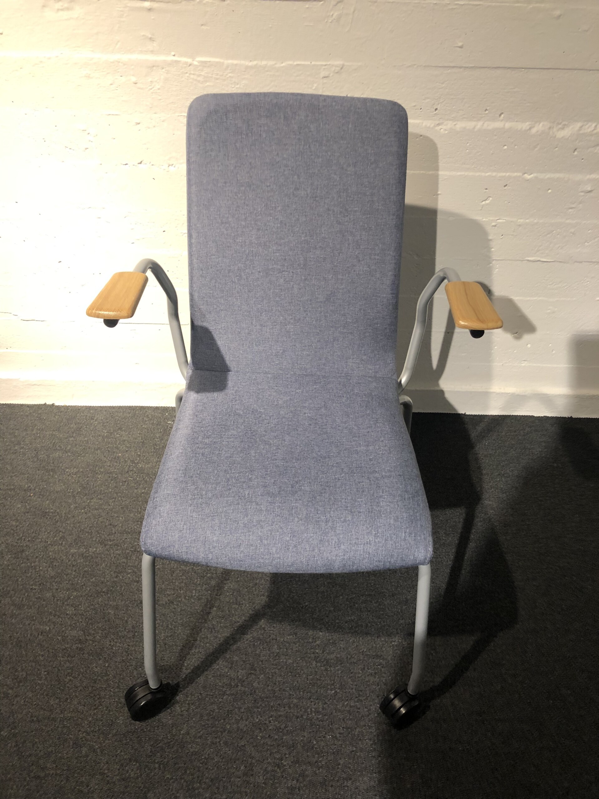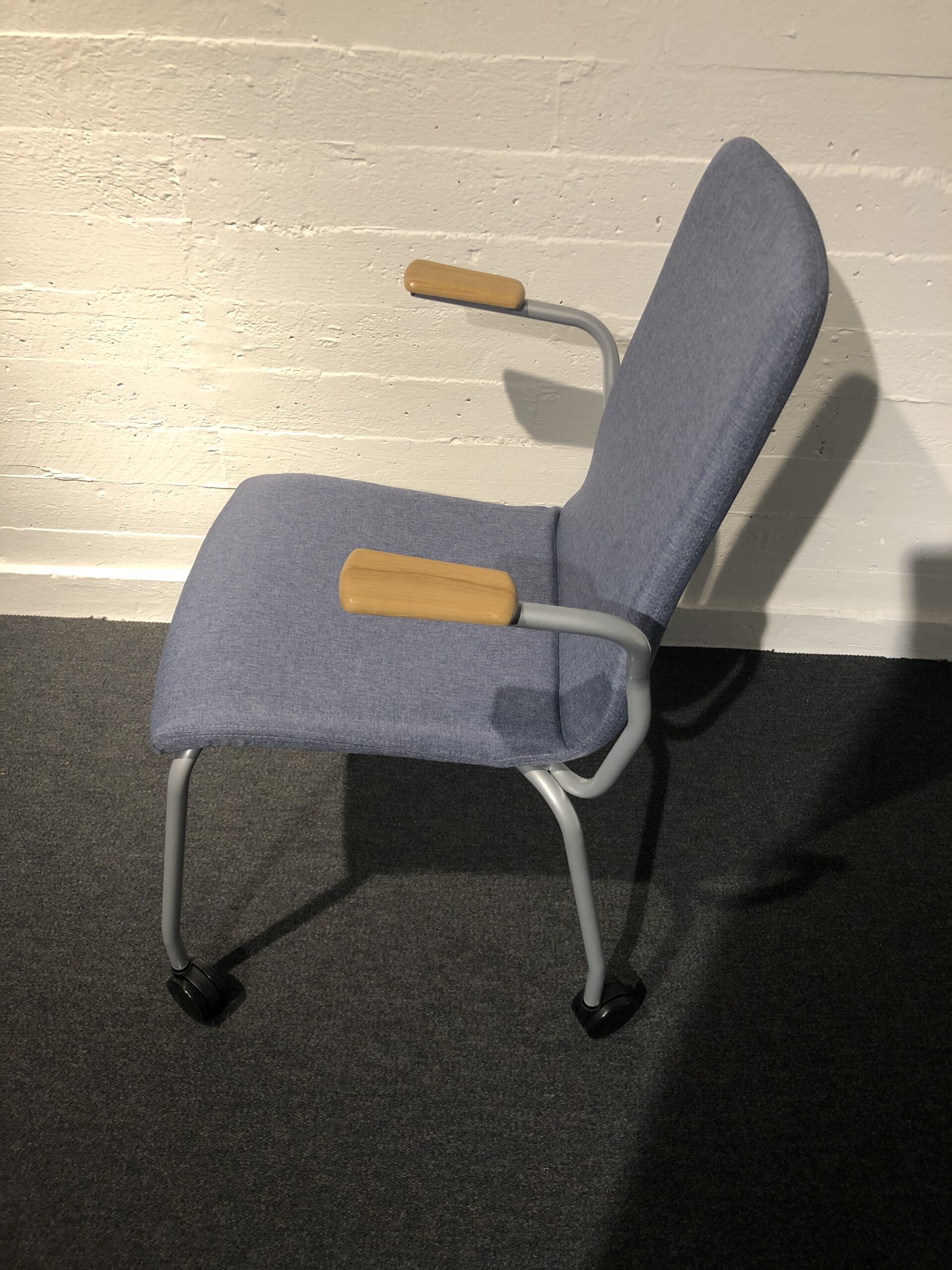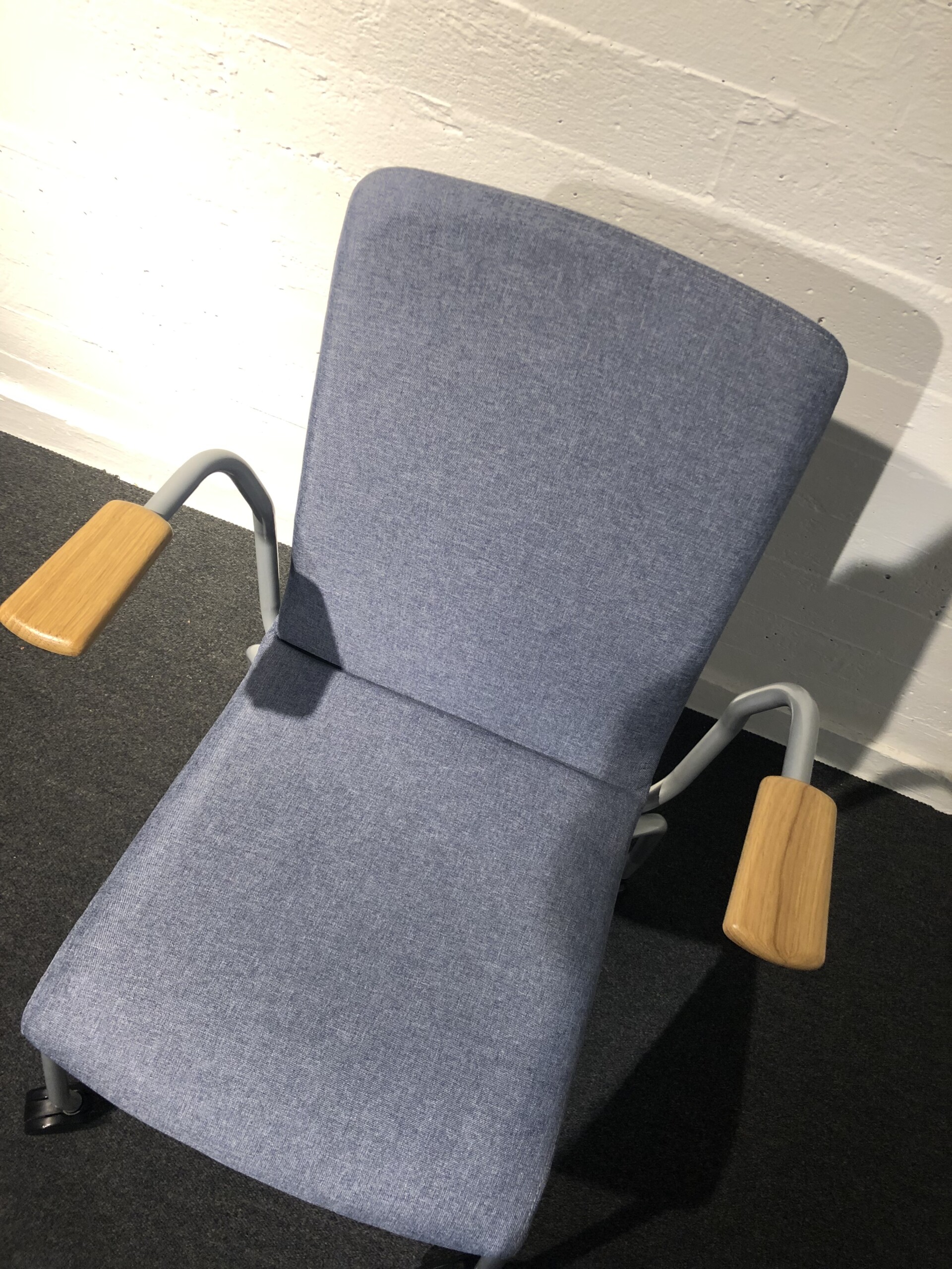 Sits och rygg i tyg (blå). Ben i metall (silver).