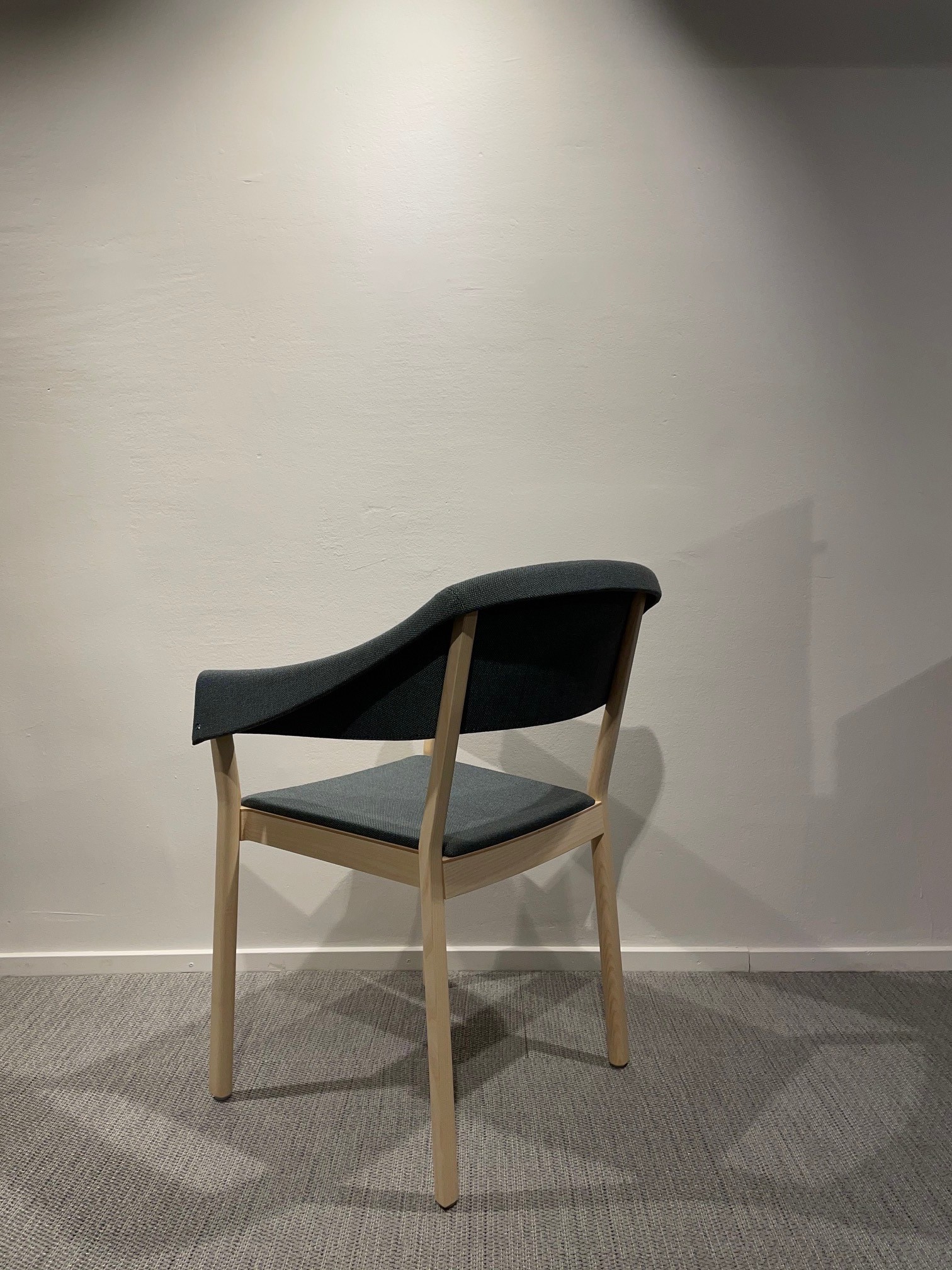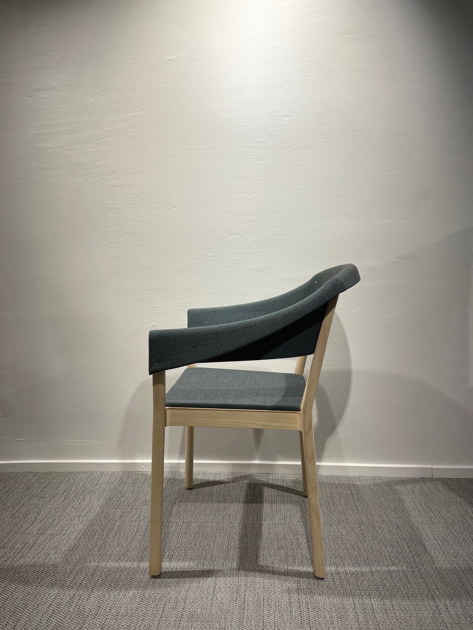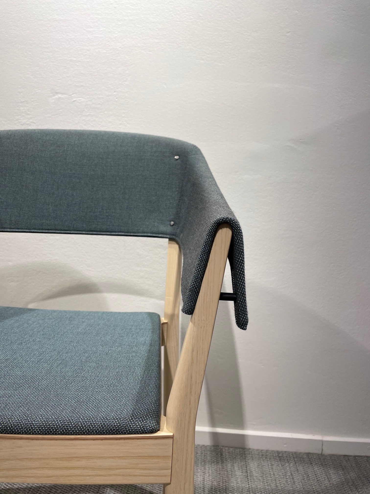 Sits och rygg i tyg (turkos). Ben i trä (ask).