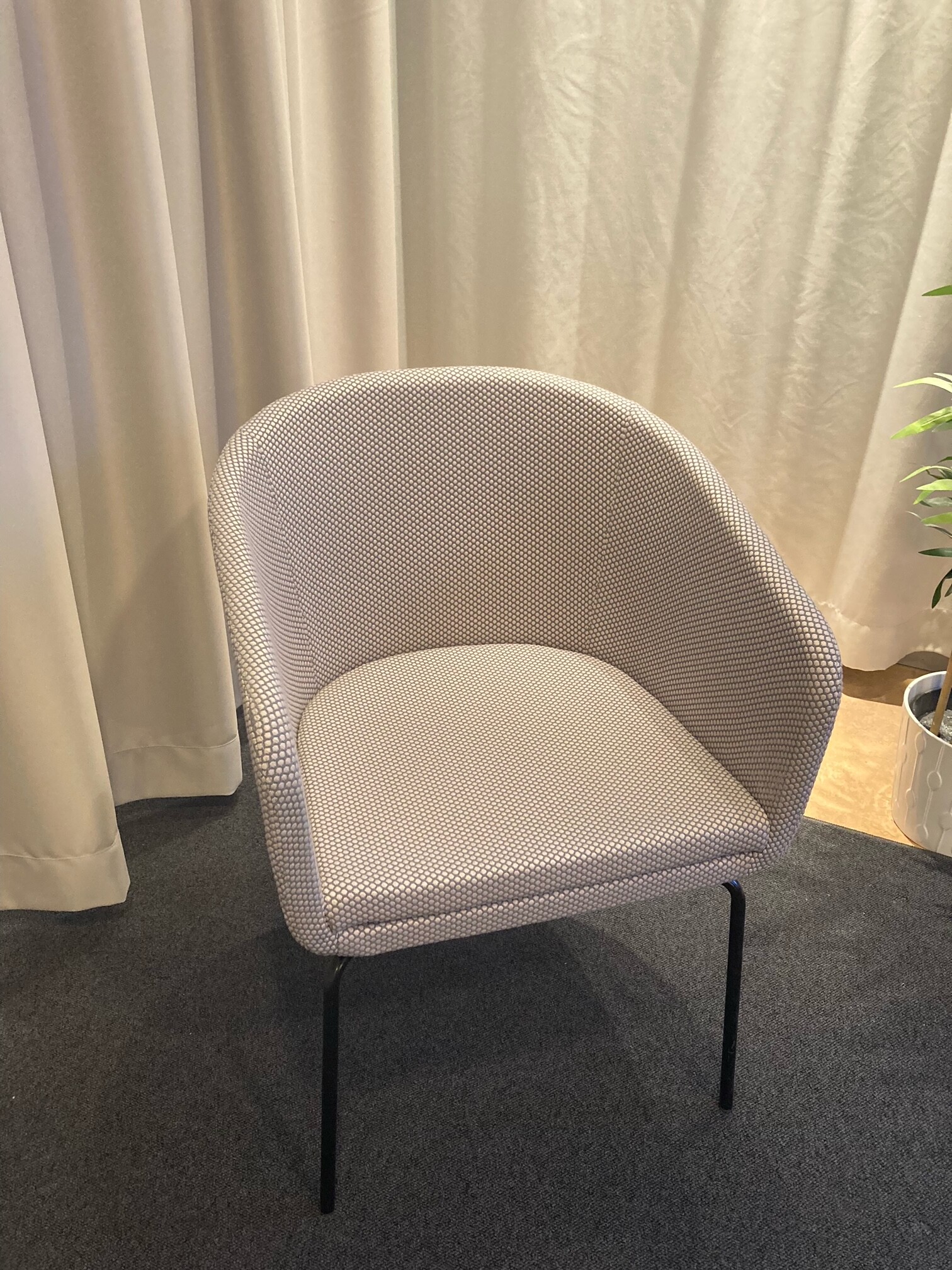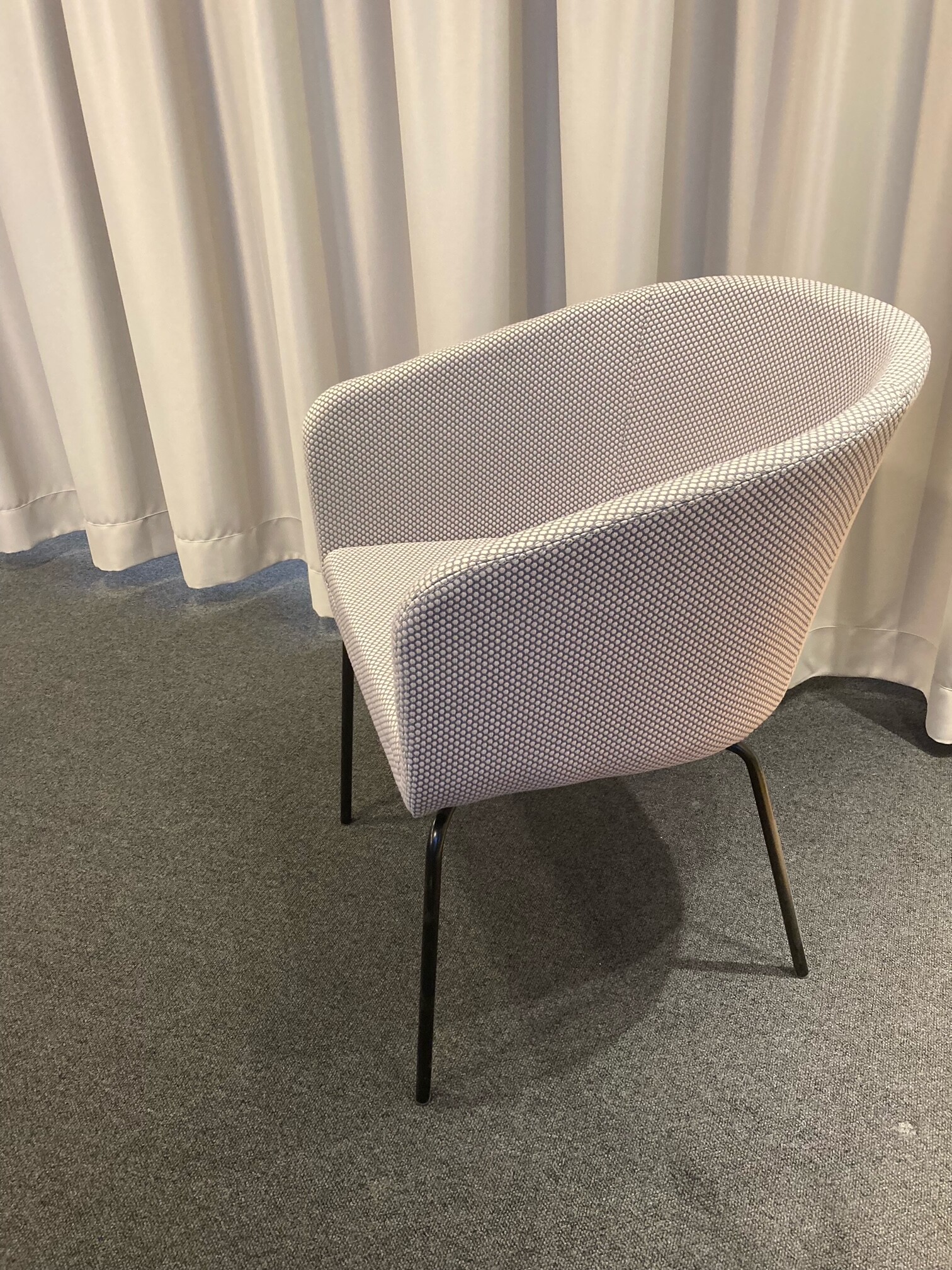 Sits och rygg i tyg. Ben i metall (svart).