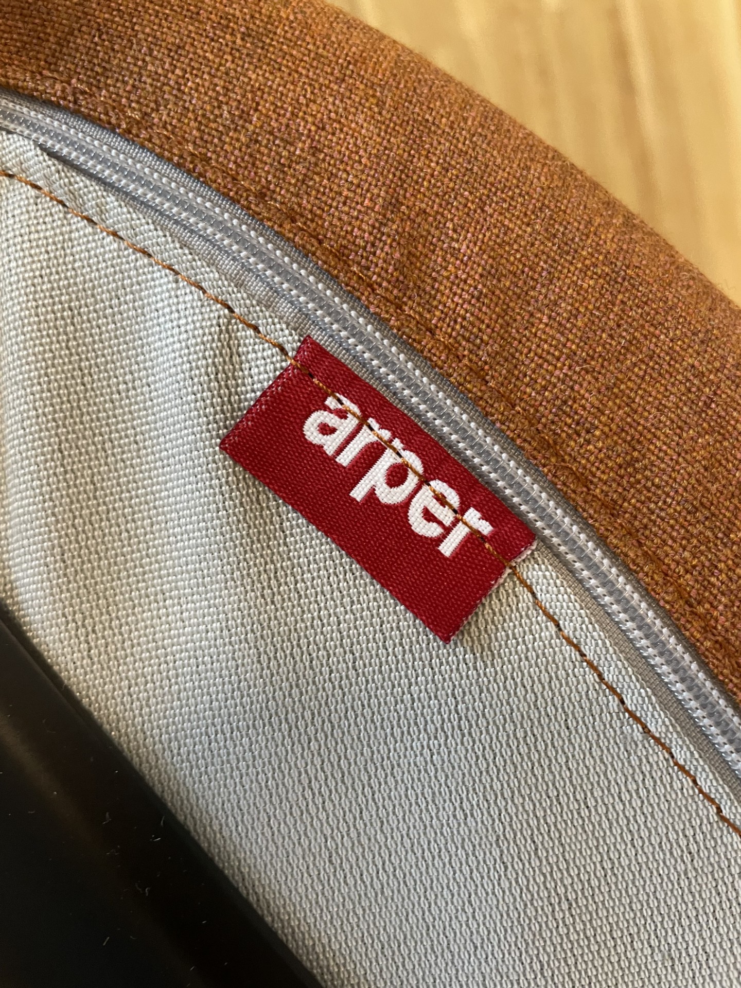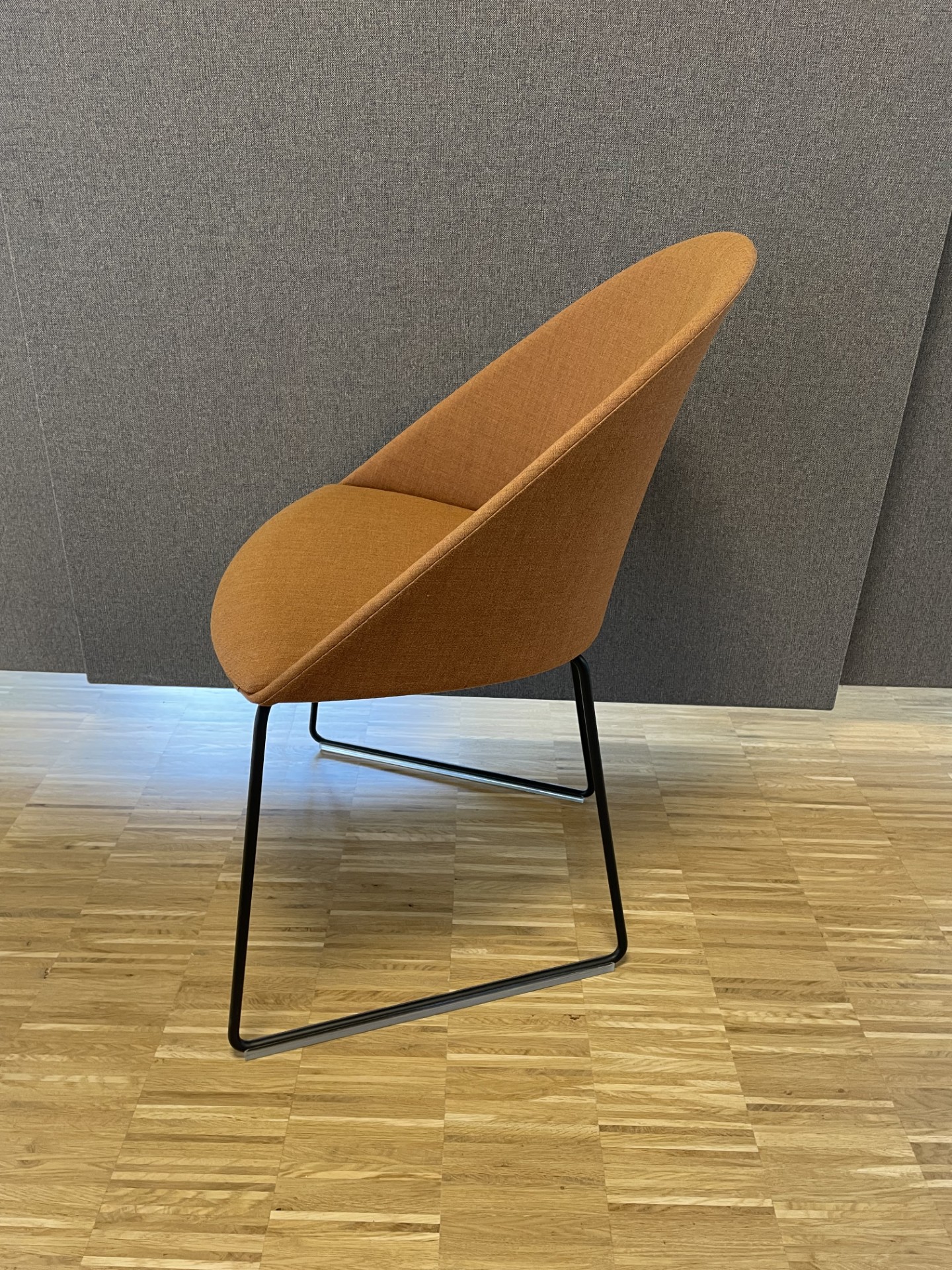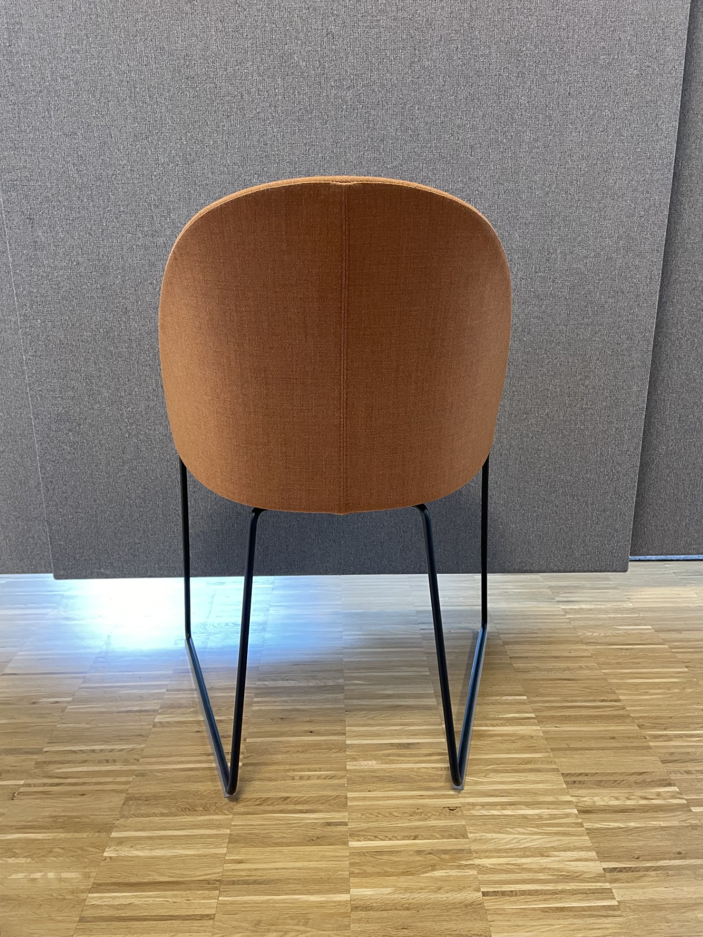 Sits och rygg i tyg (orange). Medstativ i metall (svart).