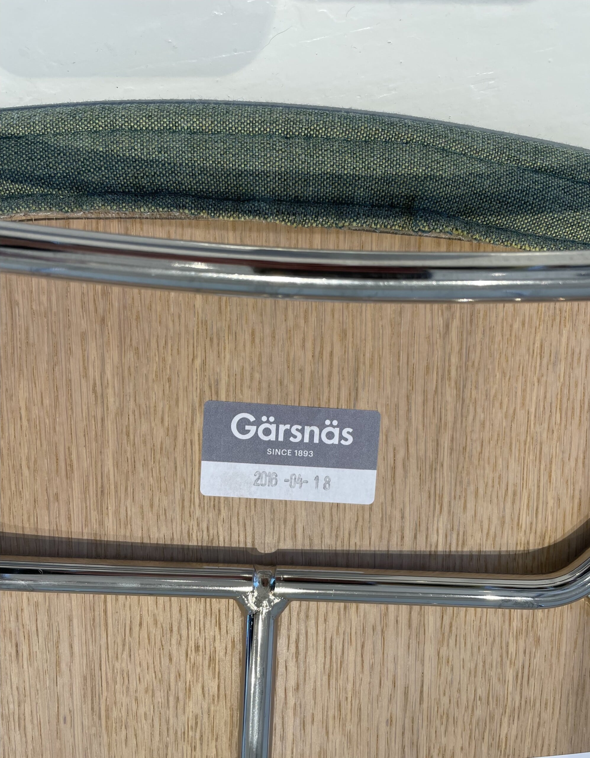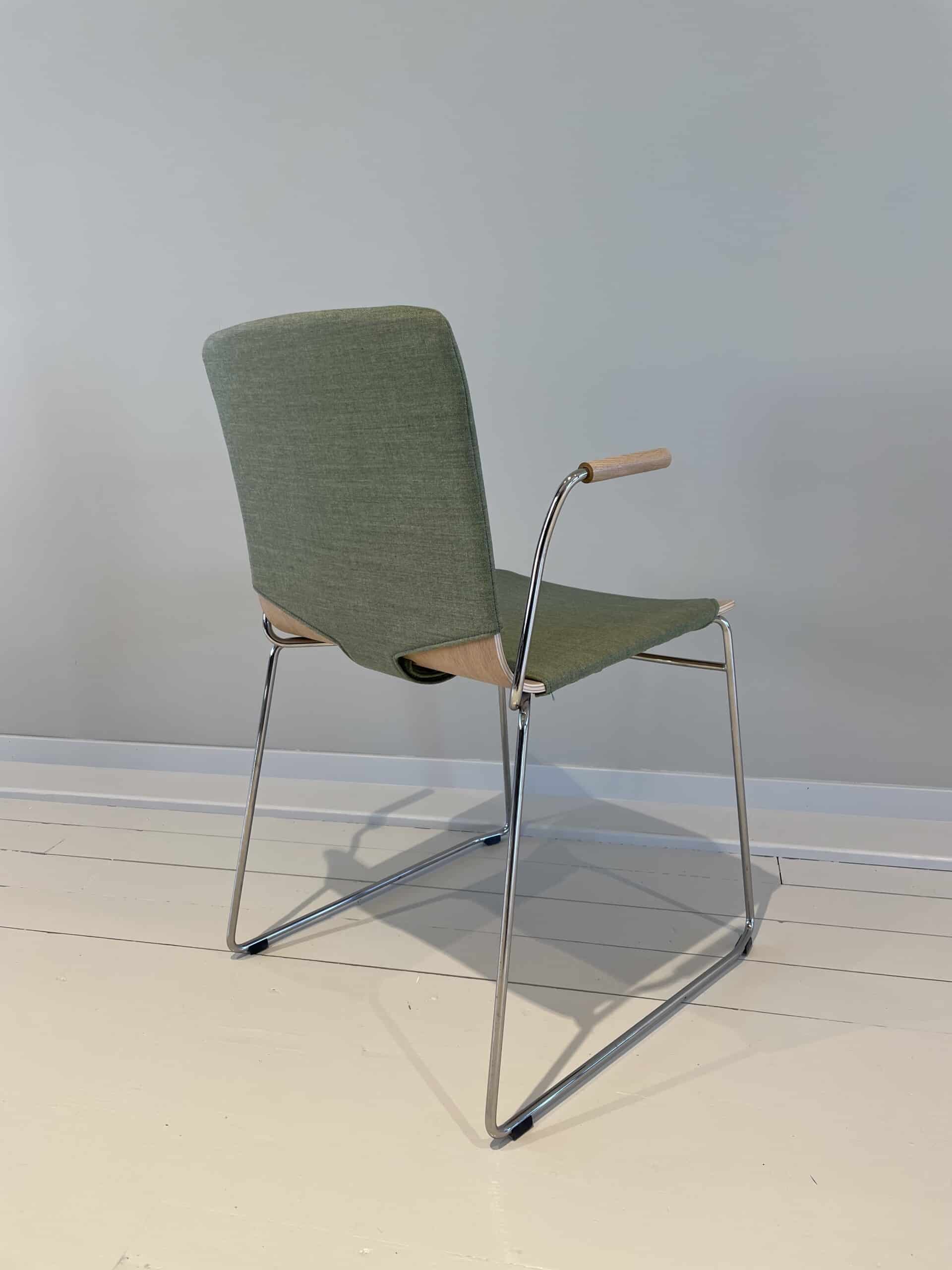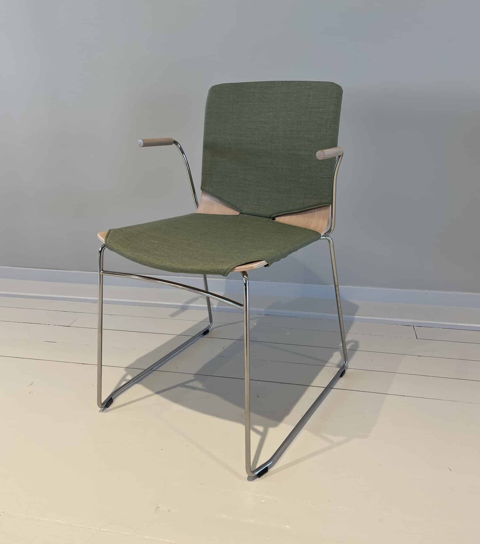Sits och rygg i tyg (grön). Medstativ i metall (krom).