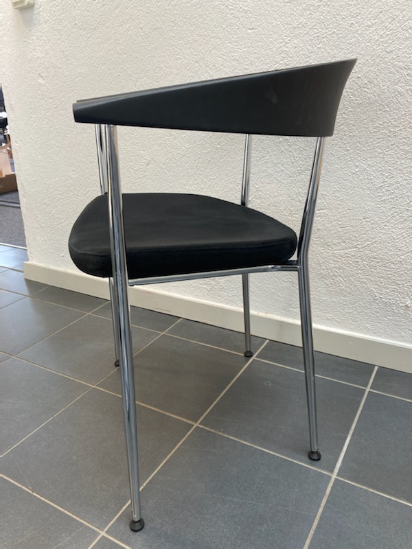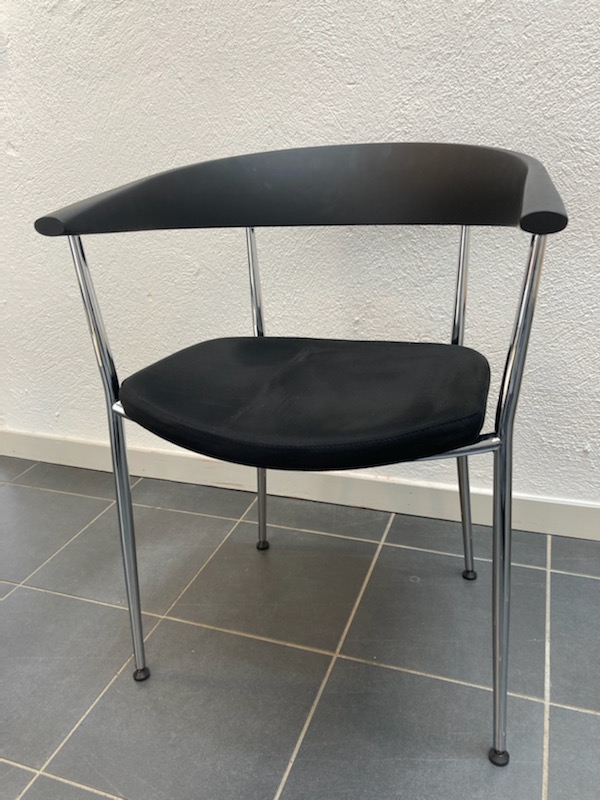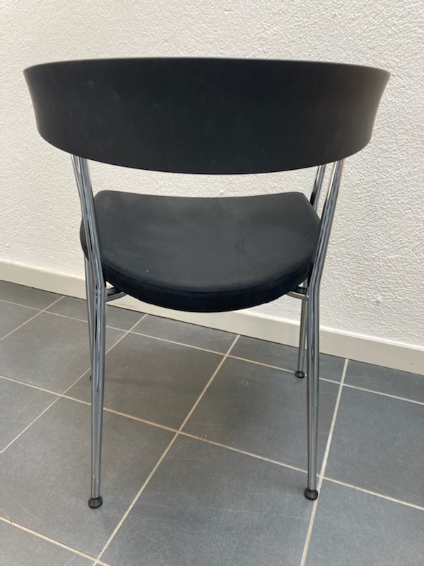 Sits och rygg i tyg (svart). Ben i metall (aluminium).