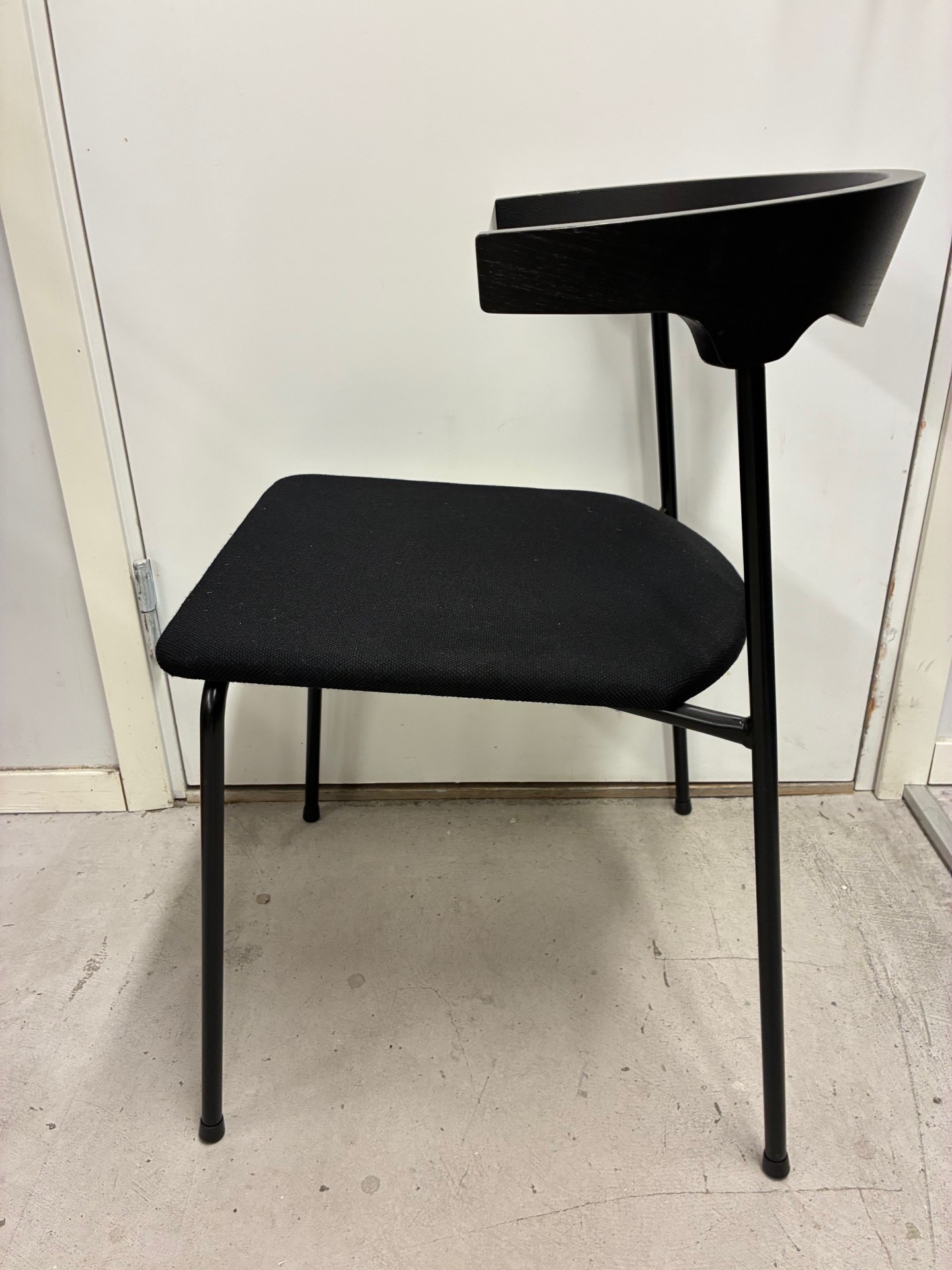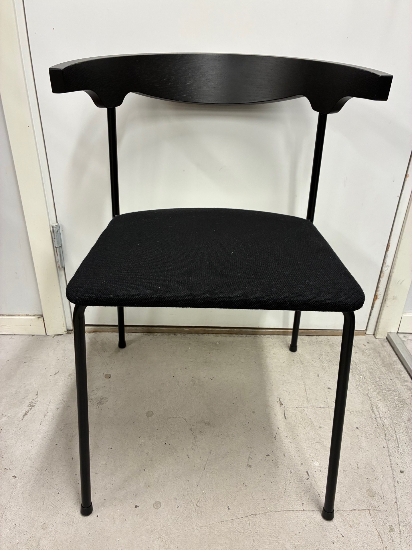 Sits i tyg (svart). Rygg i trä (svart). Ben i metall (svart).