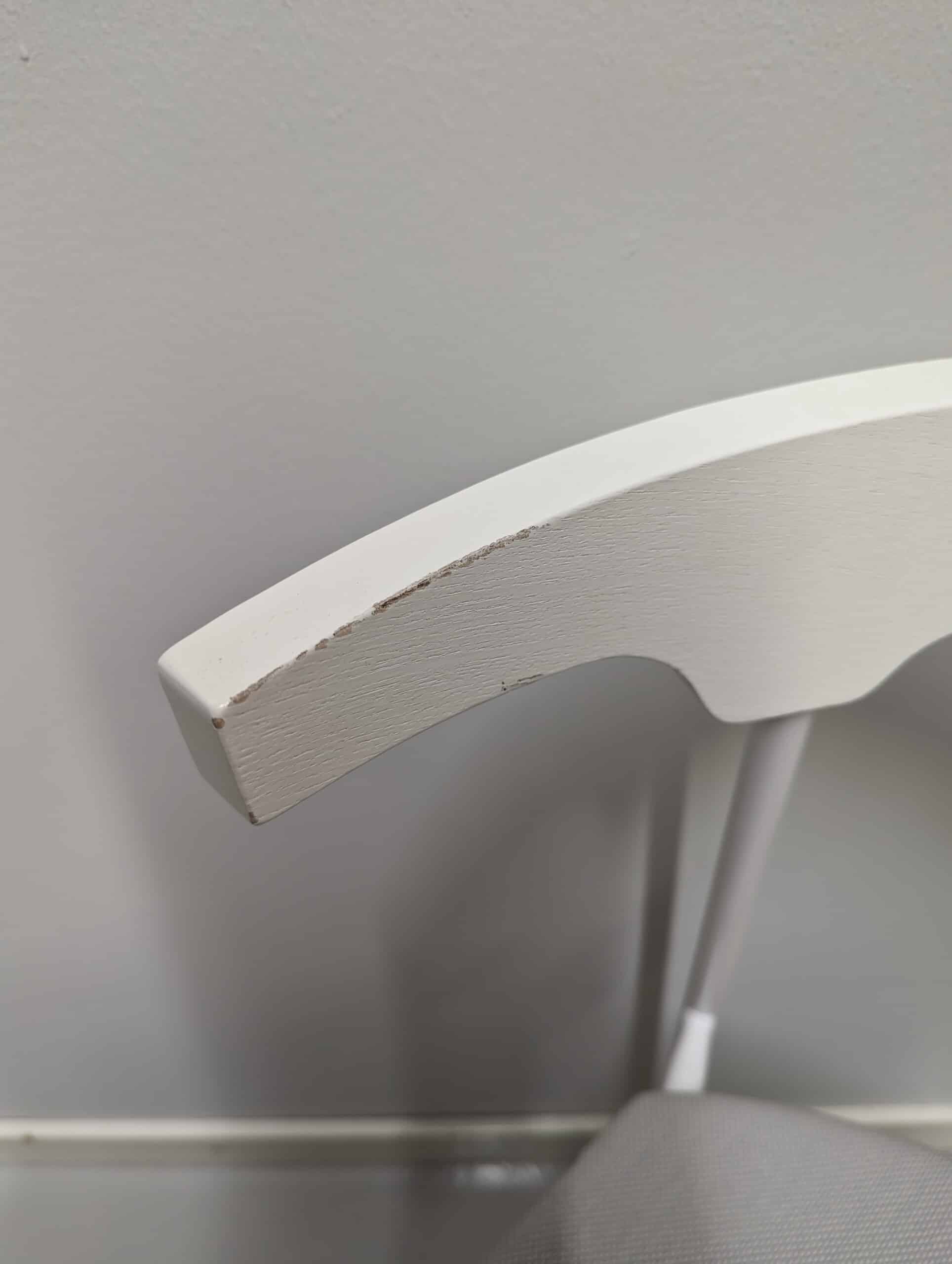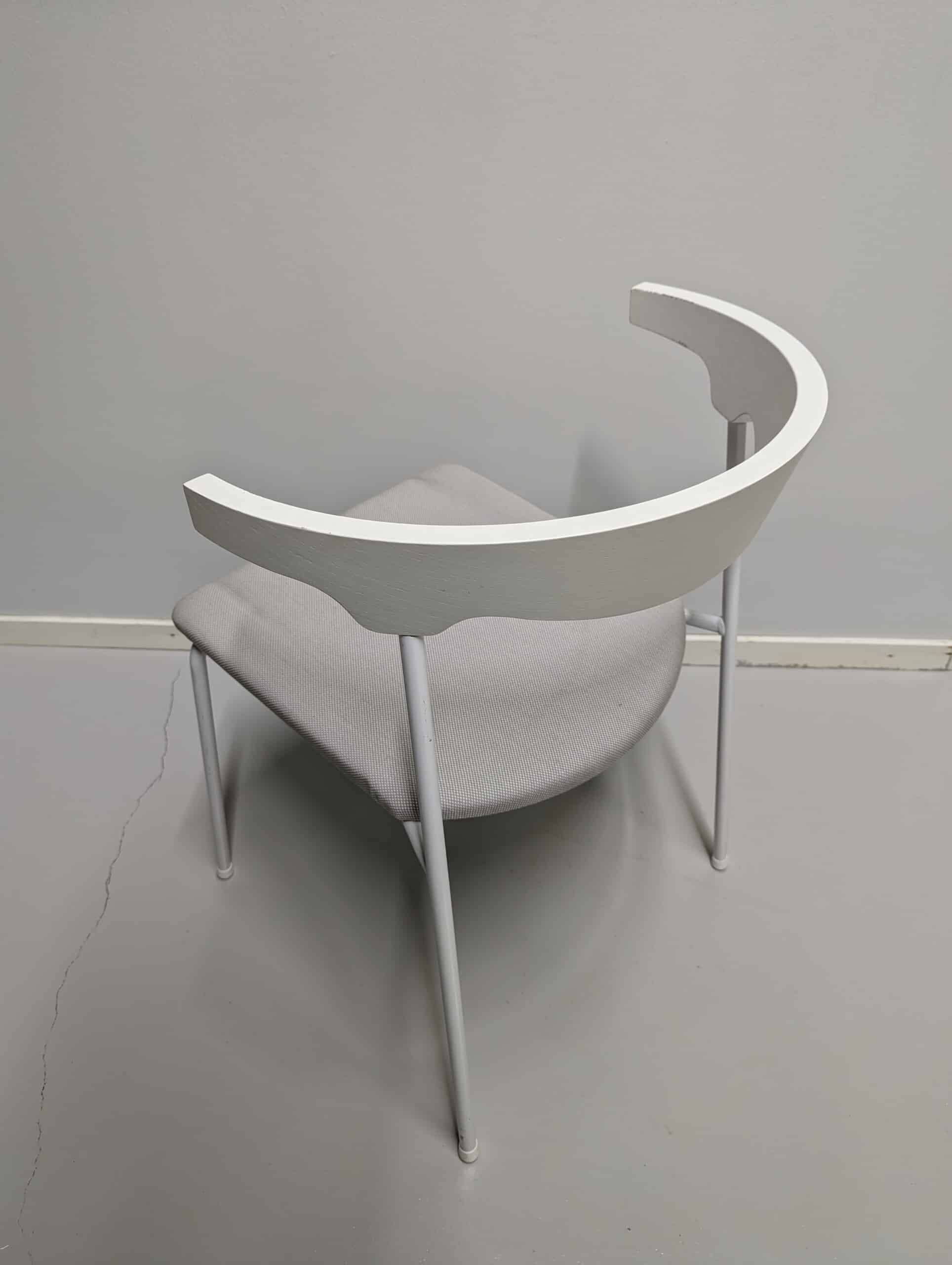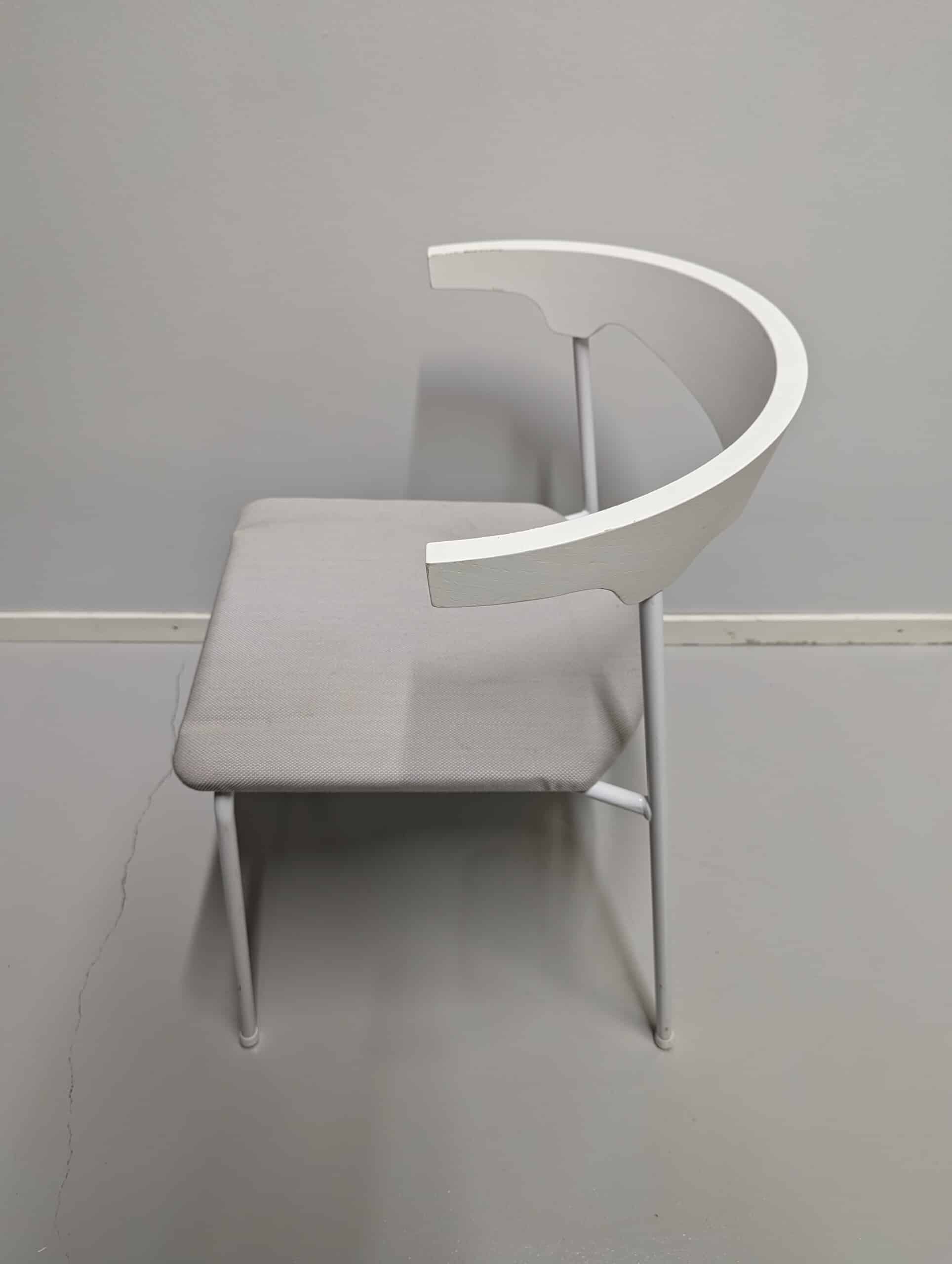 Sits i tyg. Rygg i trä (vit). Ben i metall (vit).