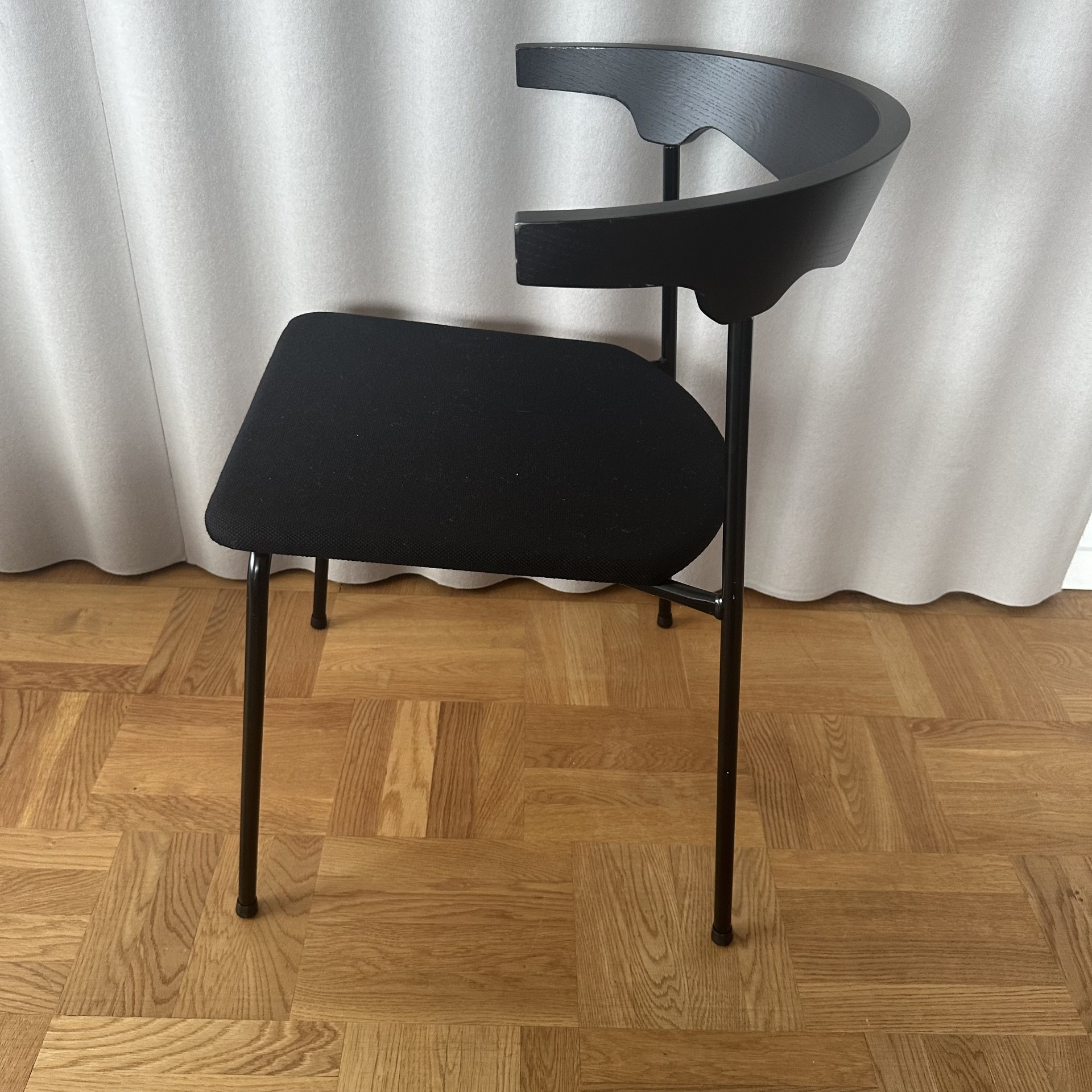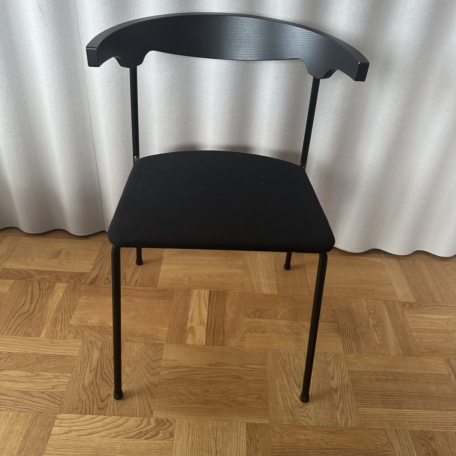 Sits i tyg (svart). Rygg i trä (svart). Ben i metall (svart).