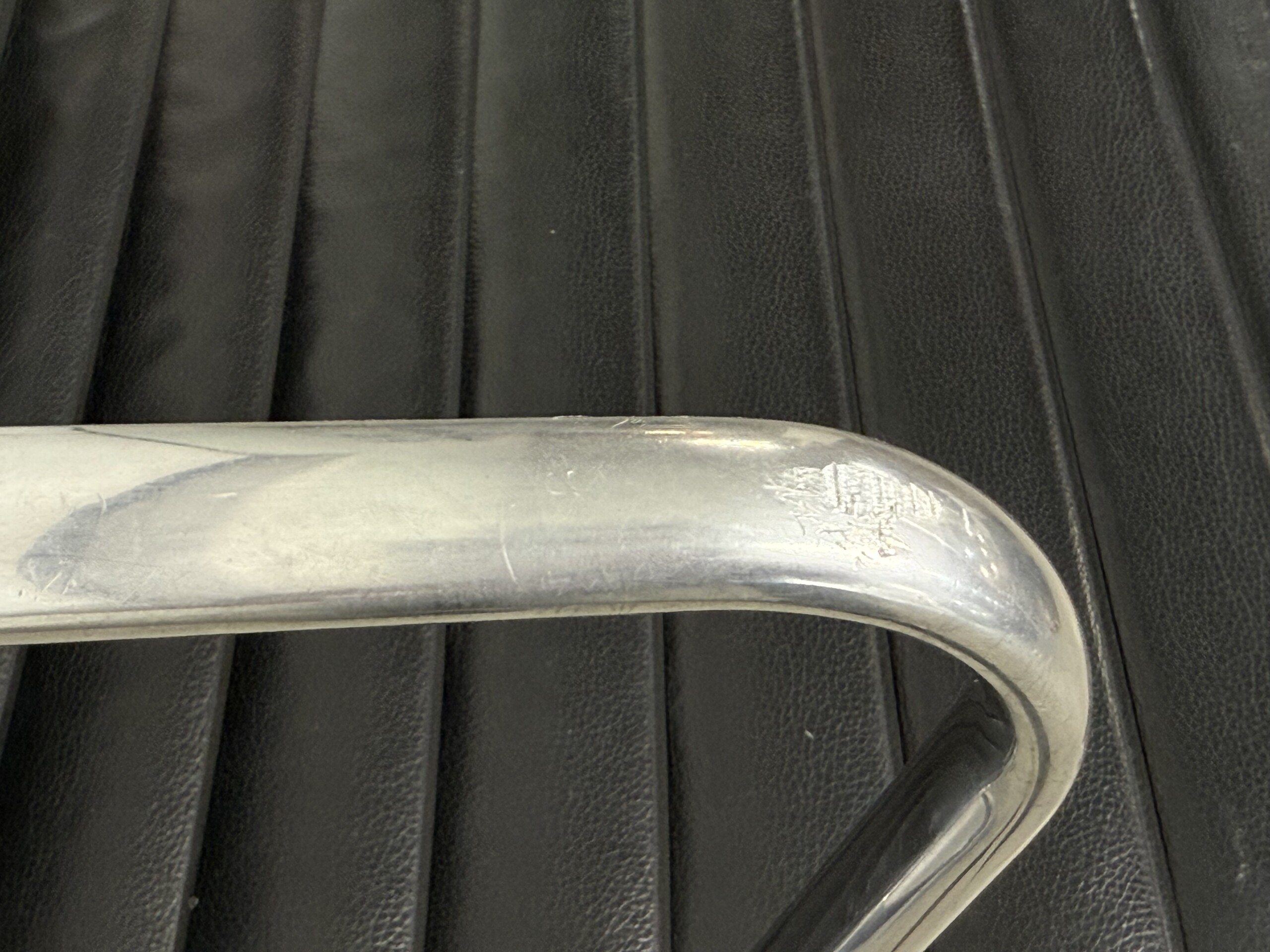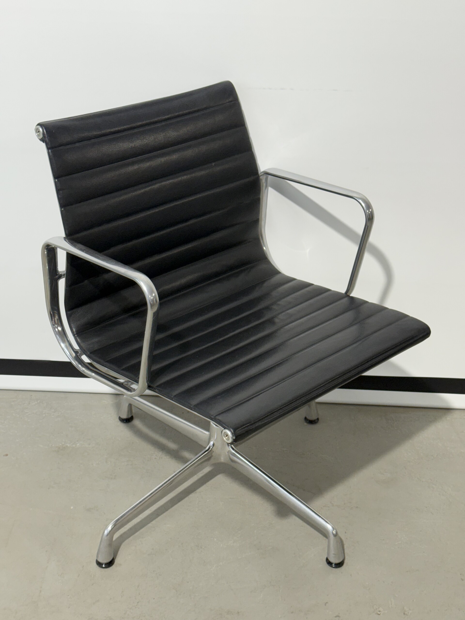 Sits och rygg i läder (svart). Kryssfot i metall (aluminium).