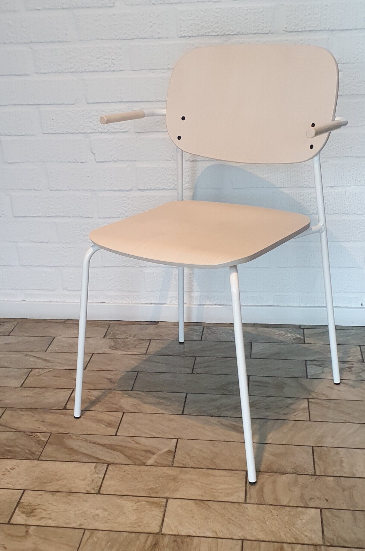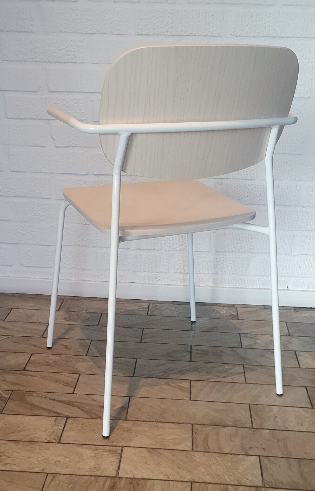 Sits och rygg i trä (ask). Ben i metall (vit).