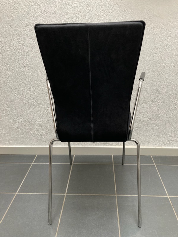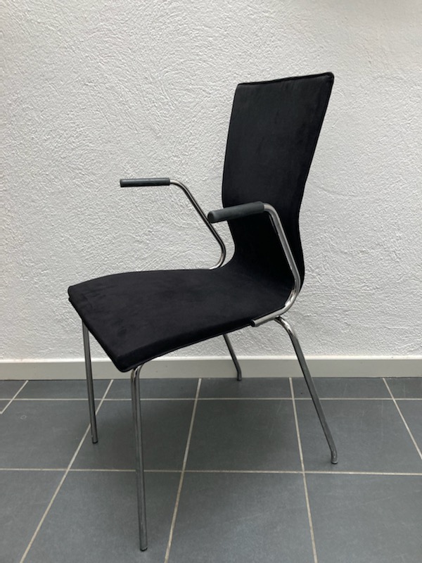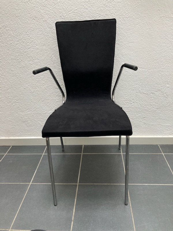 Sits och rygg i tyg (svart). Ben i metall (aluminium).