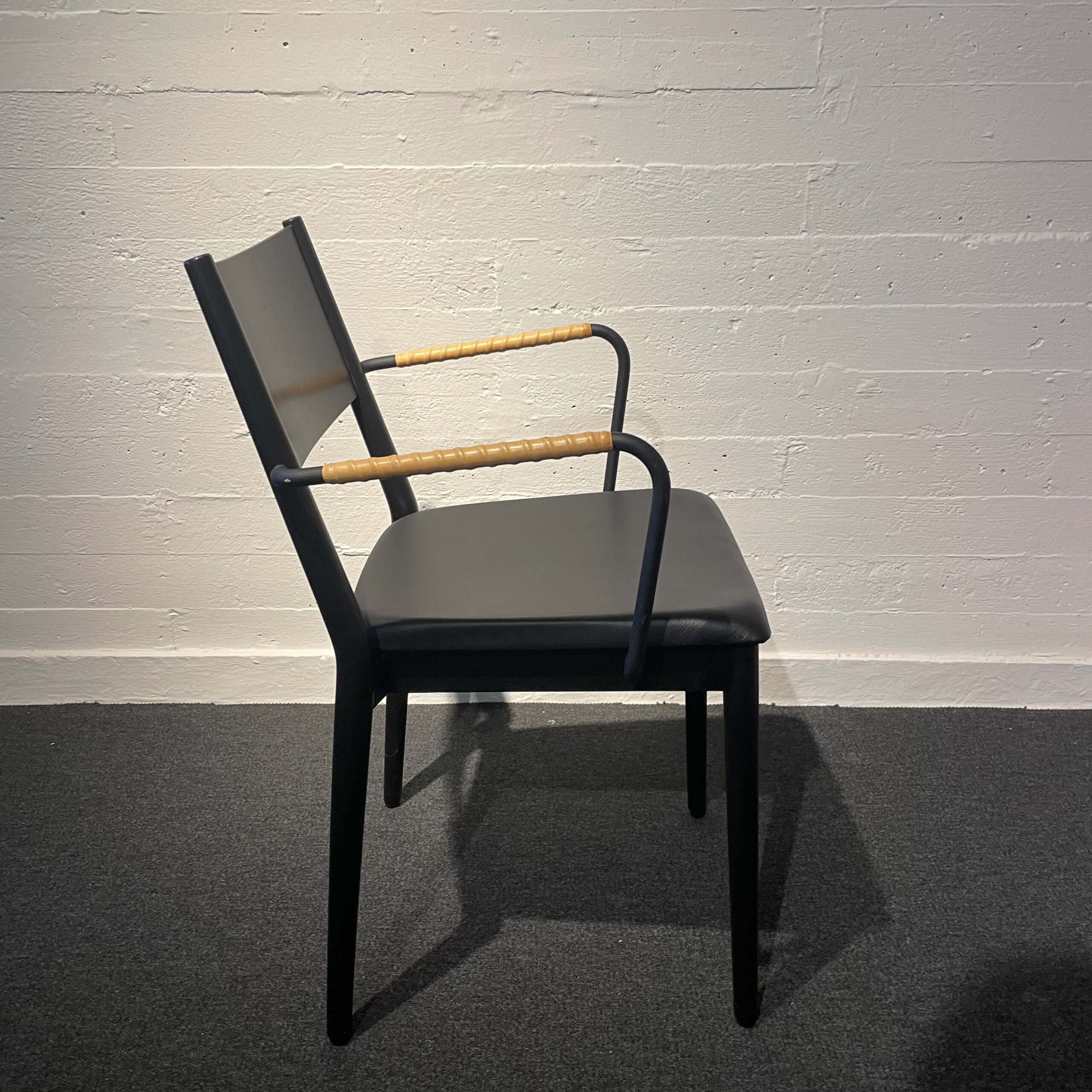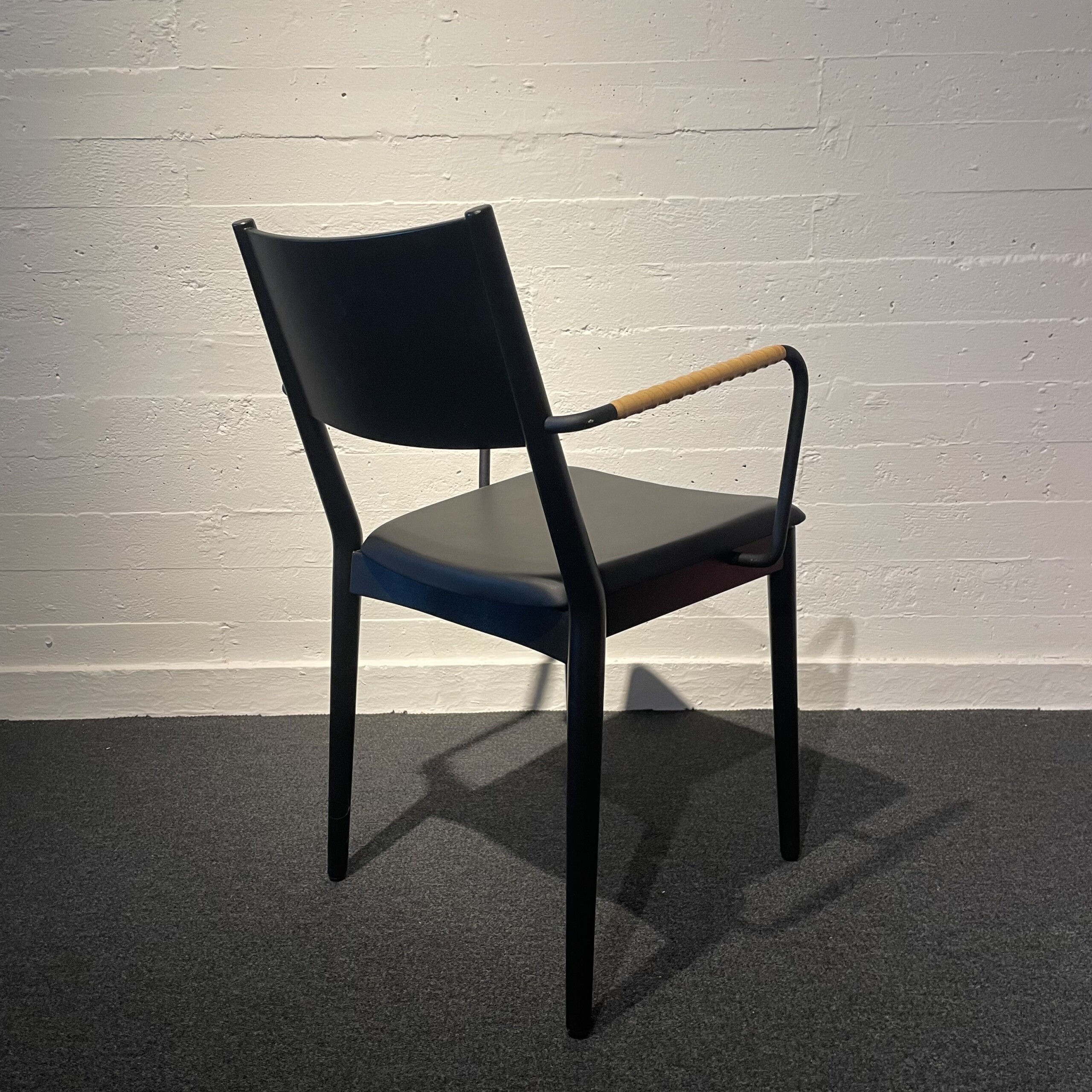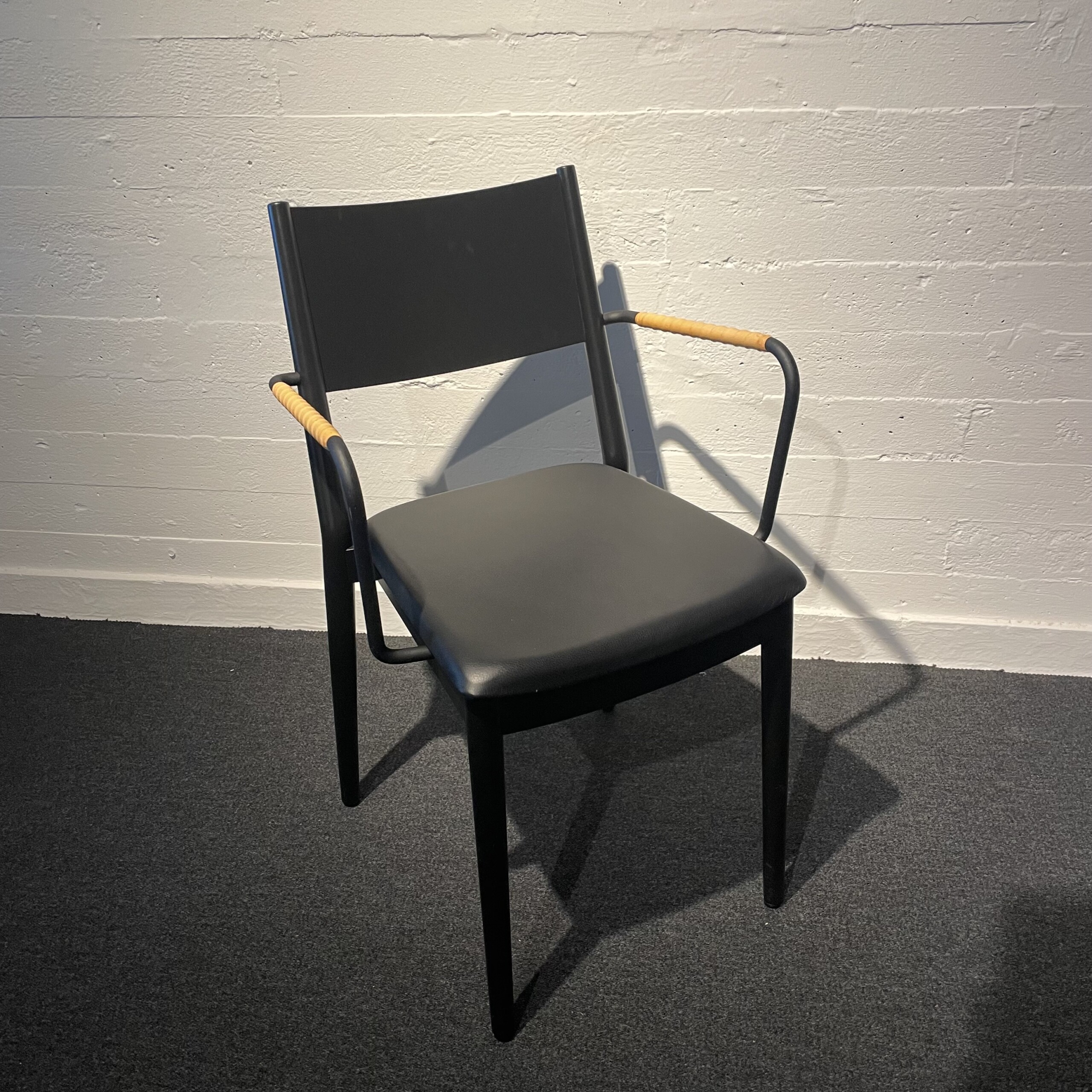 Sits i läder (svart). Rygg i trä (svart). Ben i trä (svart).