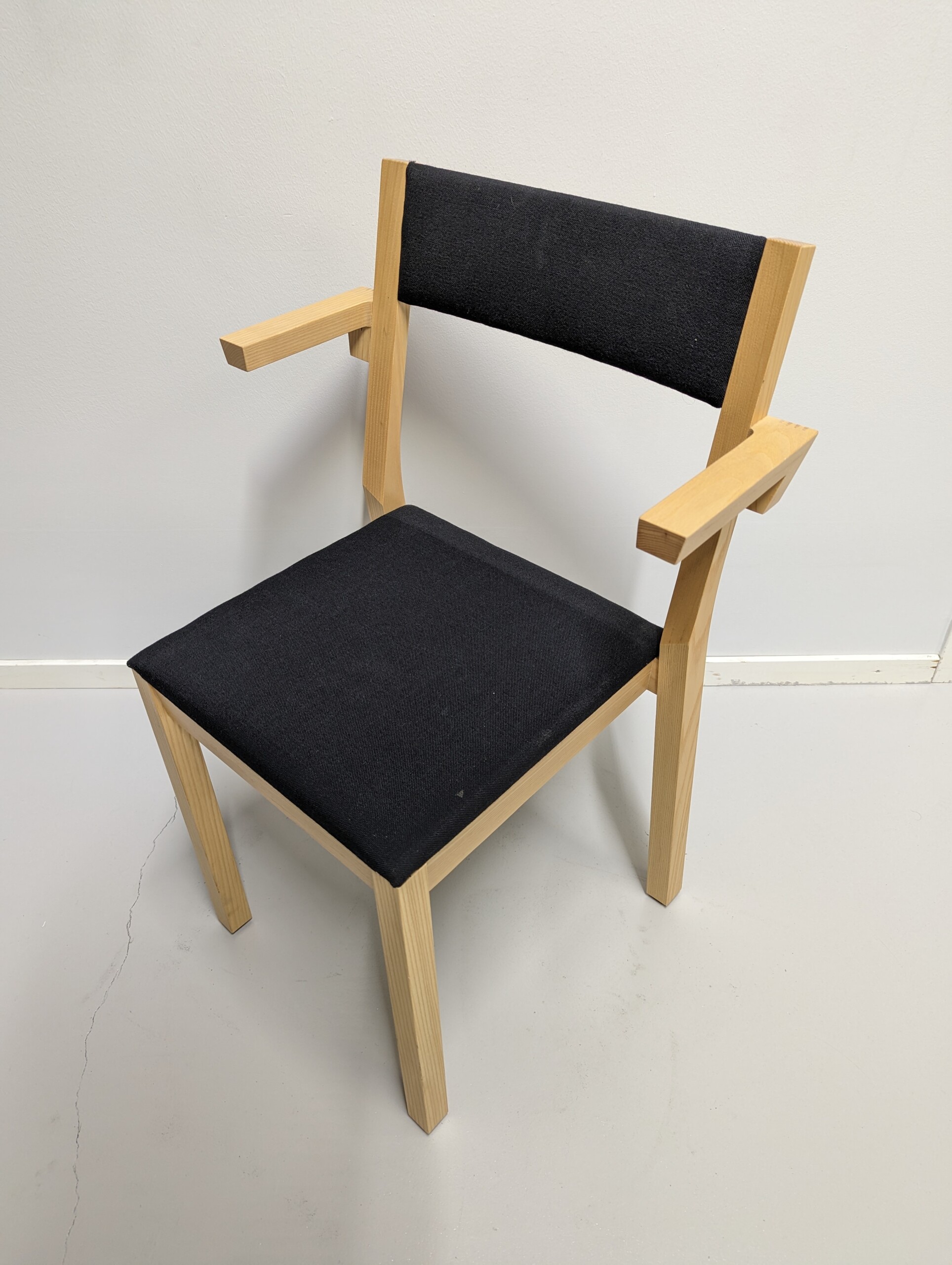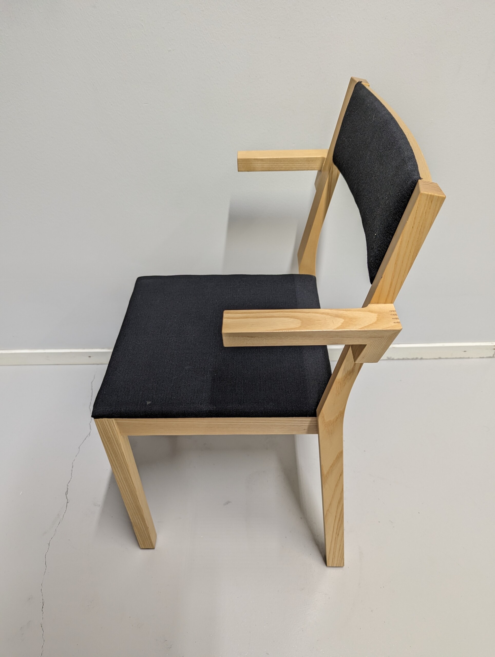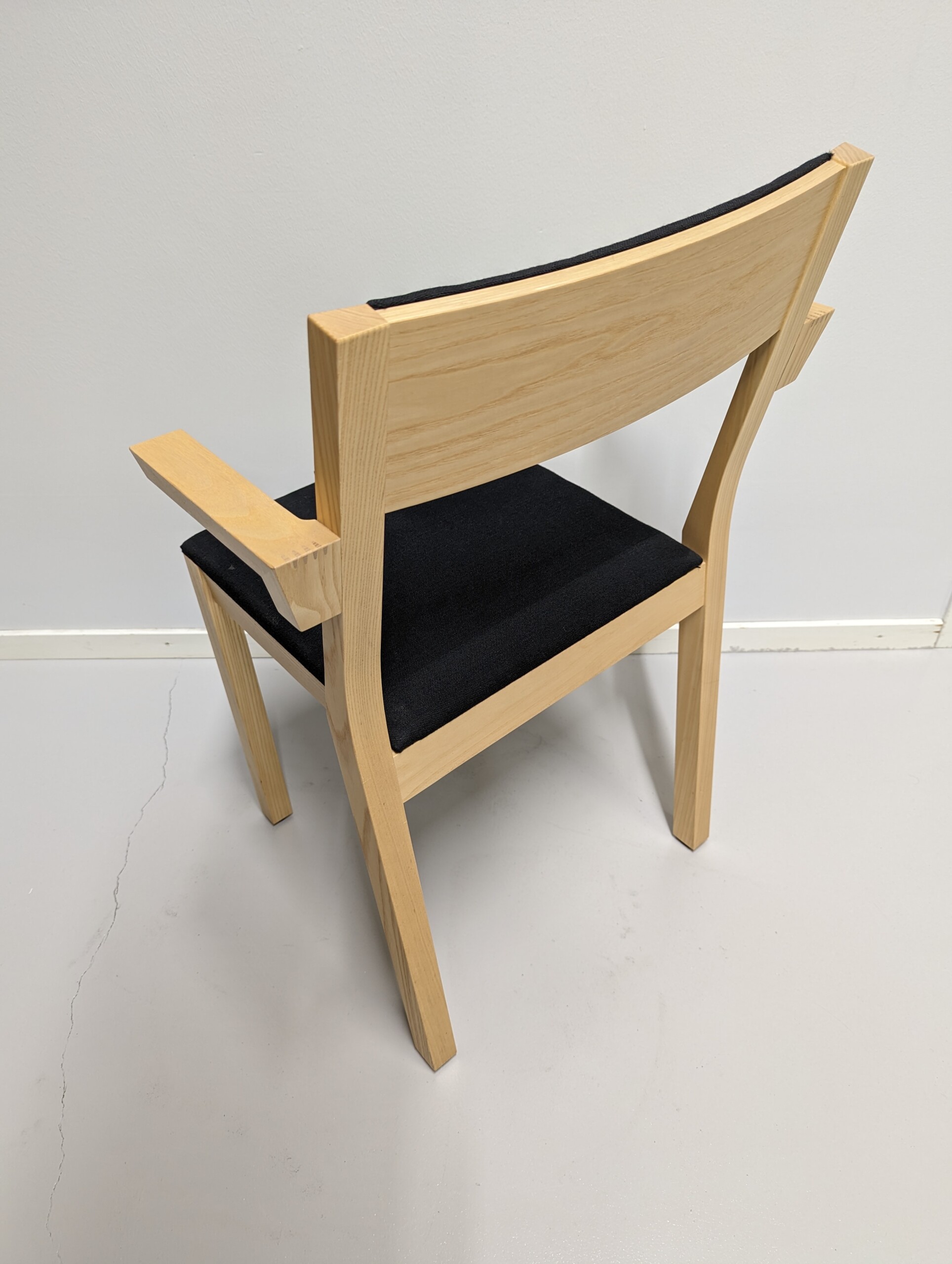 Sits och rygg i tyg (svart). Ben i trä (ask).