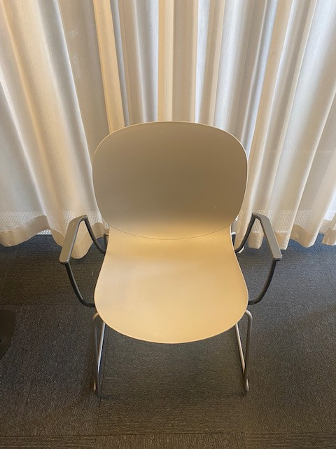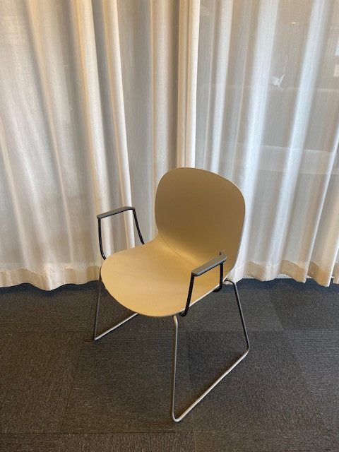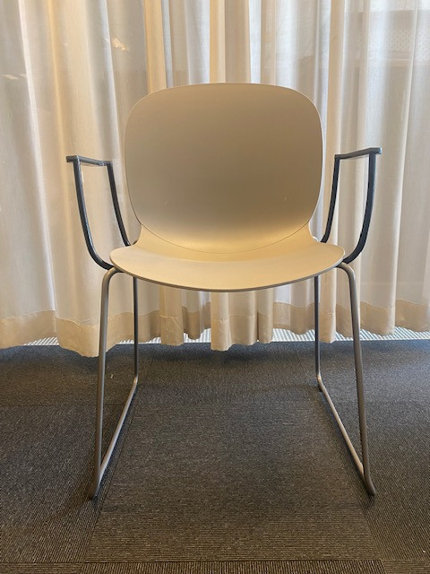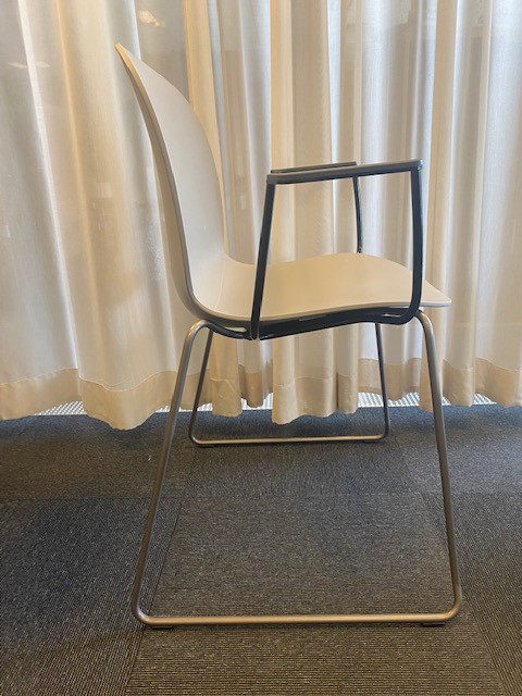 Sits och rygg i plast (grå). Medstativ i metall (svart).