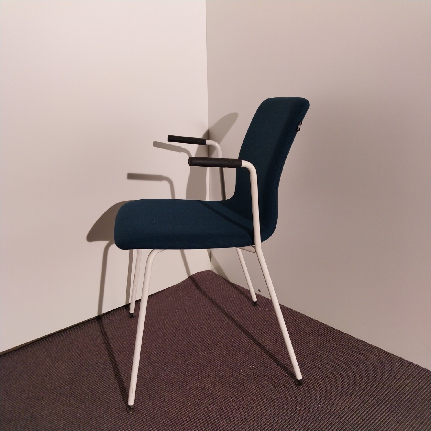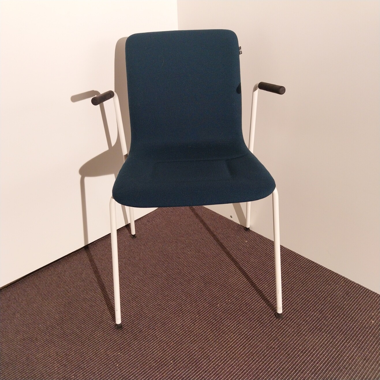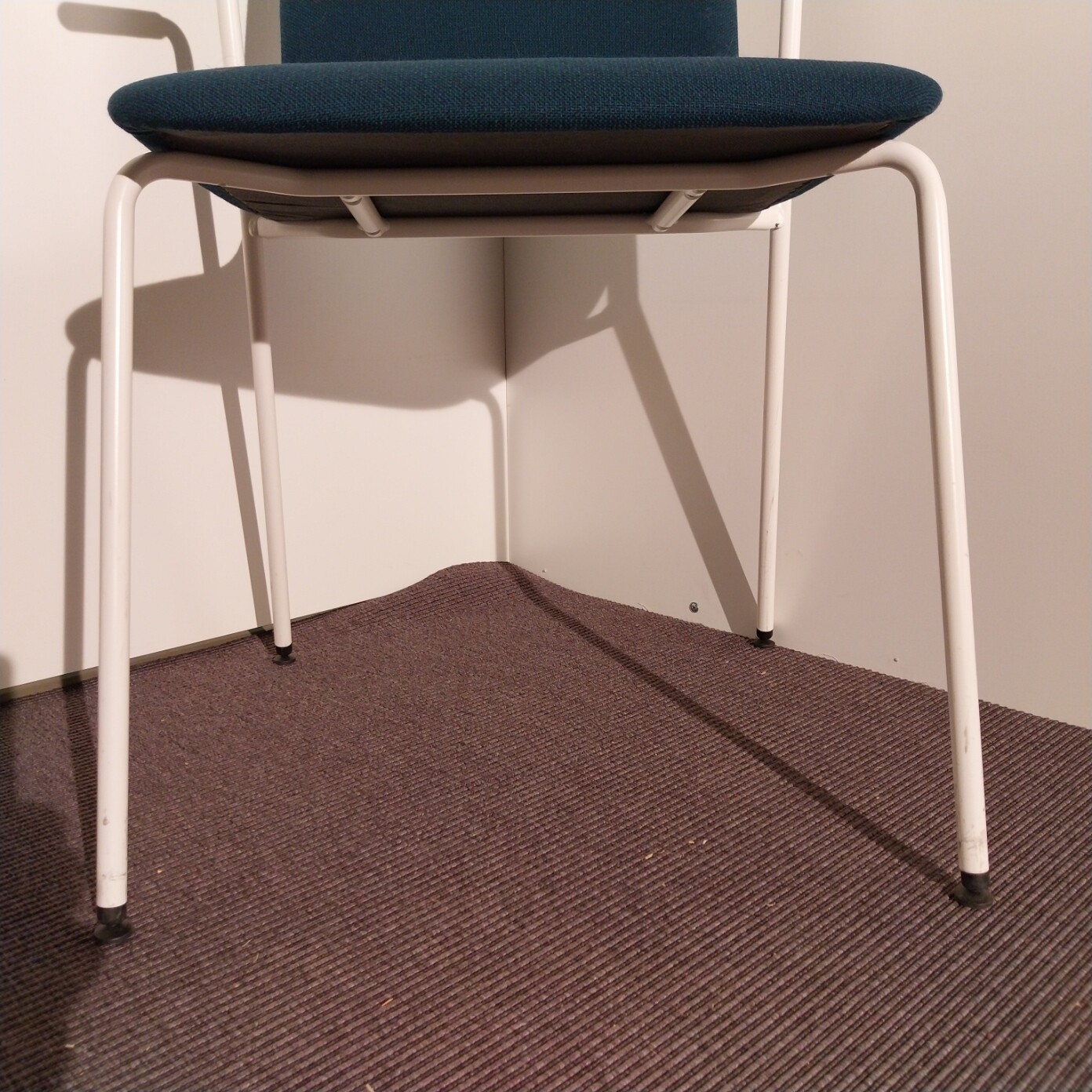 Sits och rygg i tyg. Ben i metall (vit).