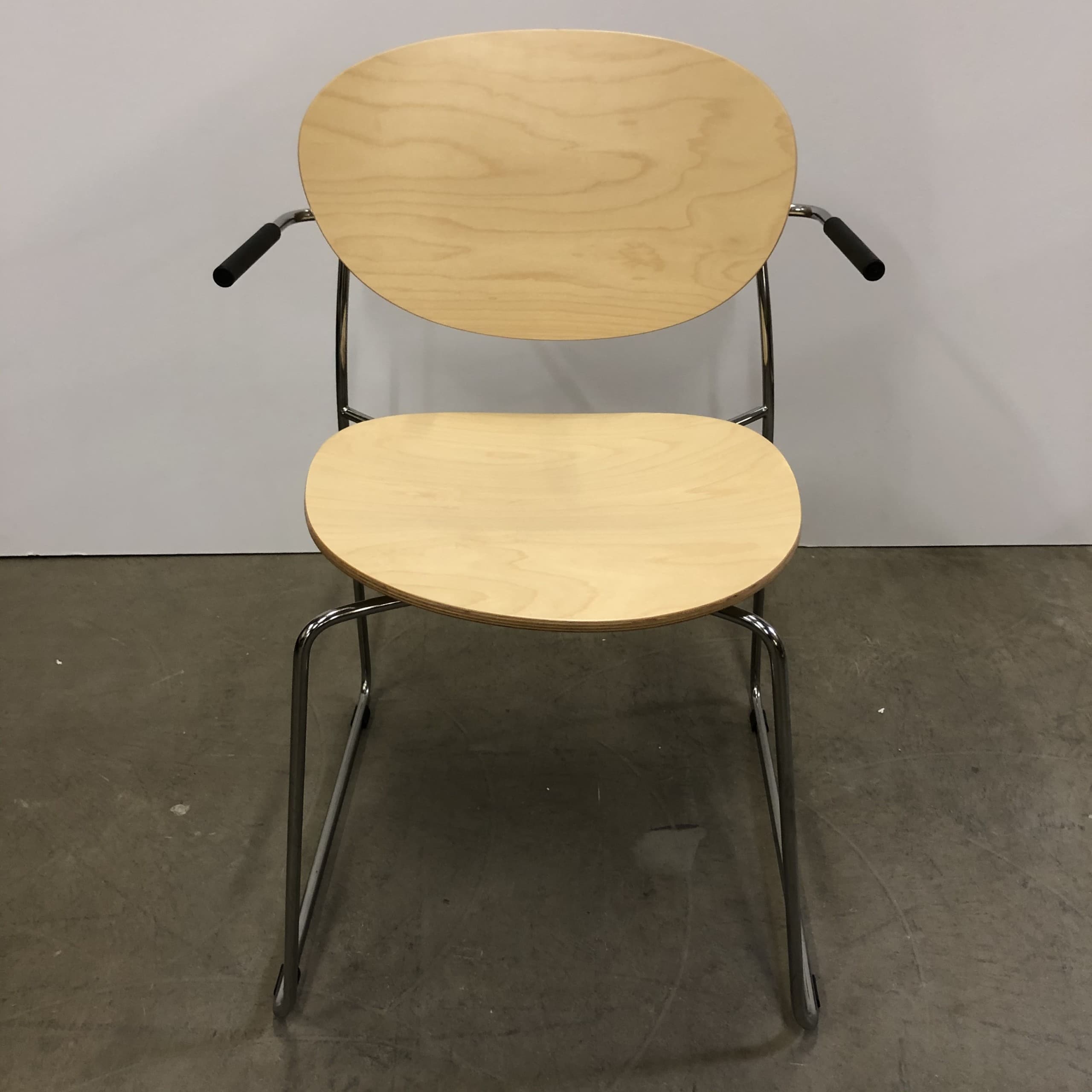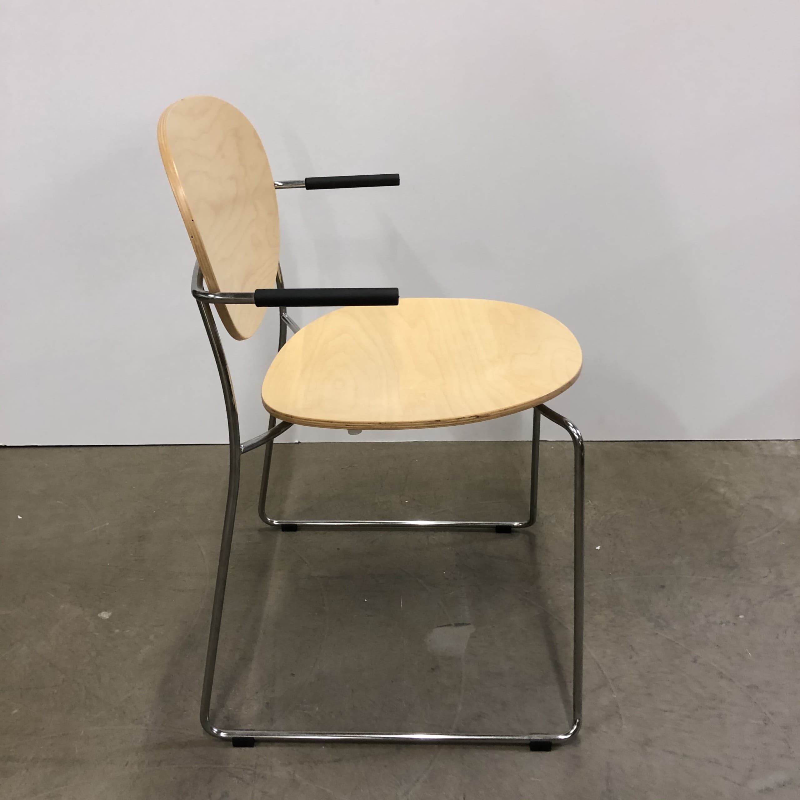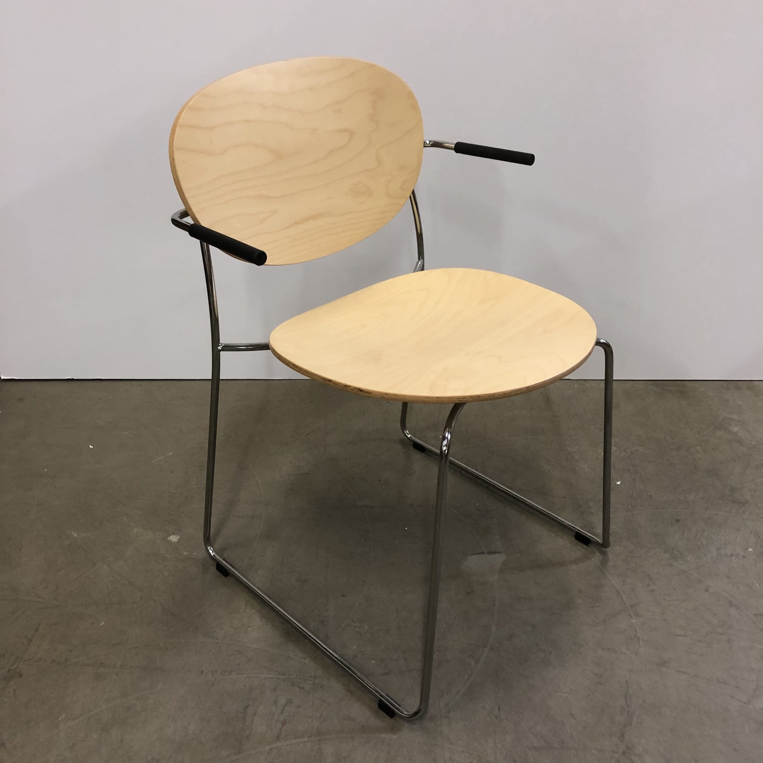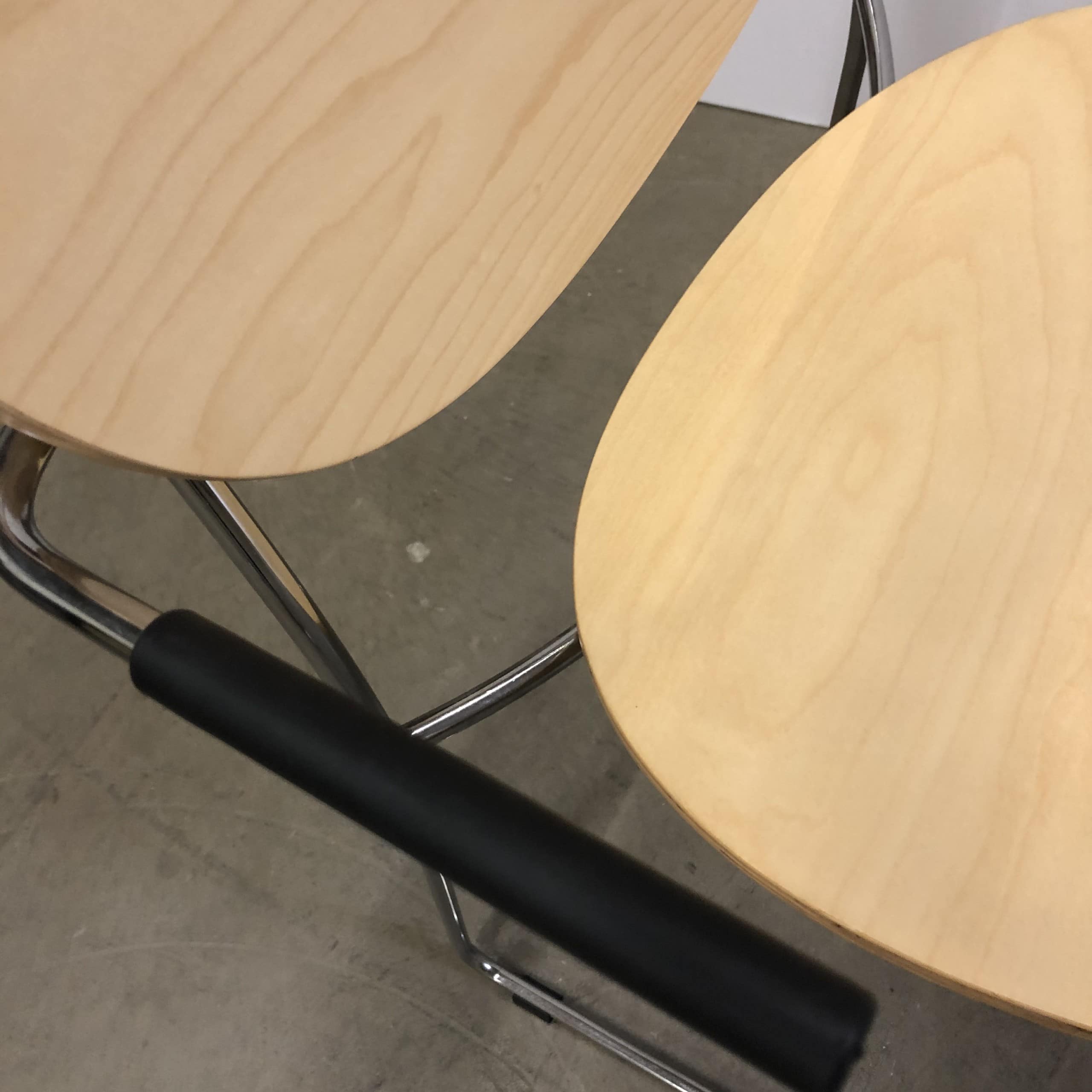 Sits och rygg i trä (björk). Medstativ i metall (krom).