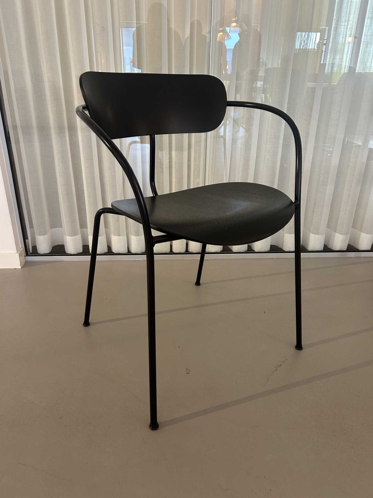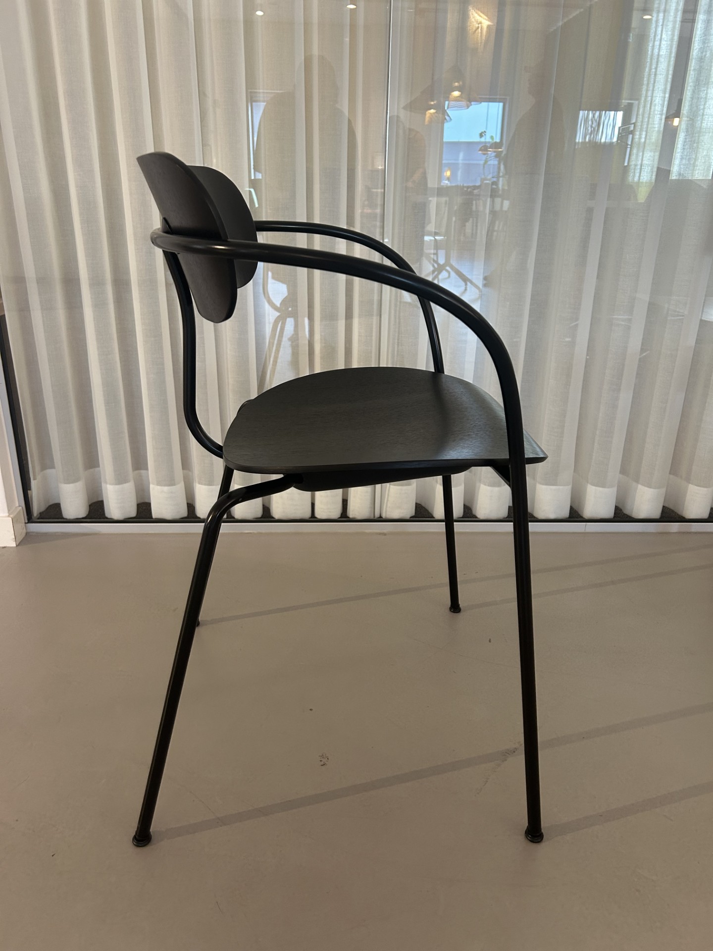 Sits och rygg i trä (svart). Ben i metall (svart).