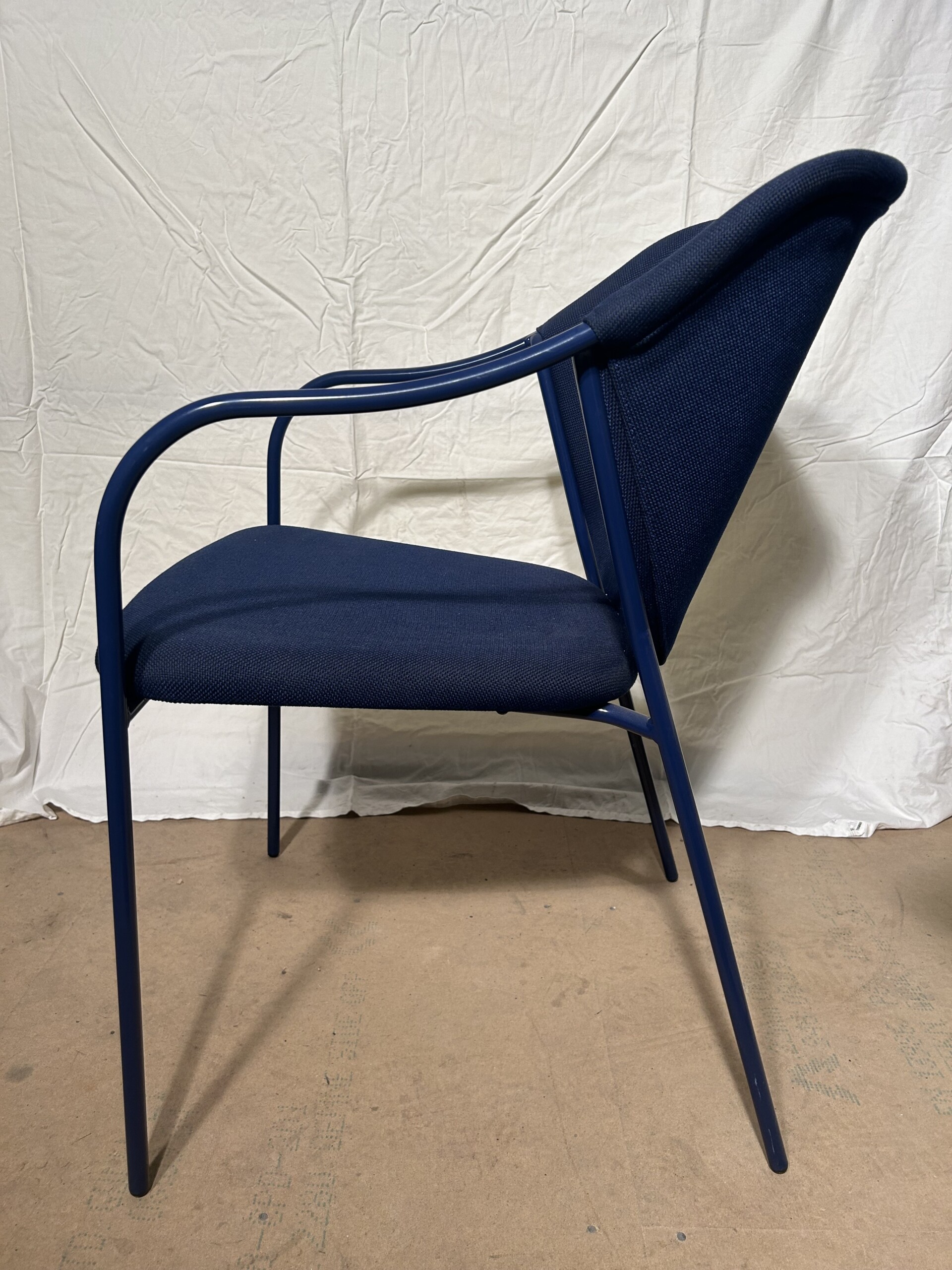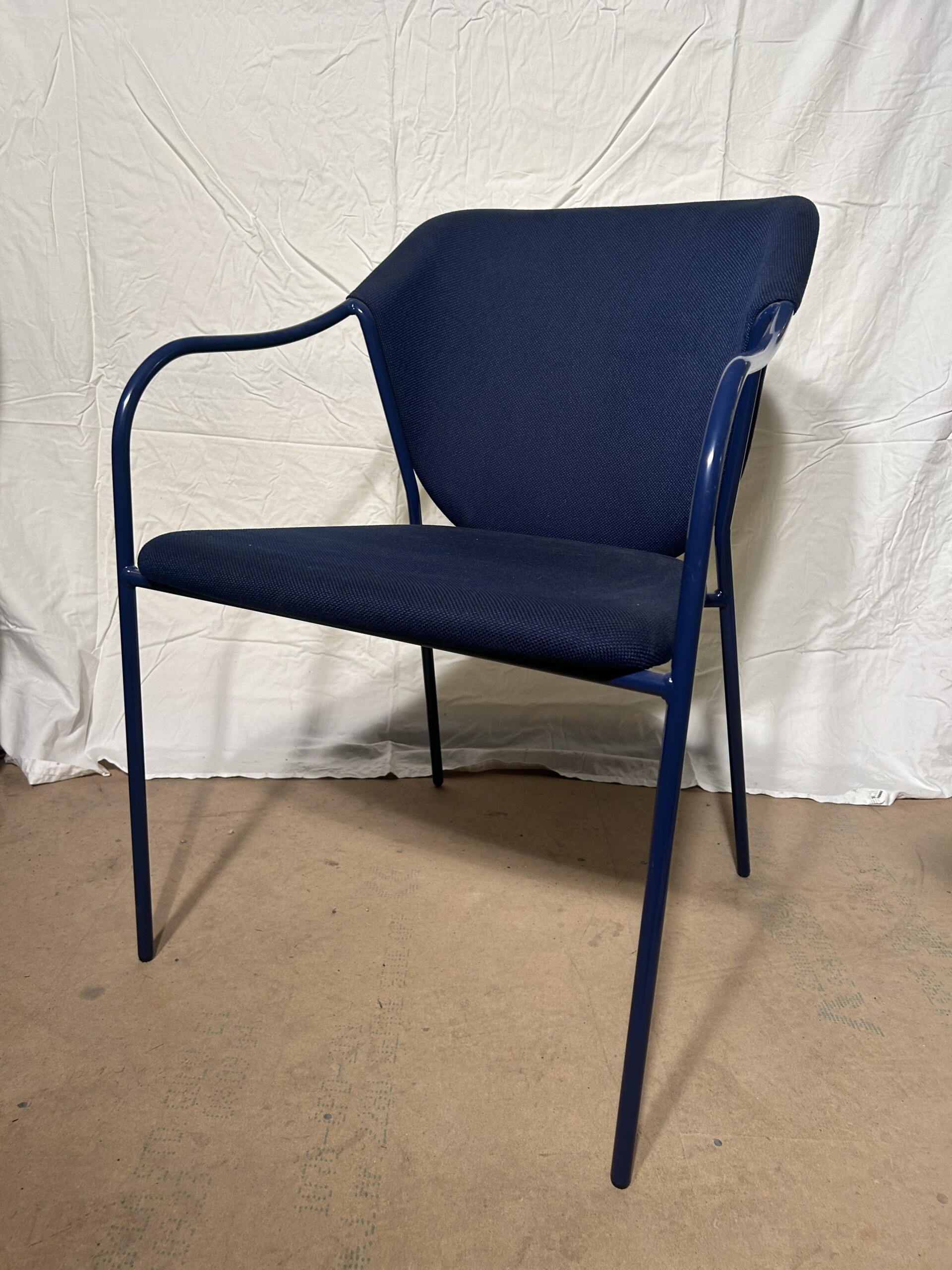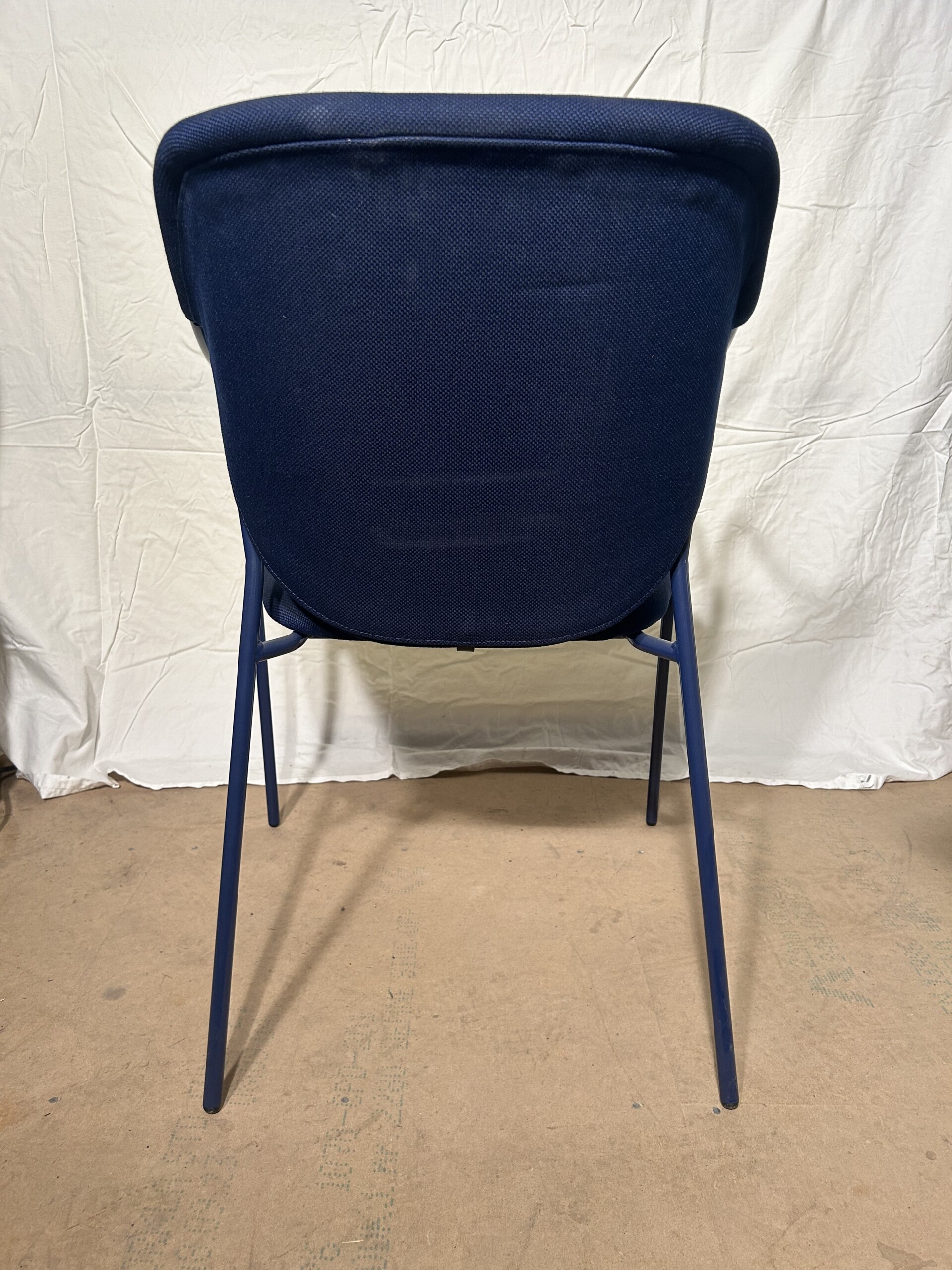 Sits och rygg i tyg (blå). Ben i metall (blå).