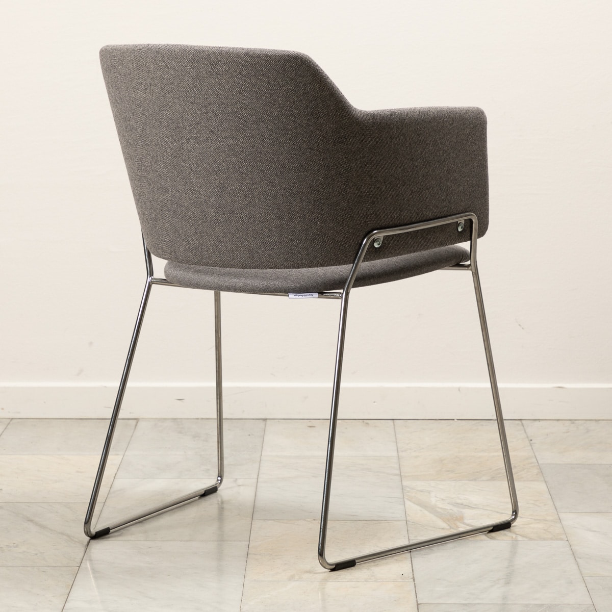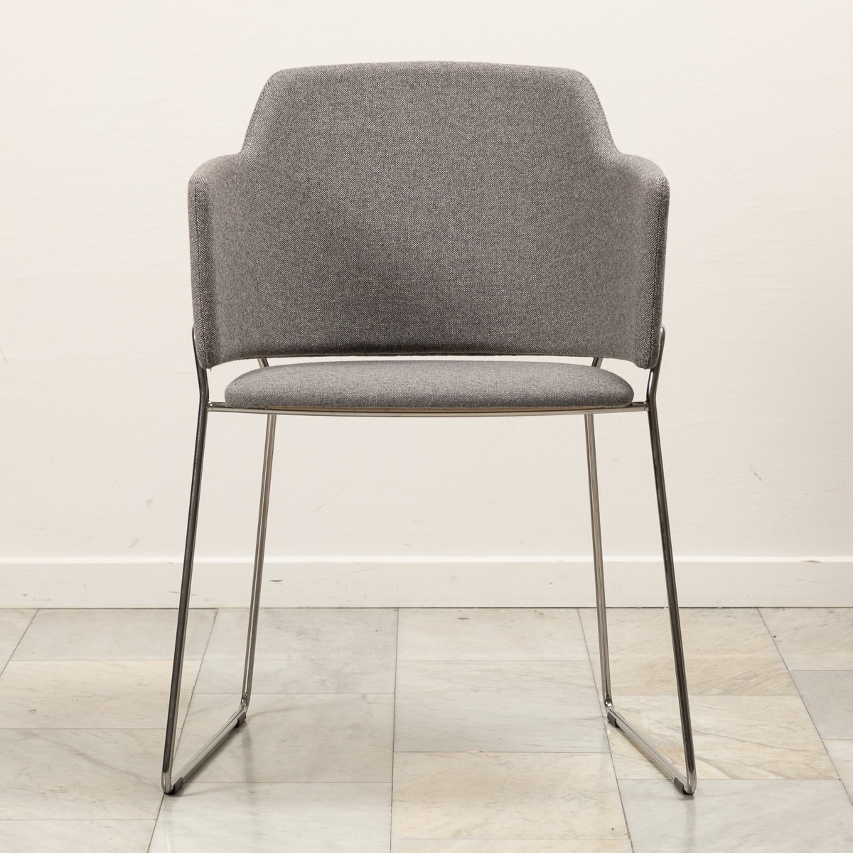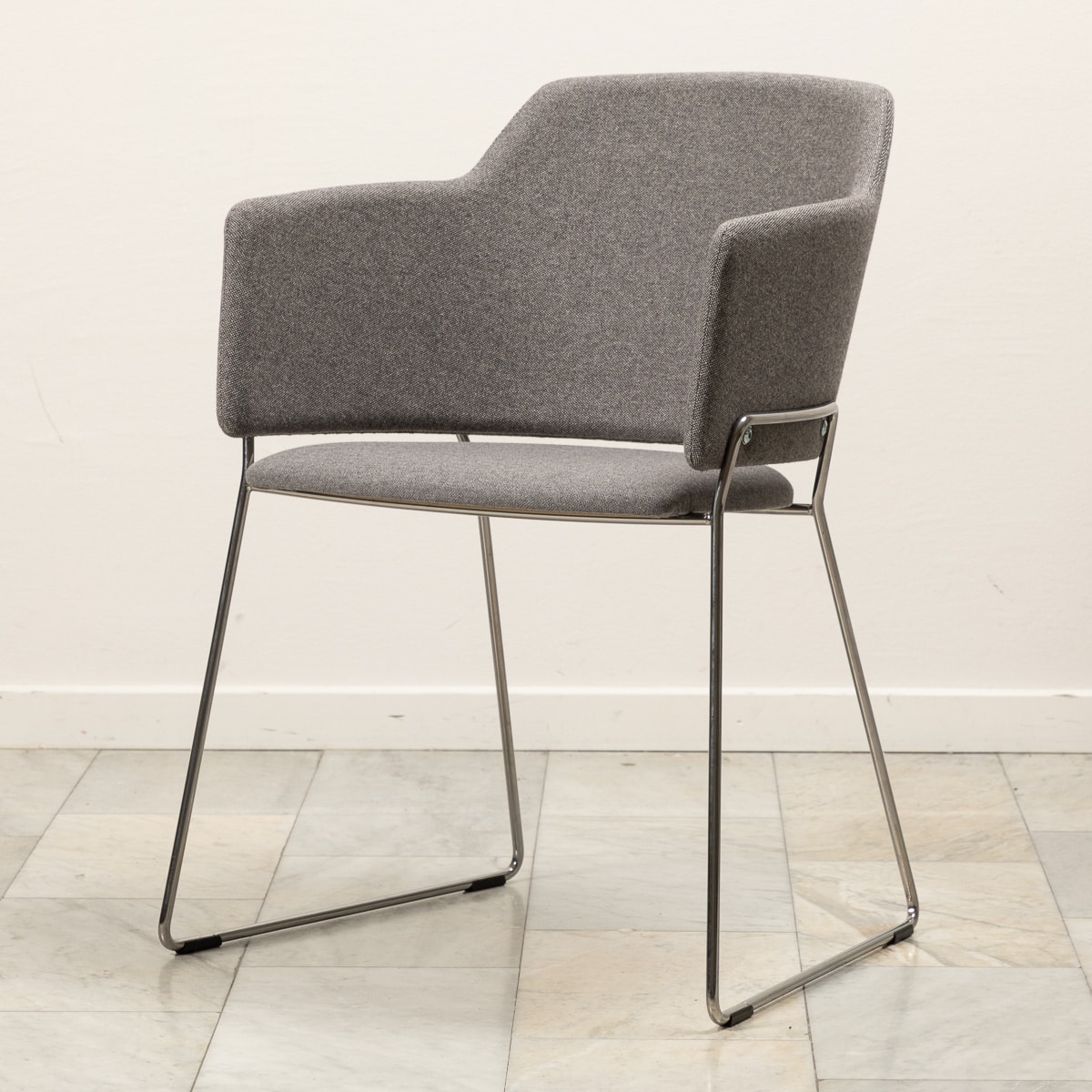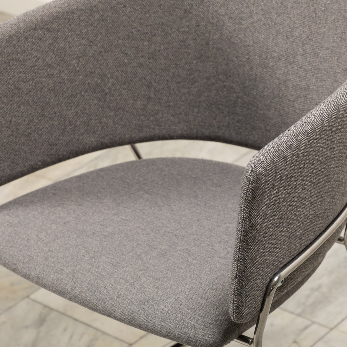 Sits och rygg i tyg (grå). Medstativ i metall (krom).