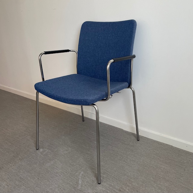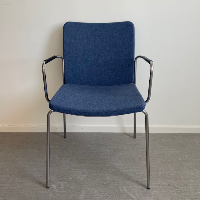 Sits och rygg i tyg (blå). Ben i metall (krom).